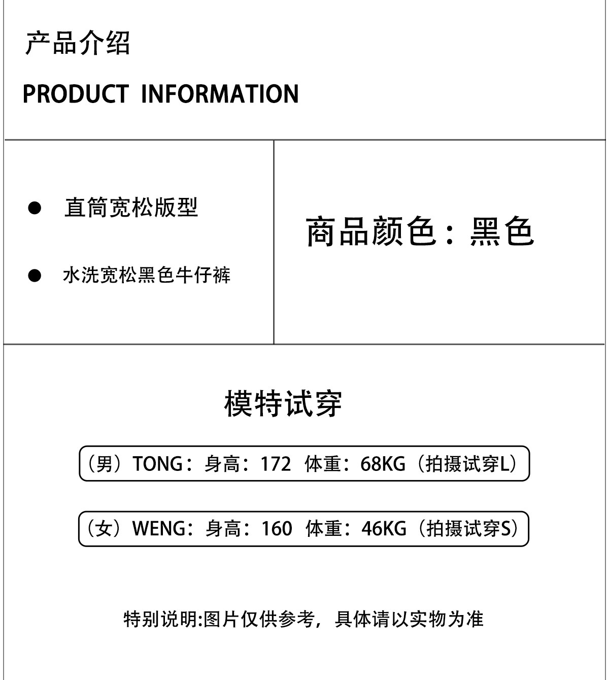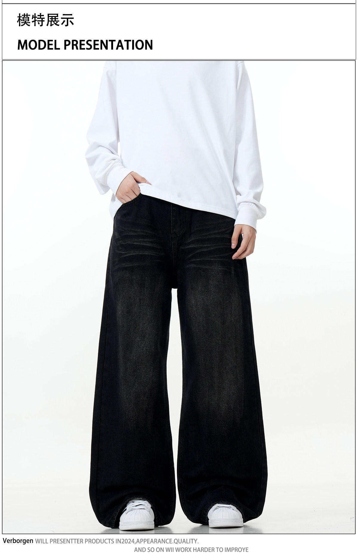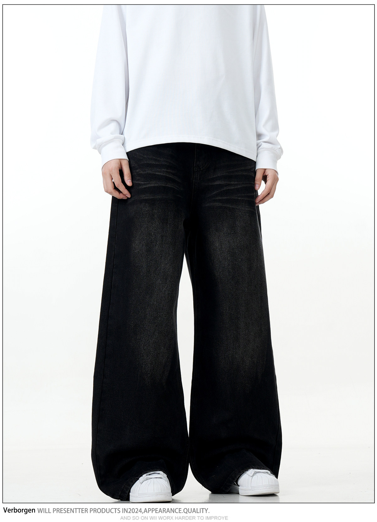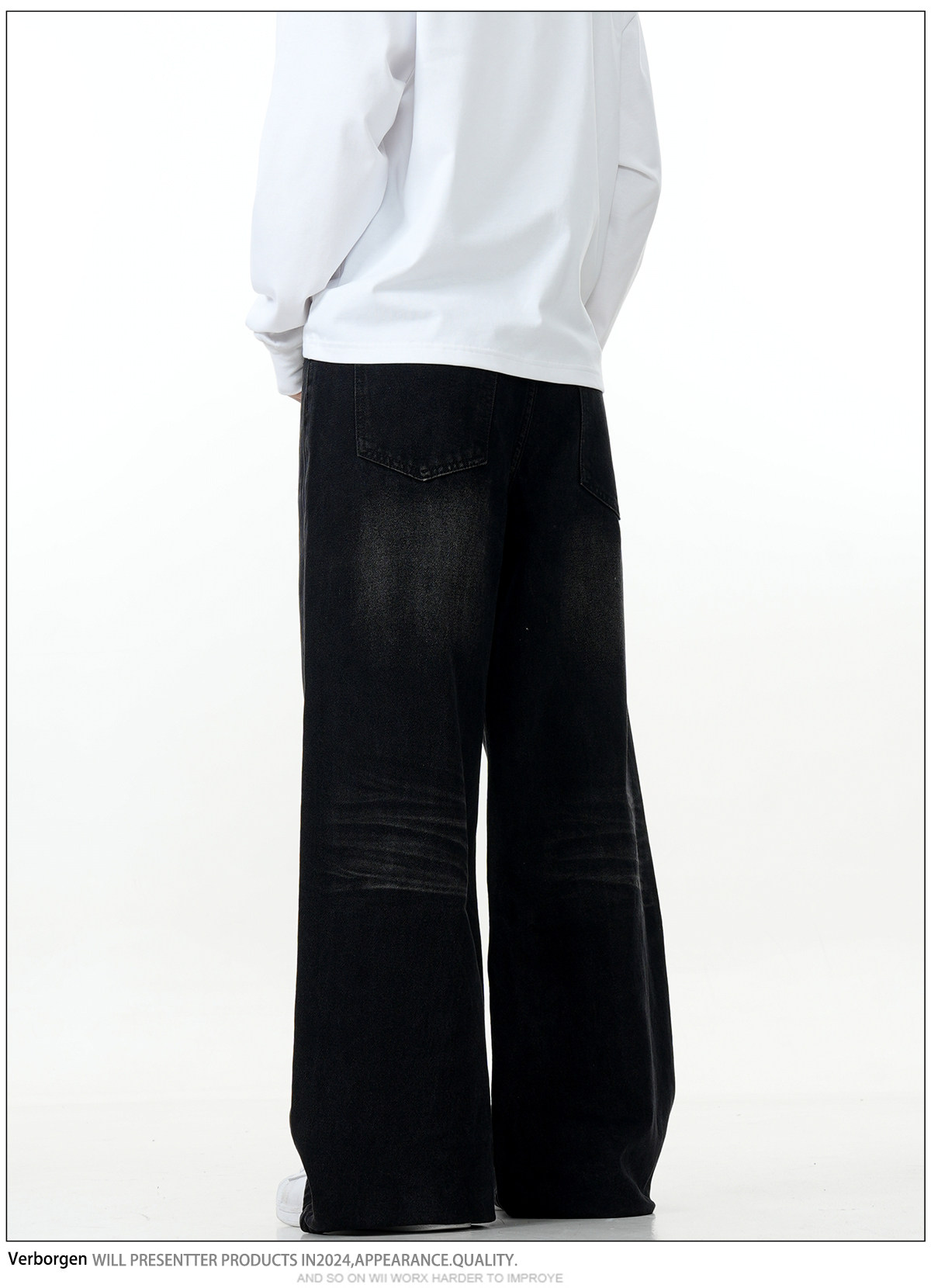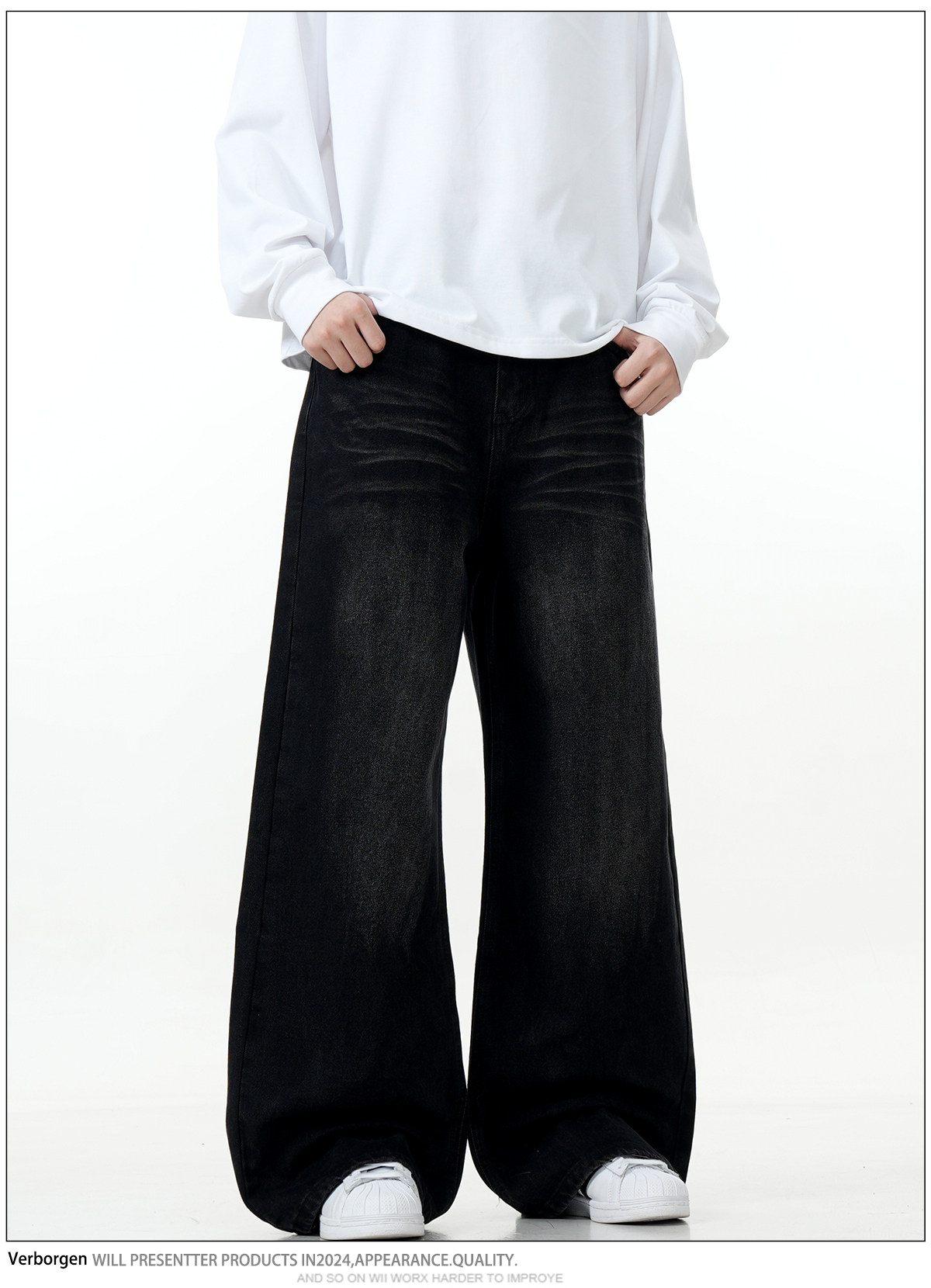 Verborgen American Retro Whiskered Black Jeans, Simple and Versatile, Loose Straight-Leg Wide-Leg Cleanfit