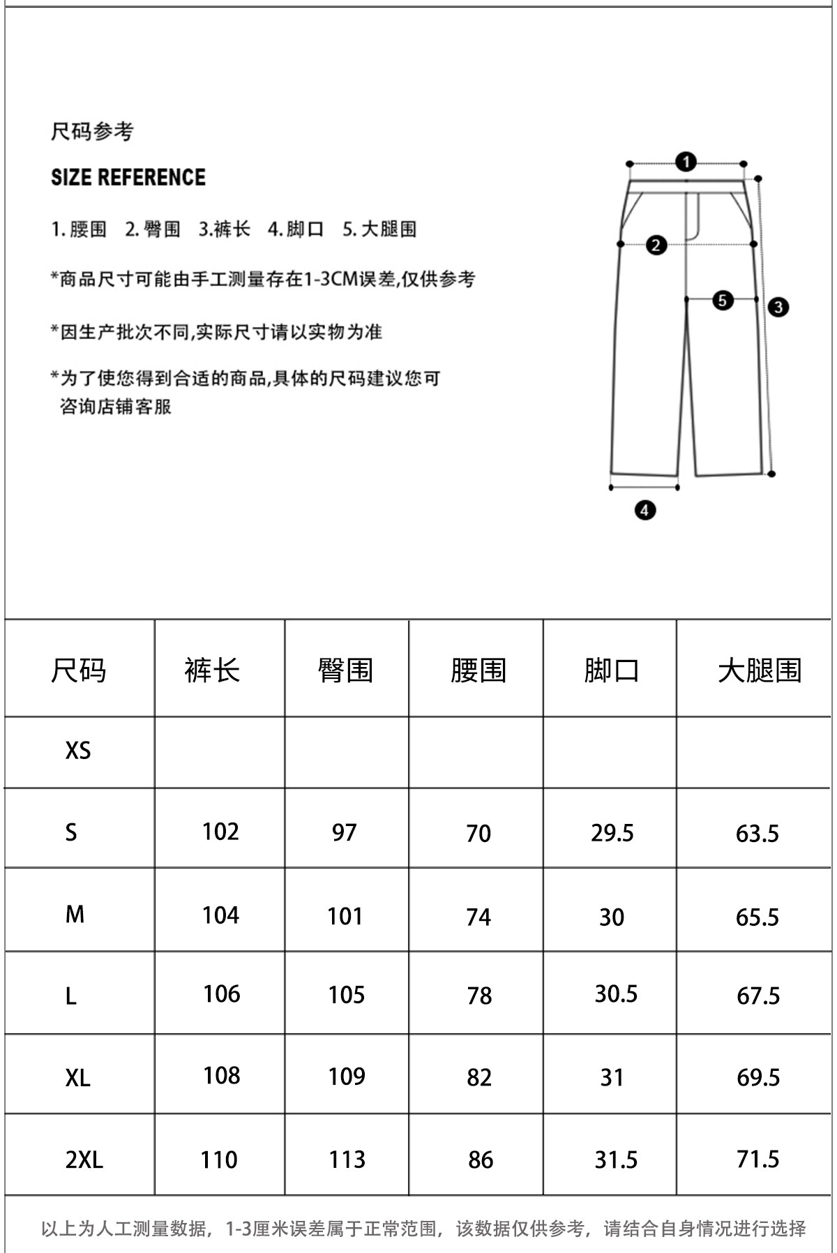 Outseam (cm) 99 cm 101.5 cm 104 cm 106.5 cm 109 cm