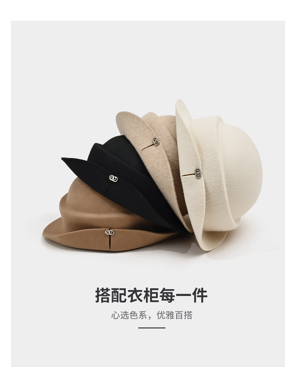Wool Hat for Women, Spring and Summer, High-End French Hepburn Style, Noble Lady Hat, Black Top Hat, Rich Lady Fisherman Hat