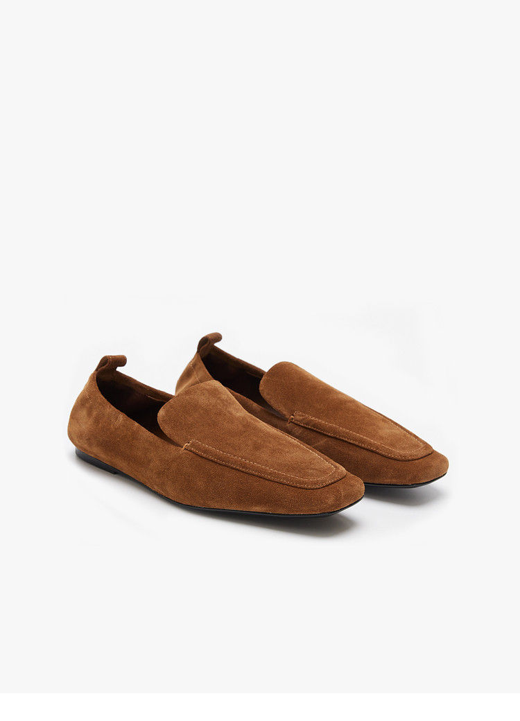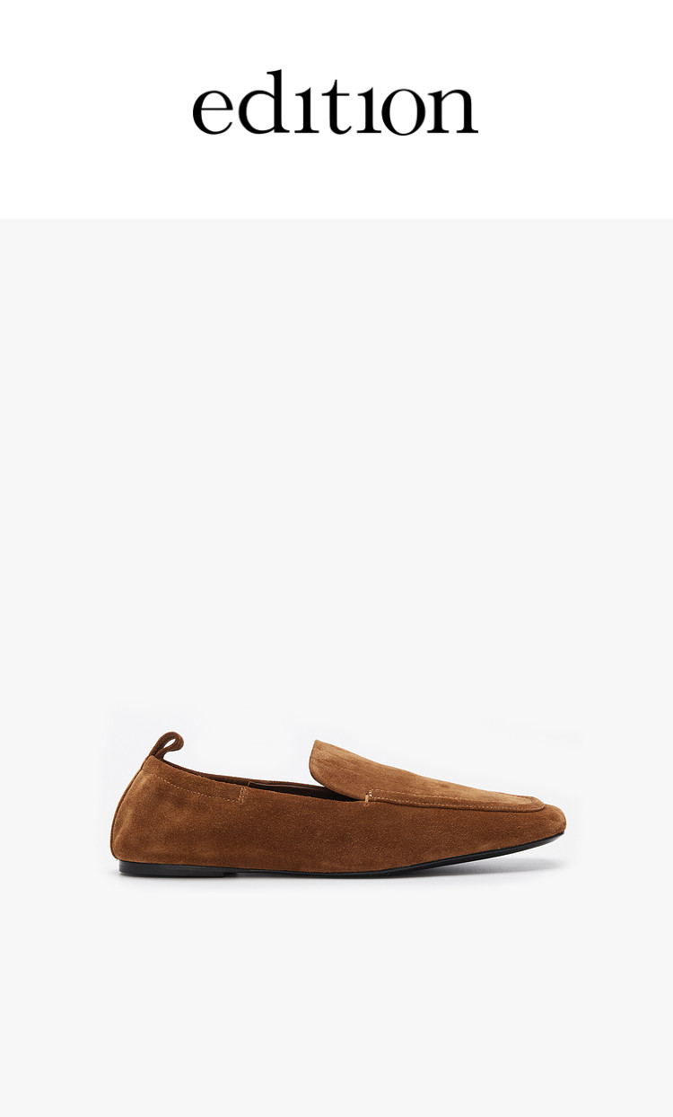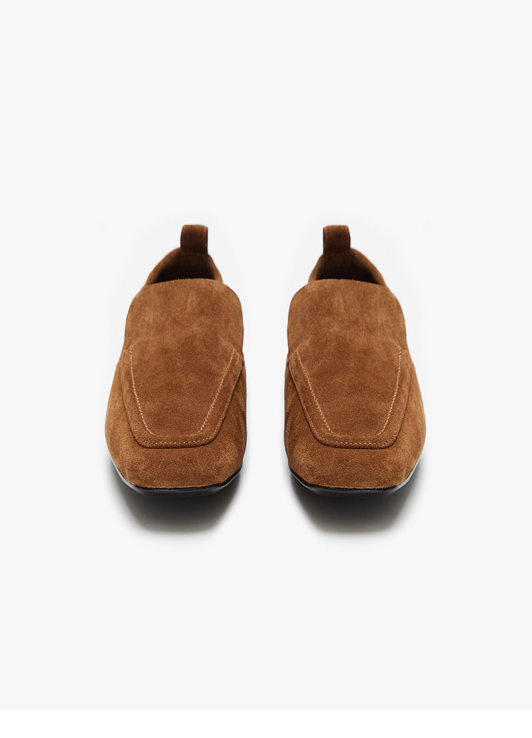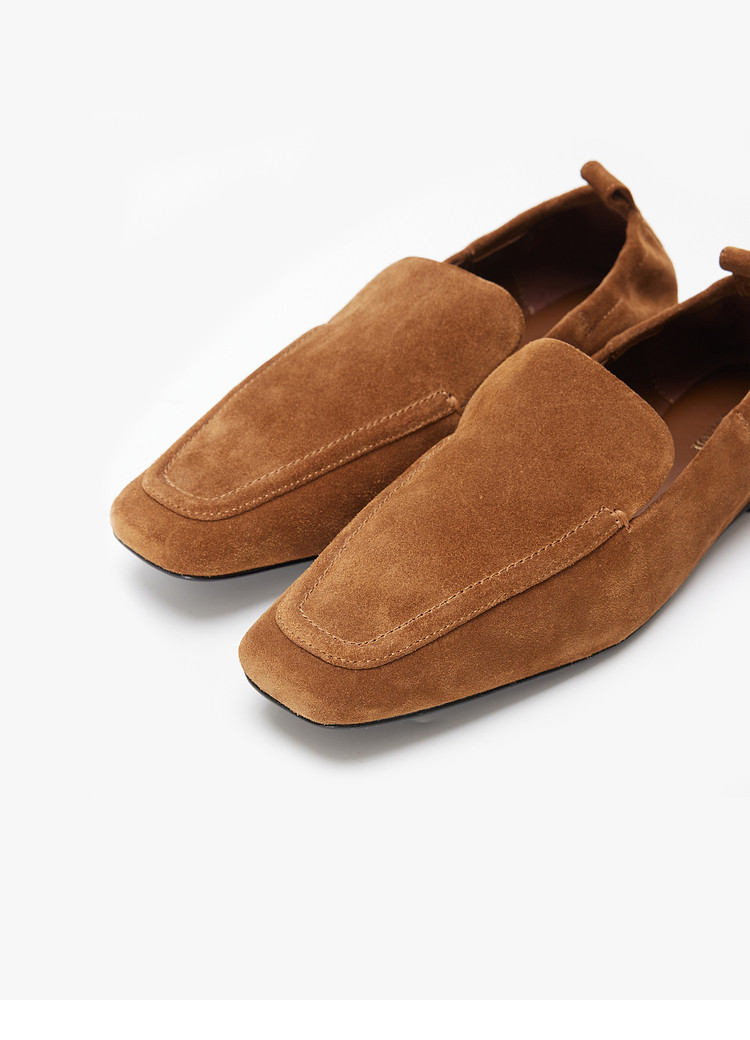 Edition Loafers Women's Winter New Retro Square Toe Cowhide Suede Flats Shoes Ebd4Shs011