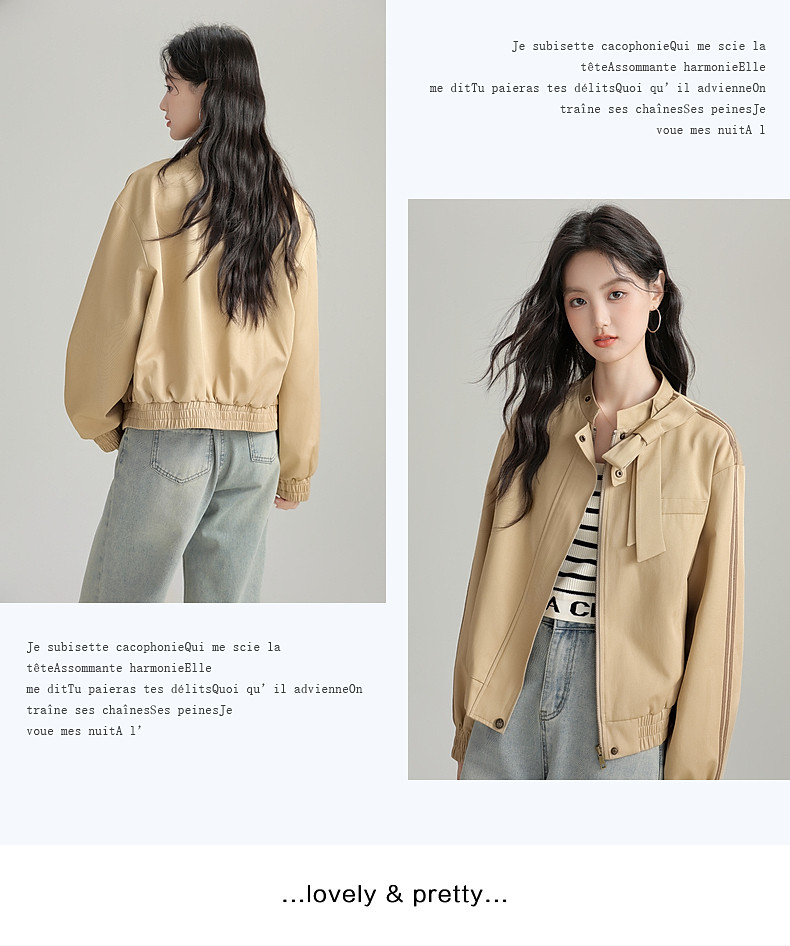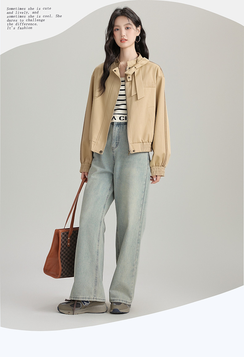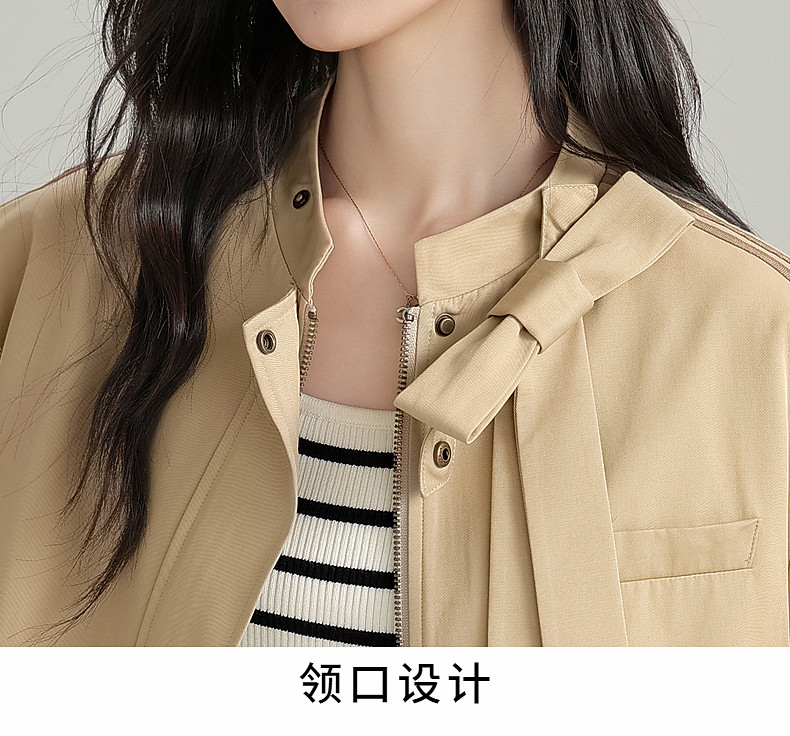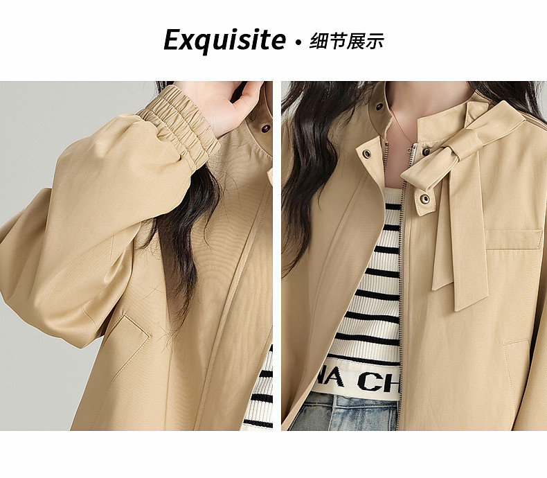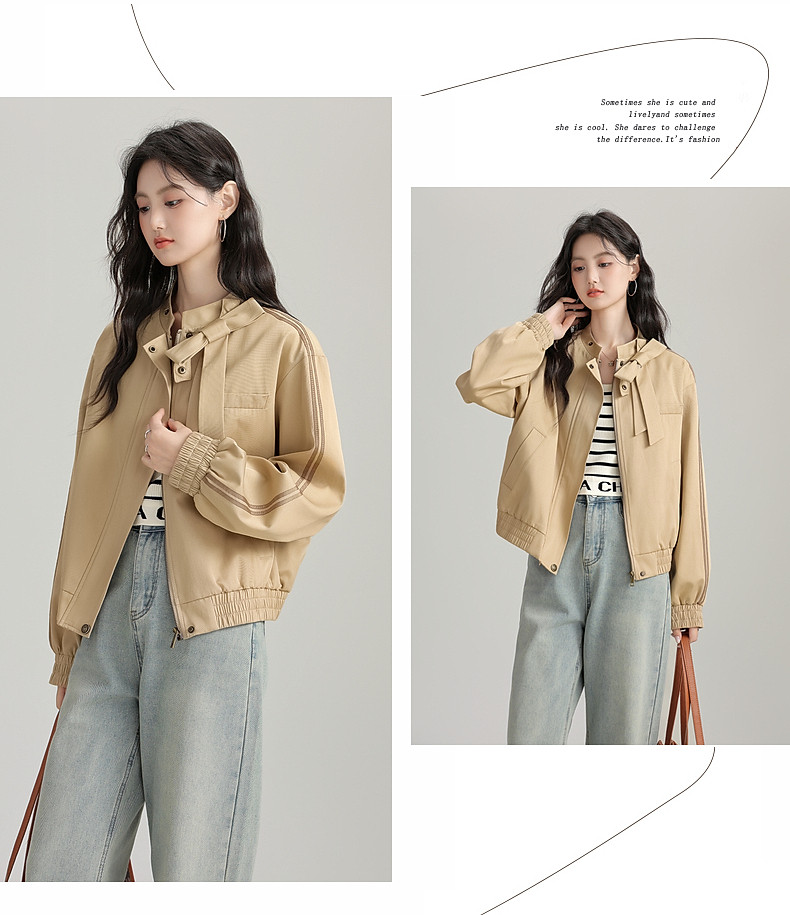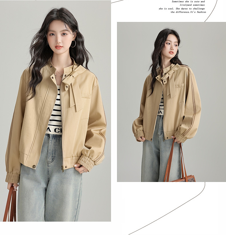 2025 Autumn New Stand Collar Zipper Jacket Women's Loose Bow Design Casual Cardigan Top Long Sleeve Jacket