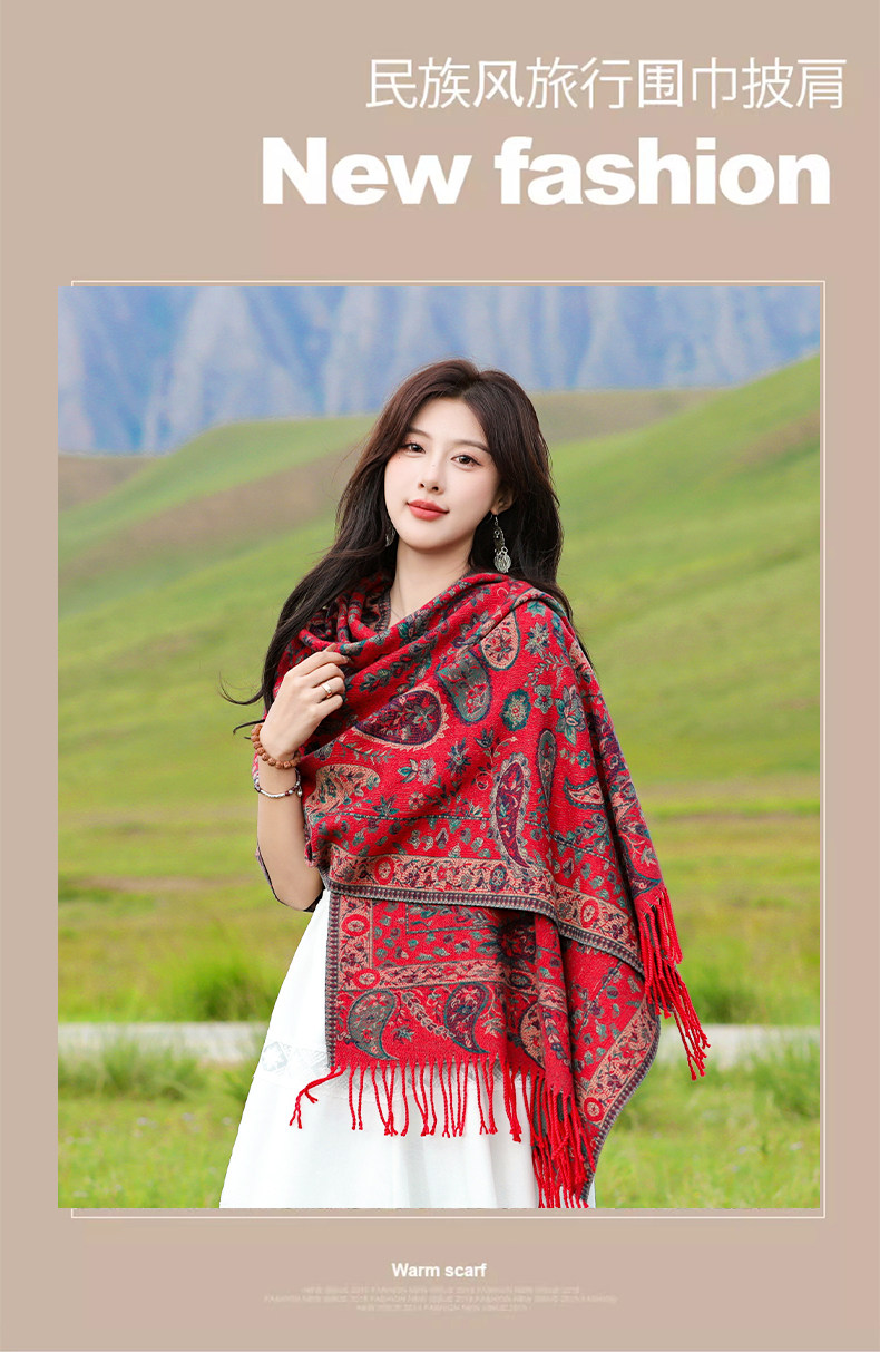 Shawl Women's 2025 New Autumn and Winter Outerwear Fashionable Retro Tassel Cape Ethnic Style Travel Knitted Cape Scarf
