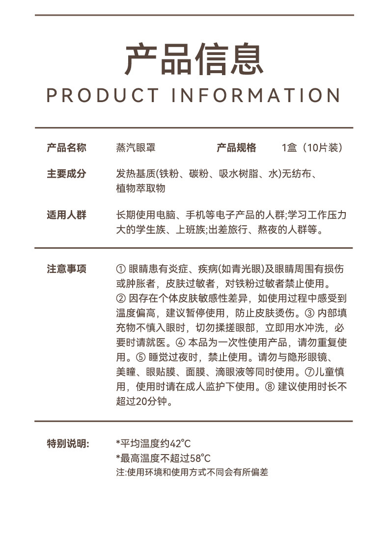 La máscara de vapor para los ojos alivia la fatiga ocular, la compresa caliente de vapor de estilo antiguo más calefacción, protección humeante para las manos y los ojos, parche desechable para los ojos de vapor