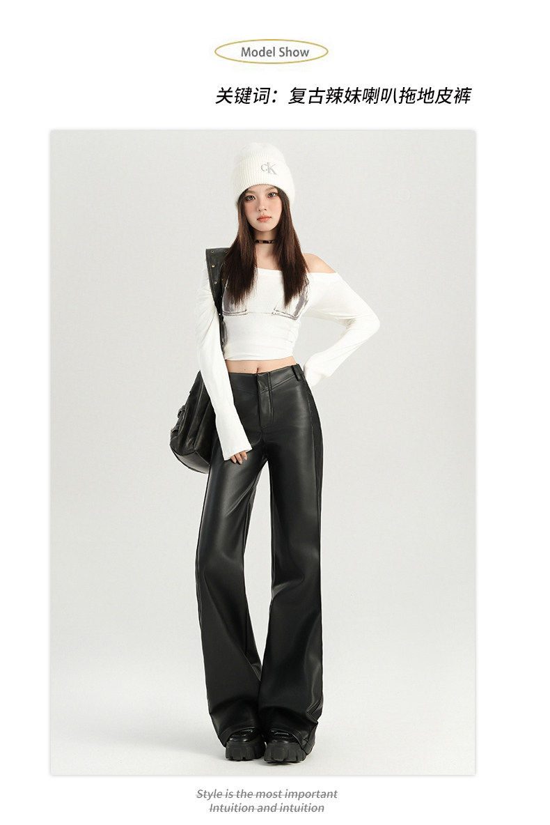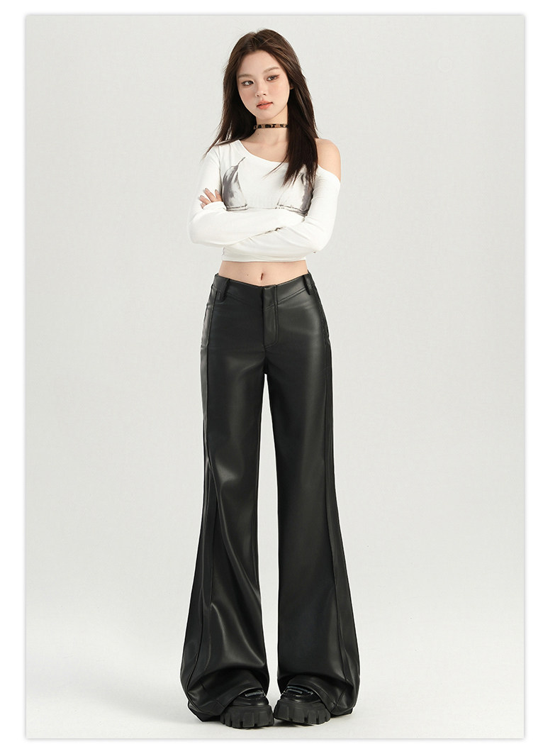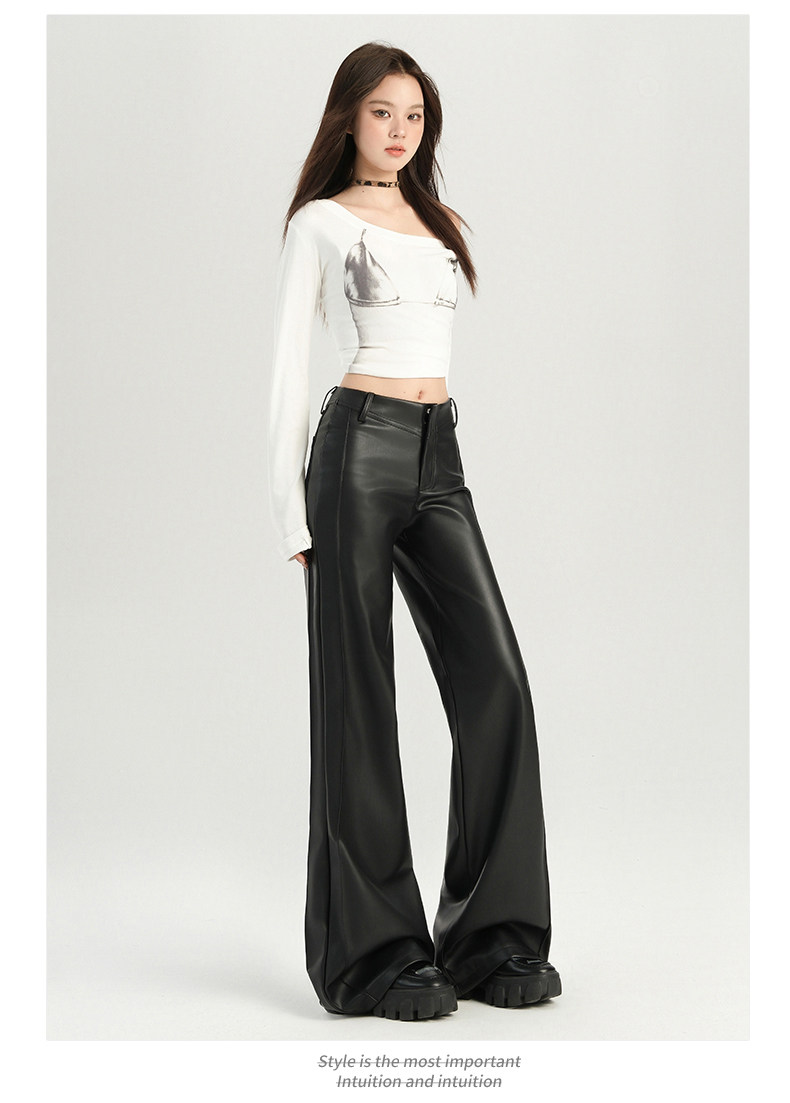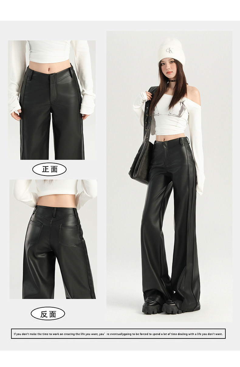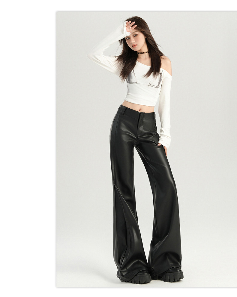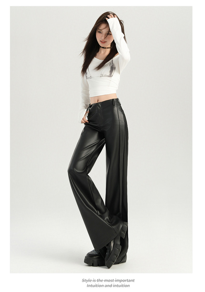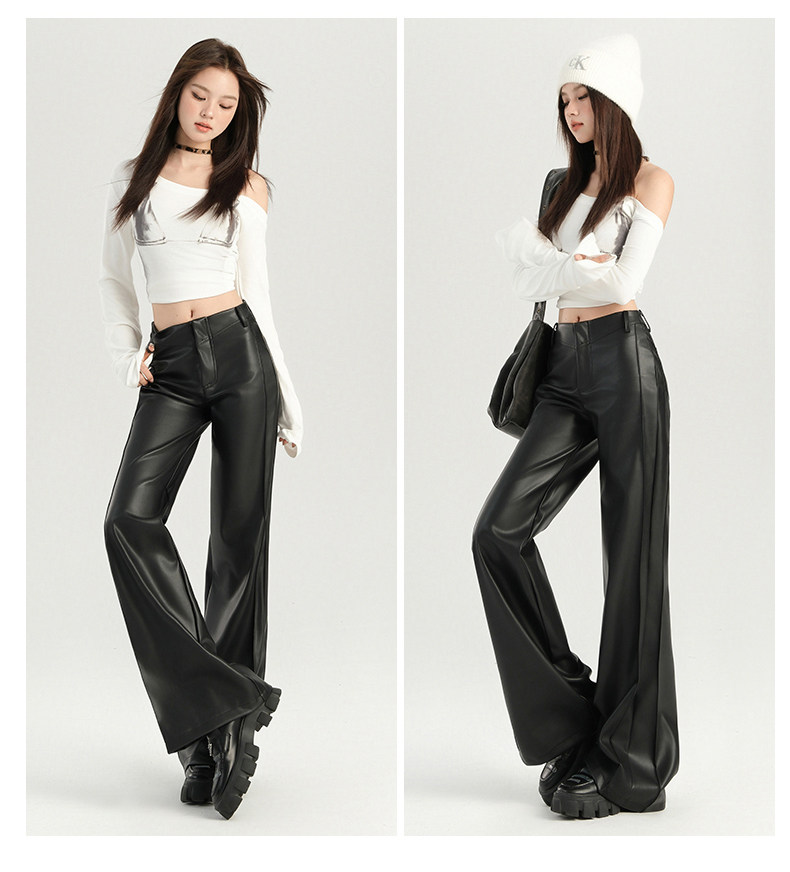 Autumn and Winter Black Leather Pants, Non-Tight-Fitting, Bootcut, for Tall Women, Extended Length, High-Waisted, Slimming, Straight-Leg Flared Pants