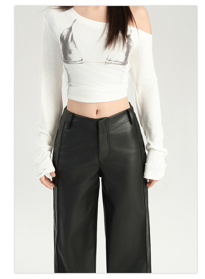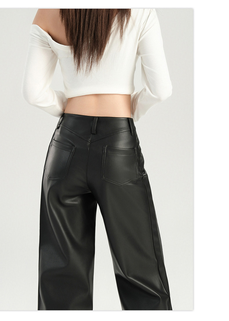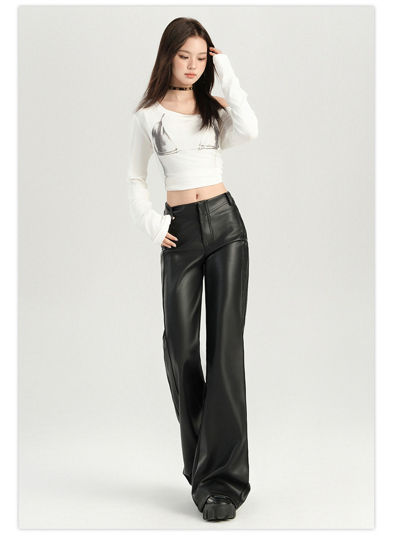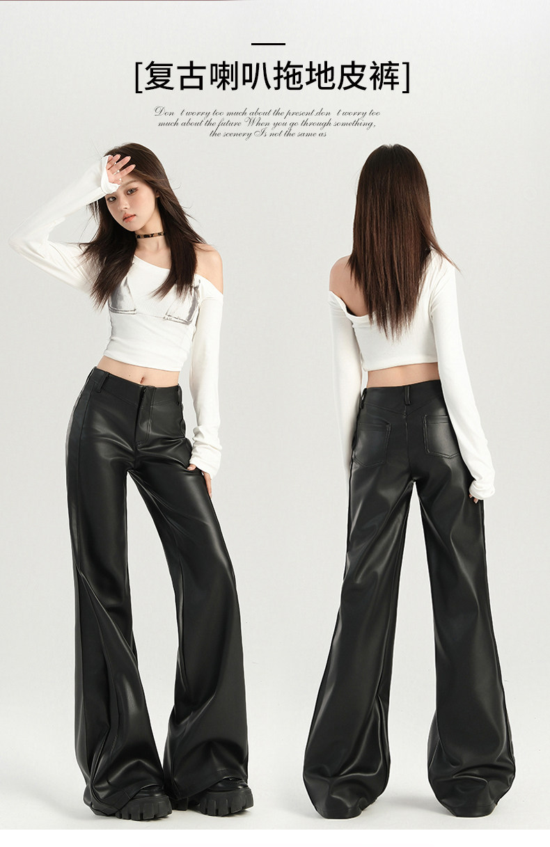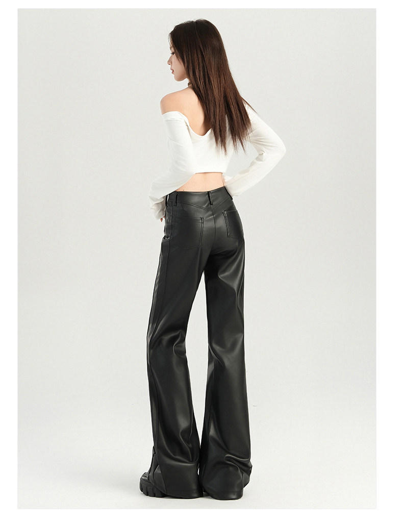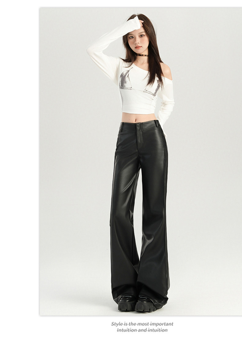 Autumn and Winter Black Leather Pants, Non-Tight-Fitting, Bootcut, for Tall Women, Extended Length, High-Waisted, Slimming, Straight-Leg Flared Pants