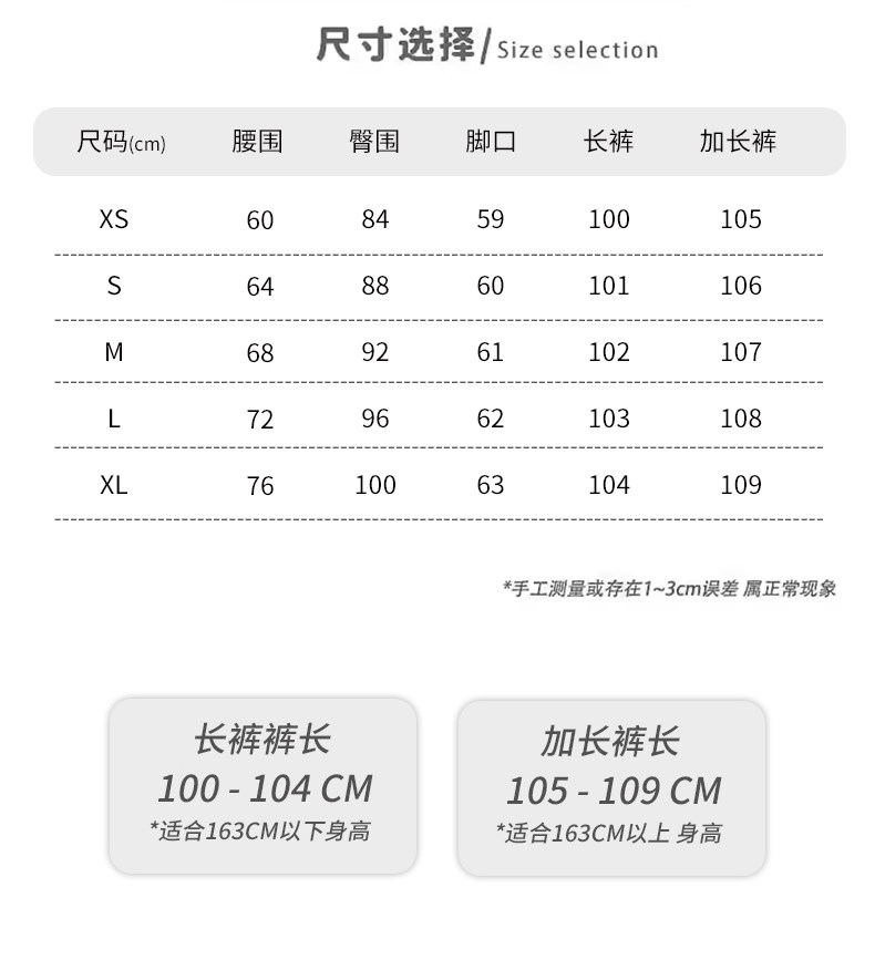 Outseam (cm) 99 cm 101.5 cm 104 cm 106.5 cm 109 cm