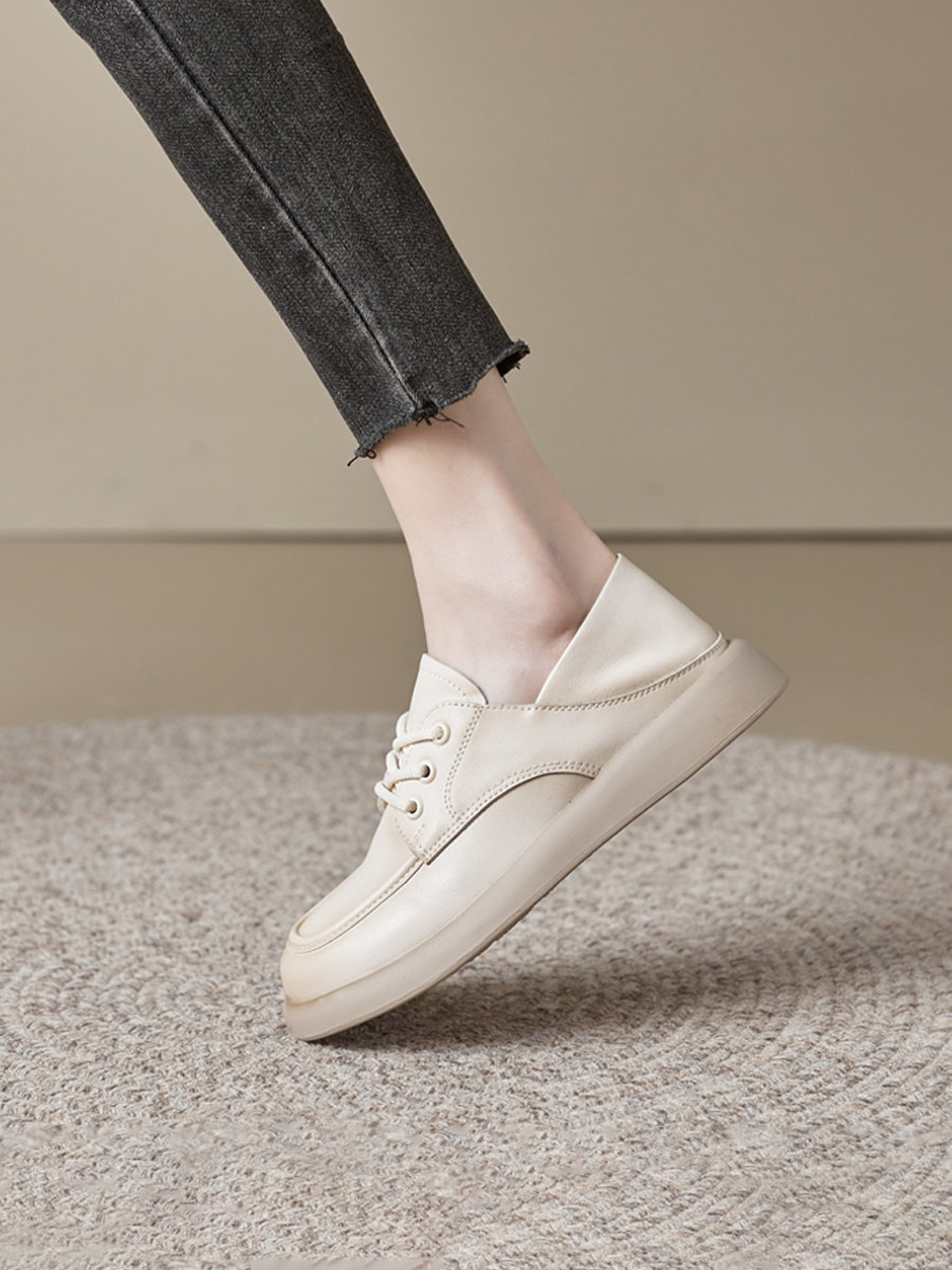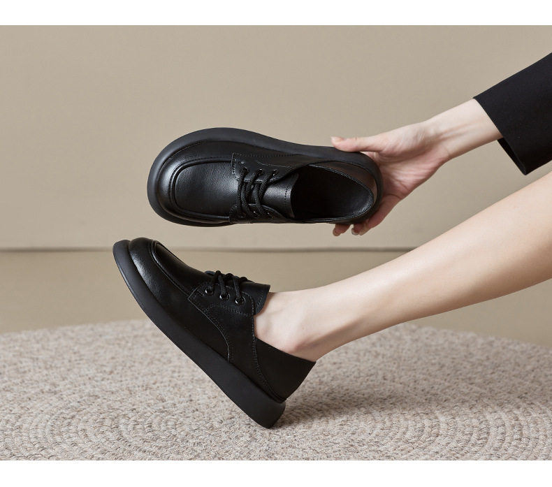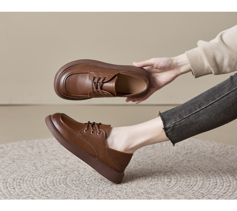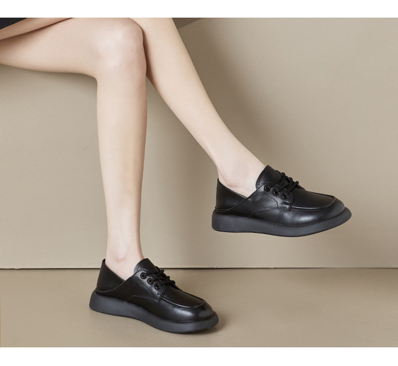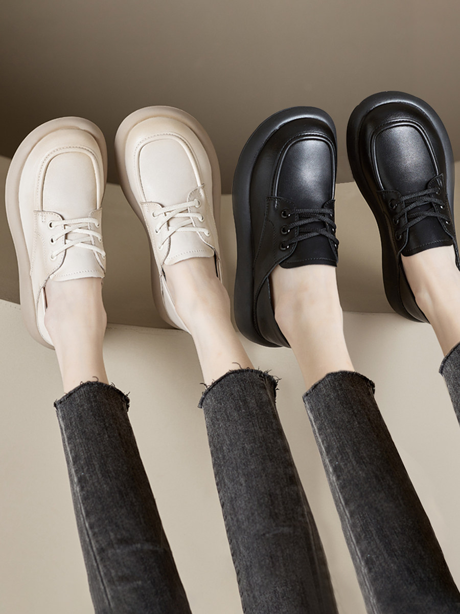 Genuine Leather Women's Flat Shoes 2026 Autumn and Winter New Versatile Loafers Soft Leather Soft Sole Versatile Fleece-Lined Small Leather Shoes