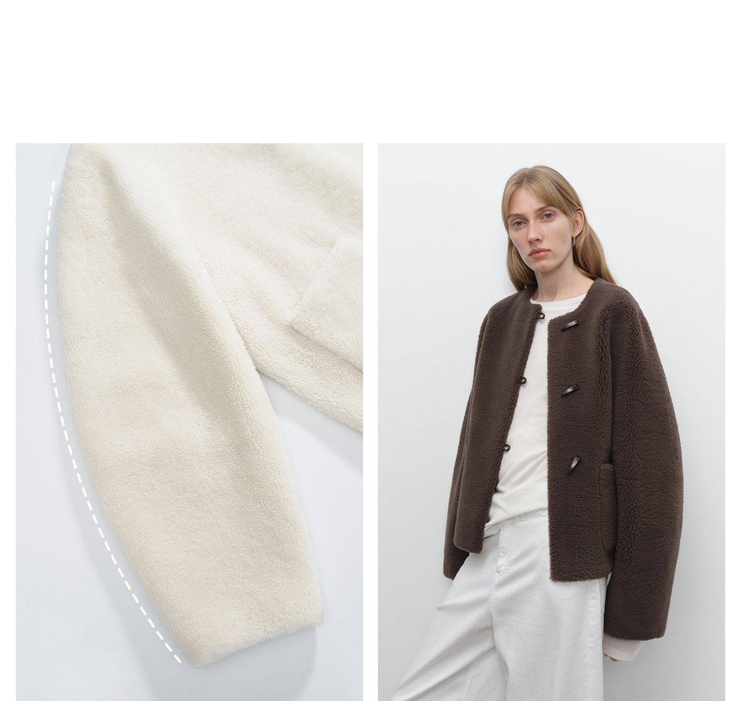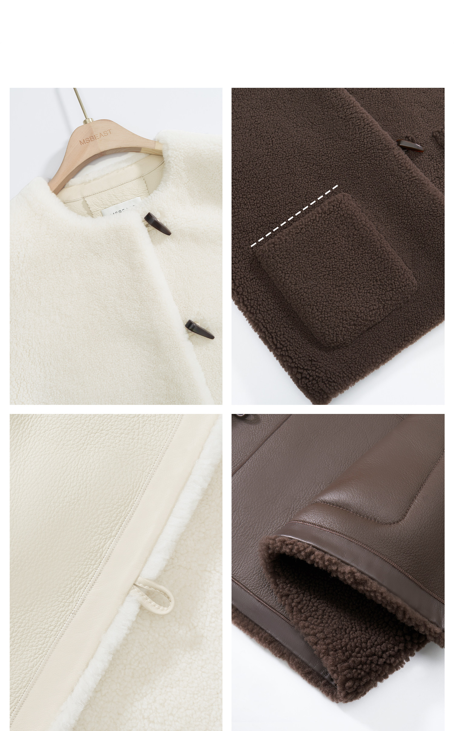 Sort by color Retro dark coffee (jacket),Cream white (coat),Retro dark coffee (scarf),Cream white (scarf),Size chart