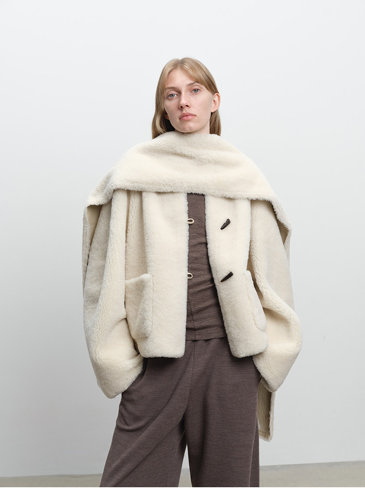 MSBEAST imported merino fur all-in-one fashionable curved sleeve fur short jacket/scarf丨Warm winter