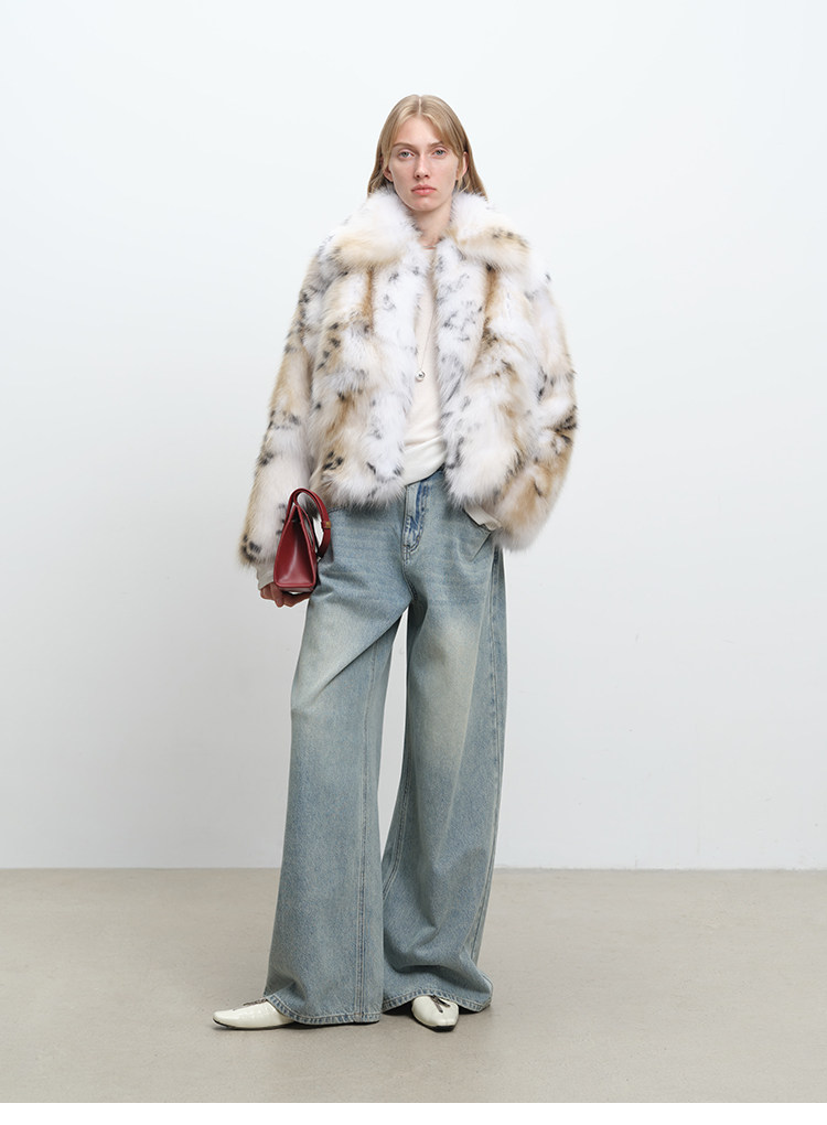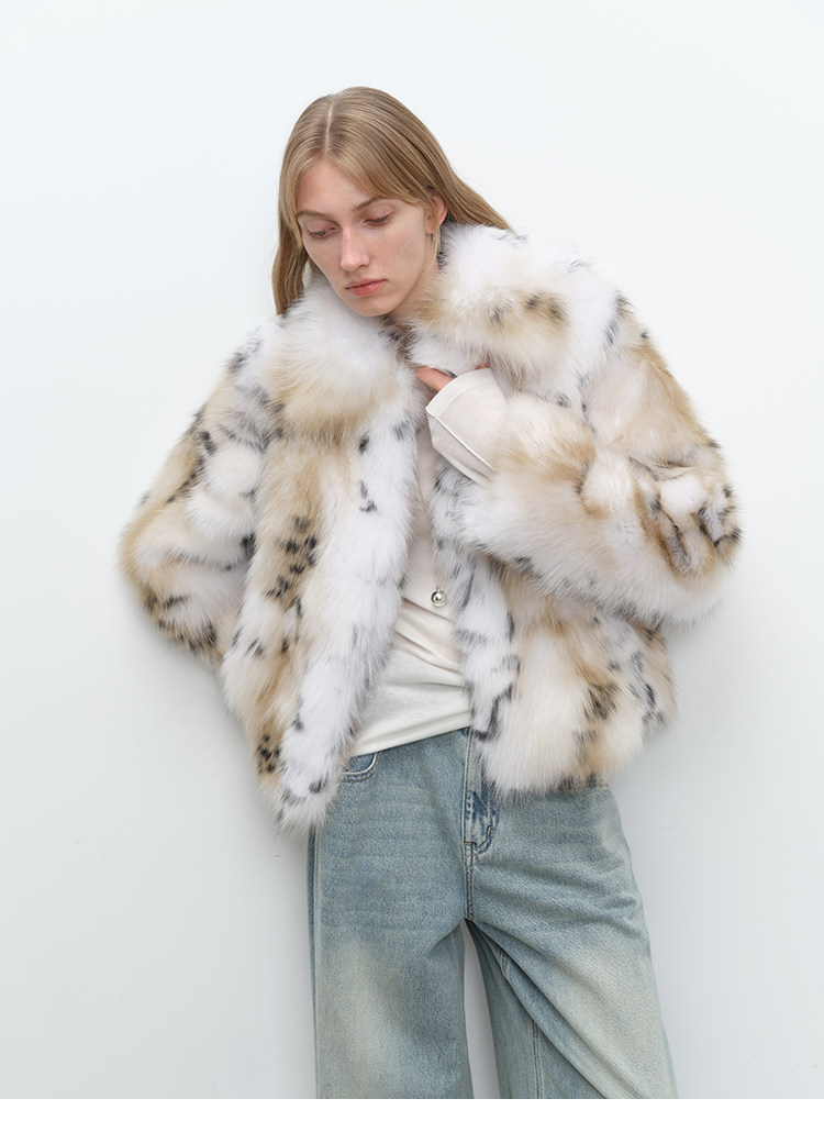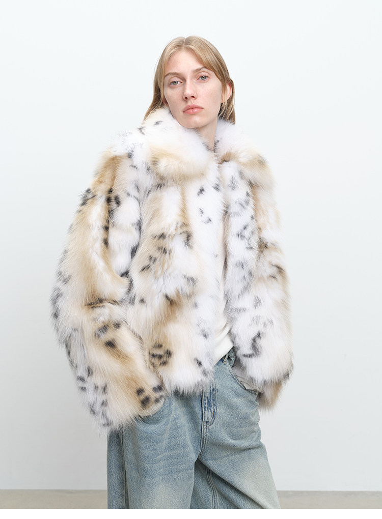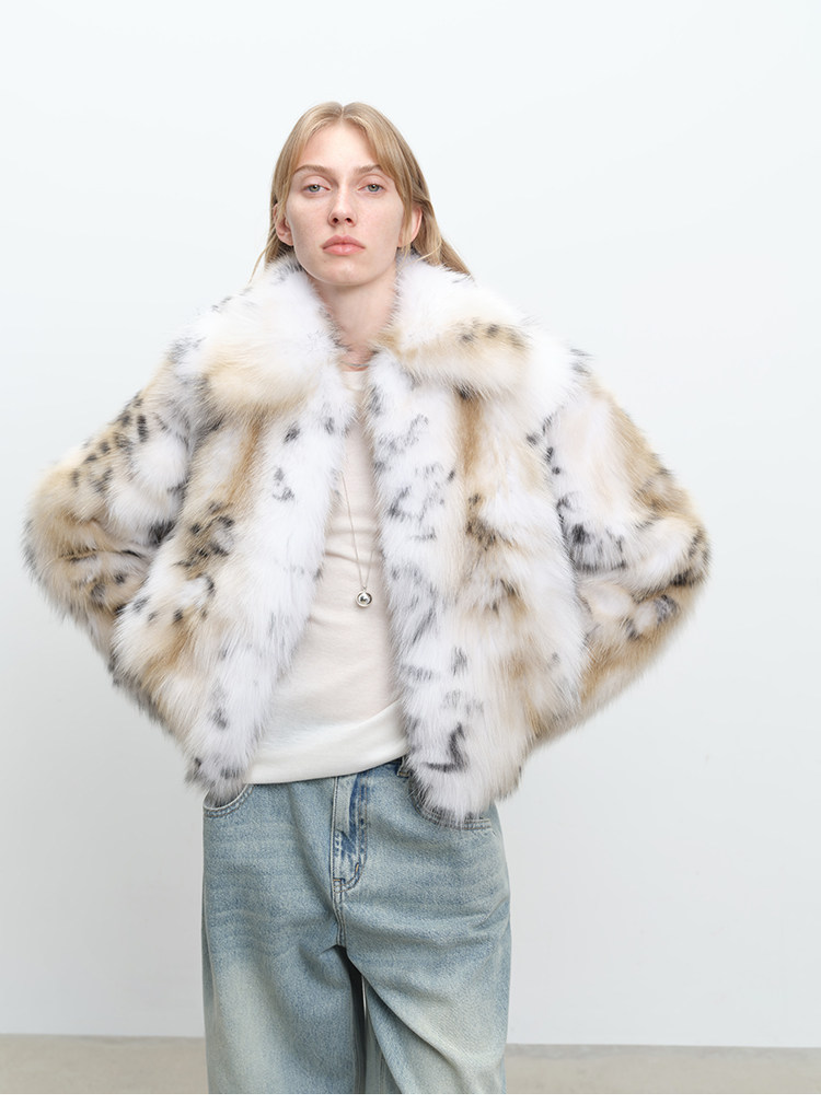 MSBEAST Heavy Industry Two-Color Leopard Print Finland Imported White Fox Kanhai Lapel Fur Short Jacket丨Snow Wizard