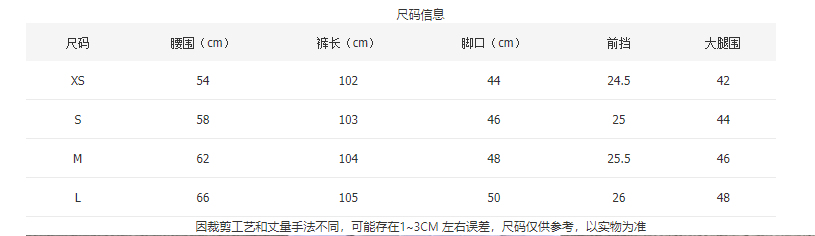 Outseam (cm) 99 cm 101.5 cm 104 cm 106.5 cm 109 cm