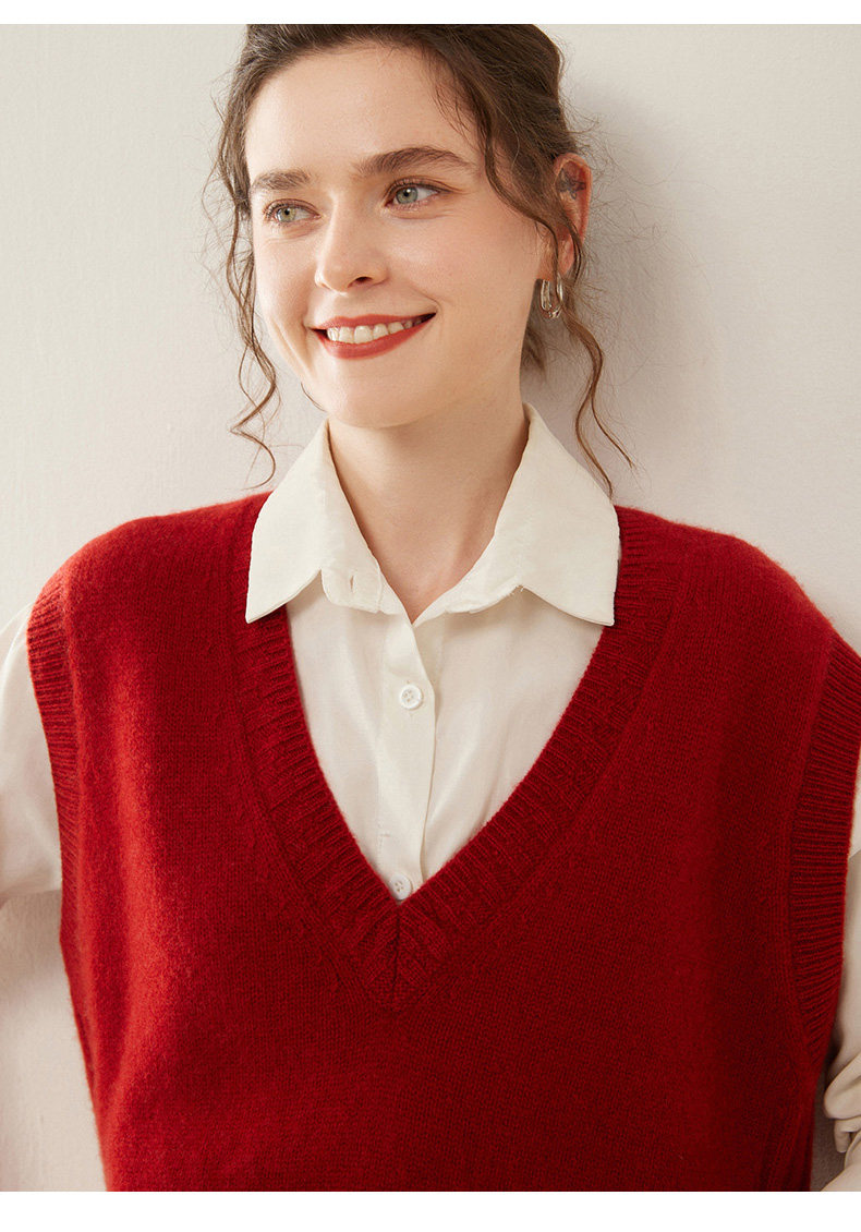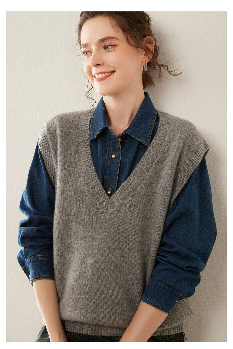 Three-strand thickened cashmere vest for women to wear v-neck sweater autumn and winter layered shirt solid color sleeveless knitted vest