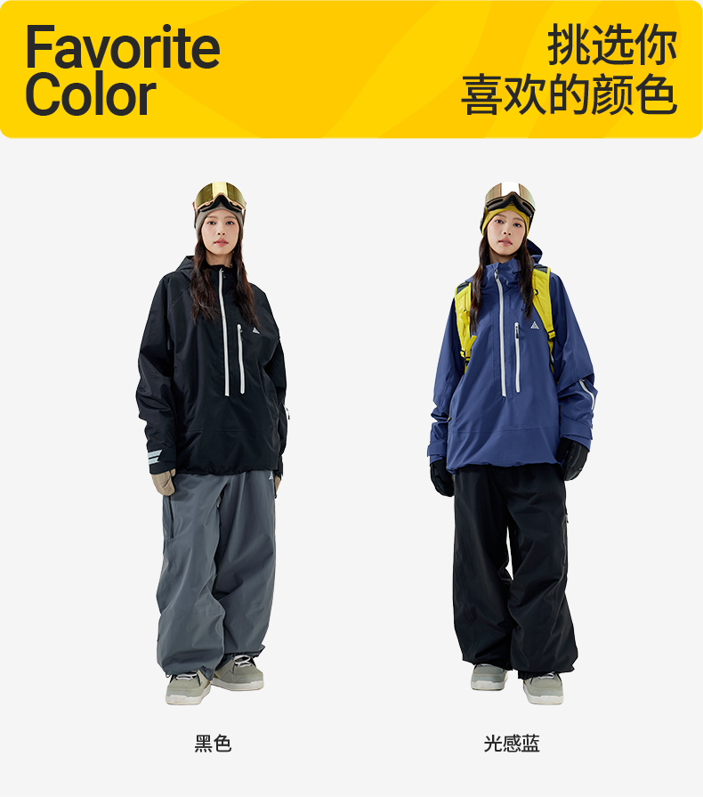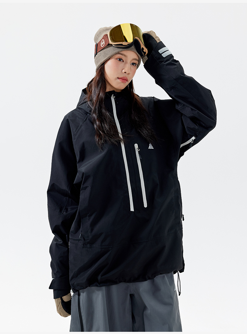 Nanend Nanen Ski Jacket Women's Half-Zip Loose Ski Jacket Waterproof Windproof Coat Men's Snow Jacket Top