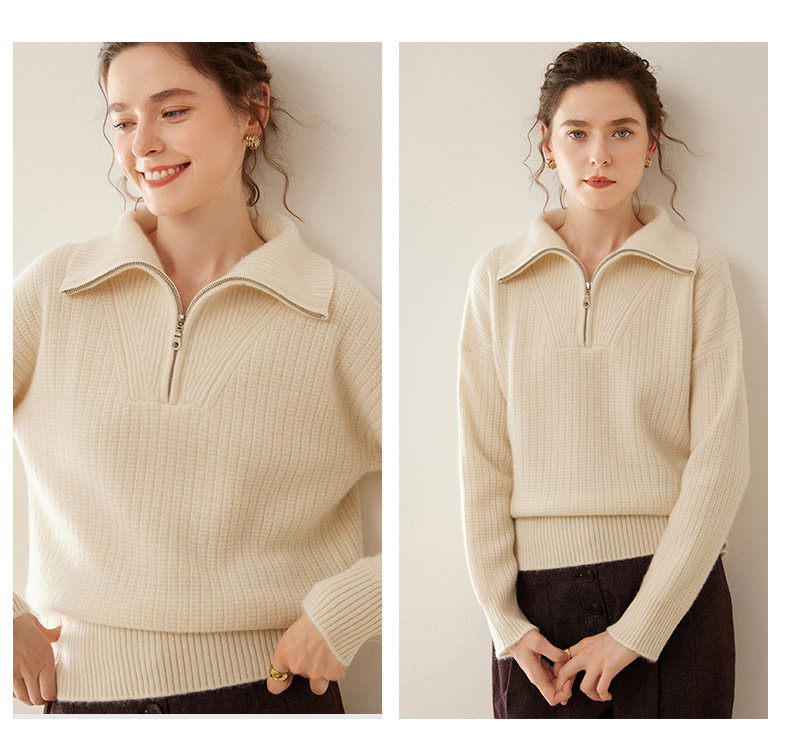 High-end sense! Zipper large lapel cashmere sweater women's thickened sweater loose autumn 2025 winter wool bottoming sweater