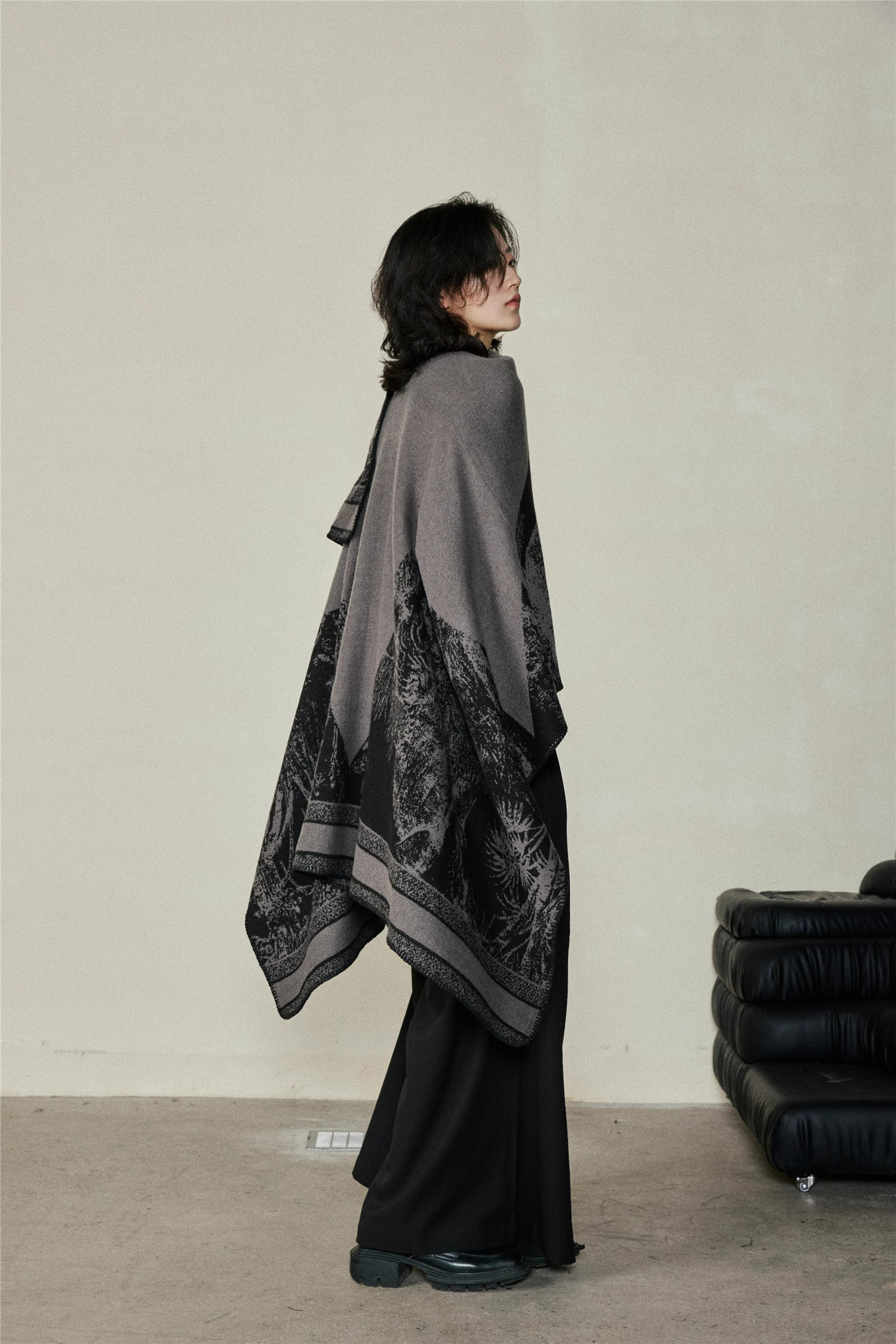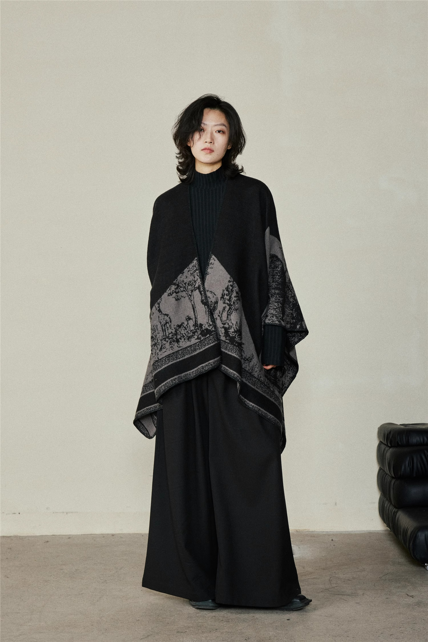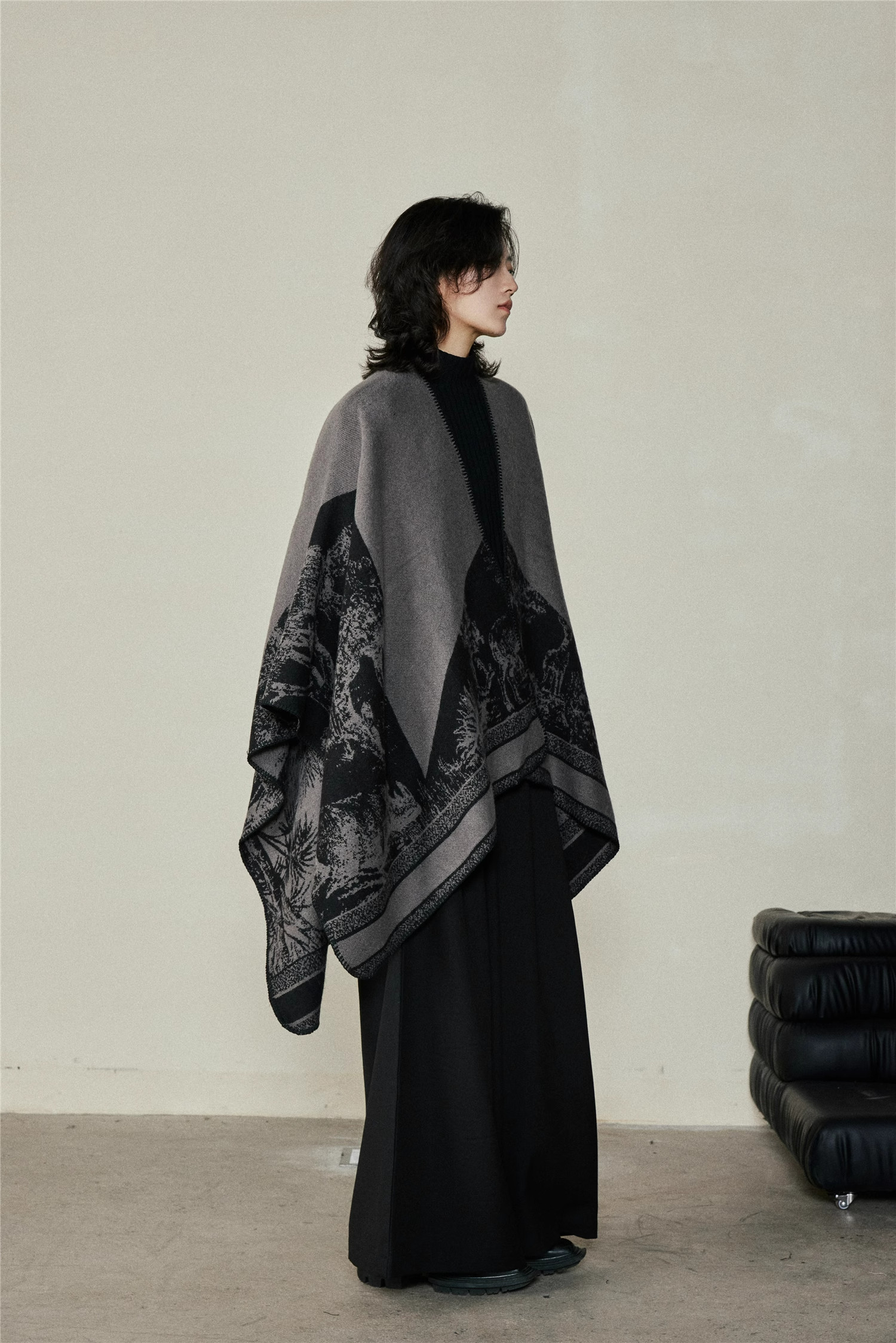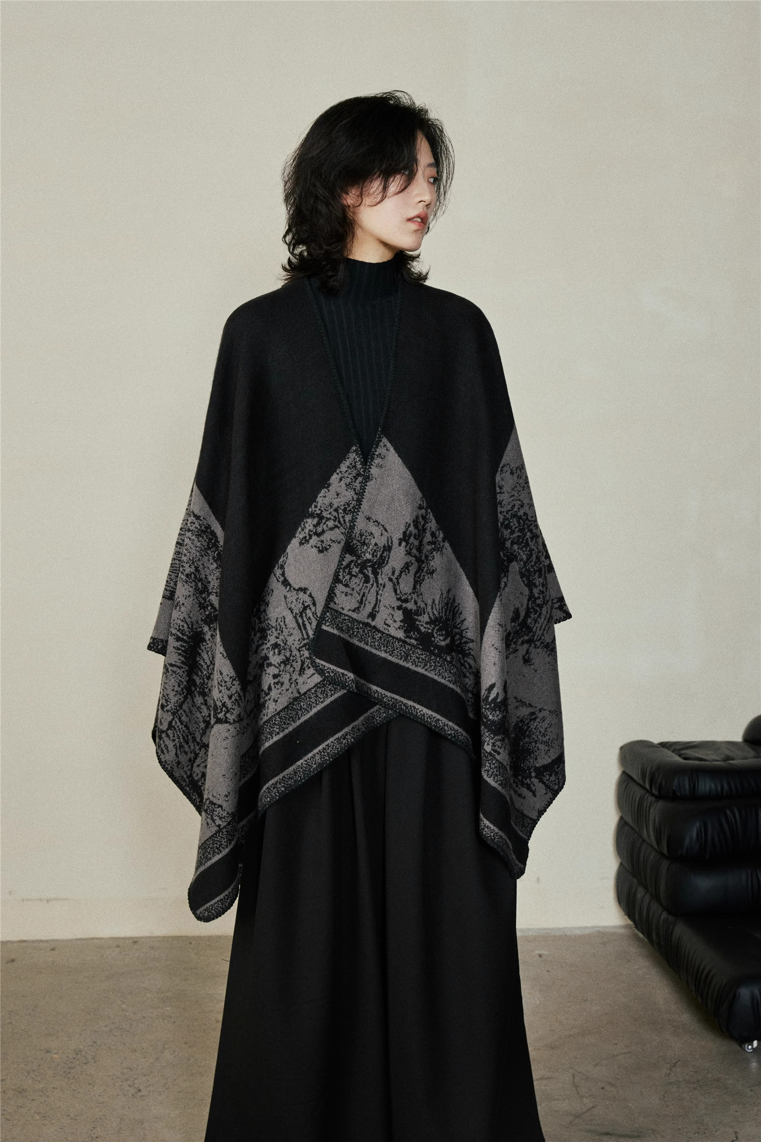 Jiaolingzi Fashionable Niche Design Split Cape Large Shawl Autumn and Winter Warm Double-Sided Knitted Cape for Outerwear in Winter
