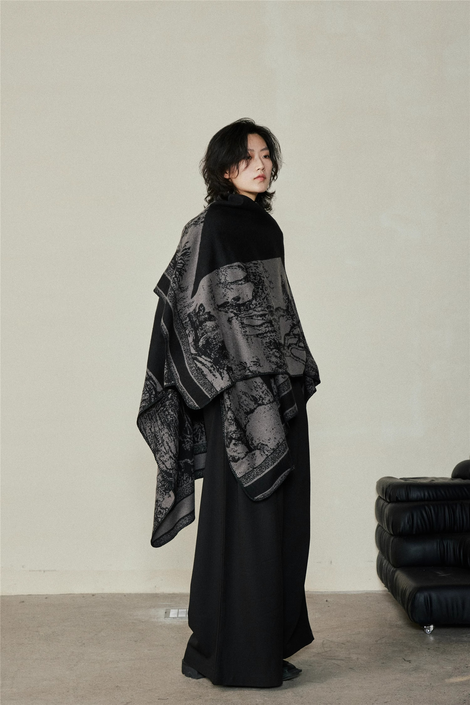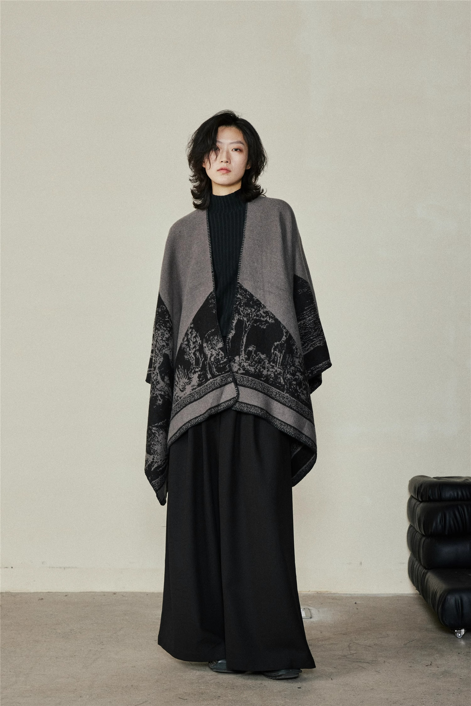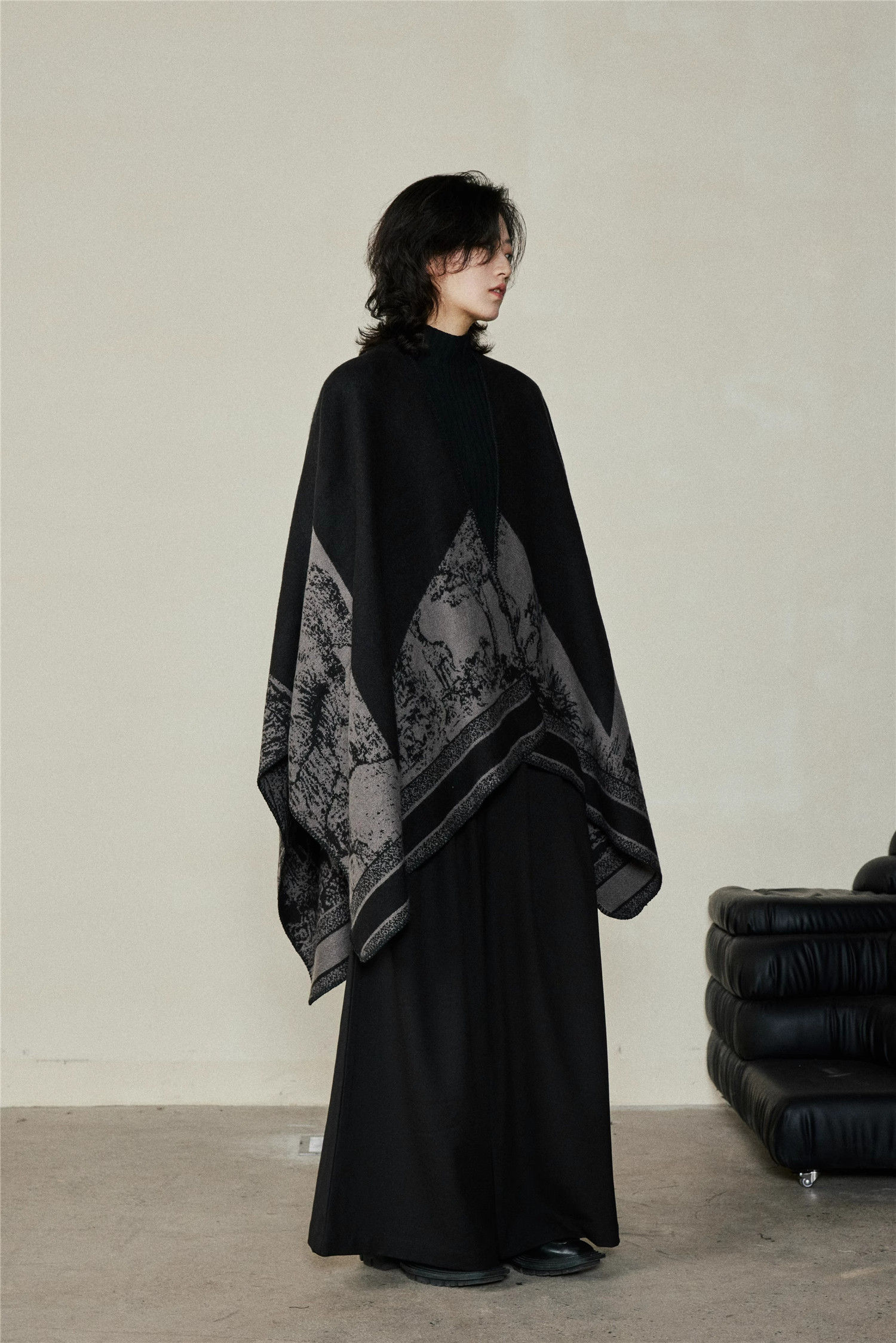 Jiaolingzi Fashionable Niche Design Split Cape Large Shawl Autumn and Winter Warm Double-Sided Knitted Cape for Outerwear in Winter