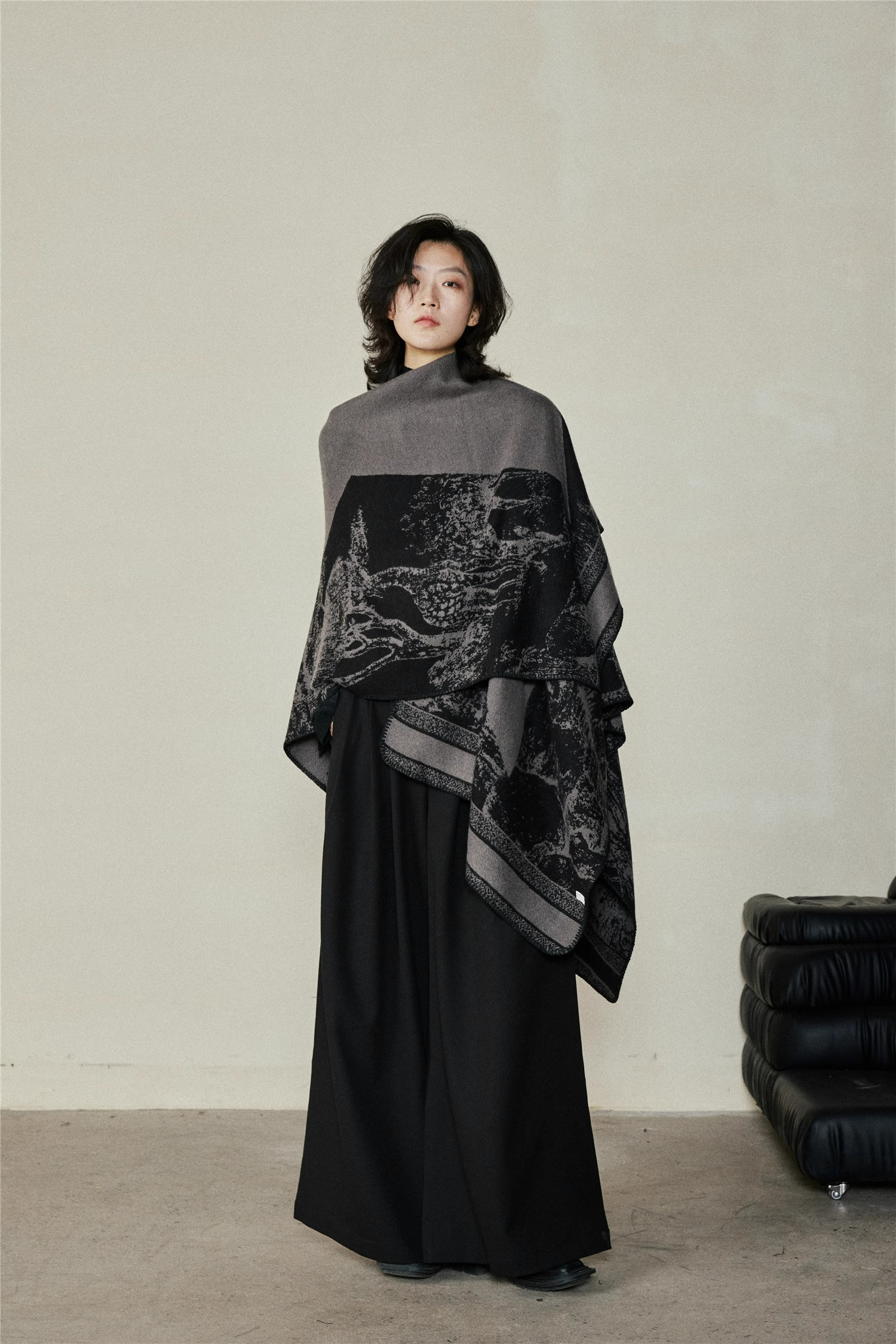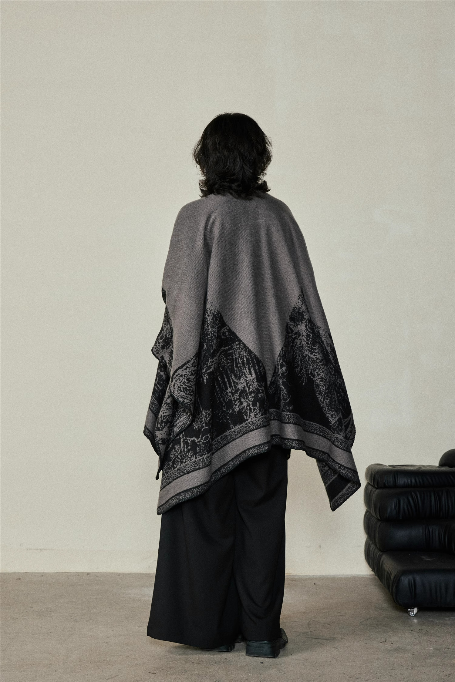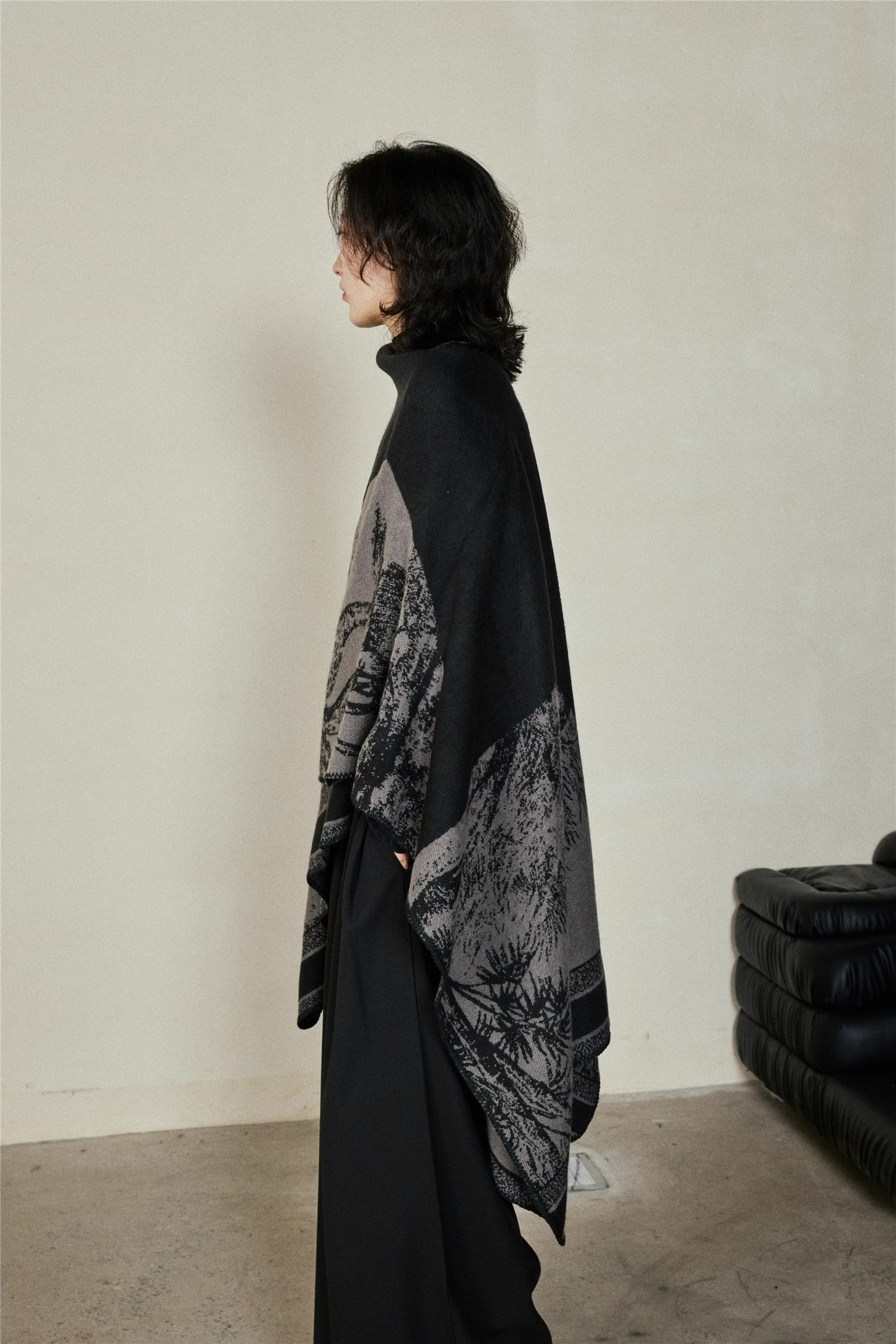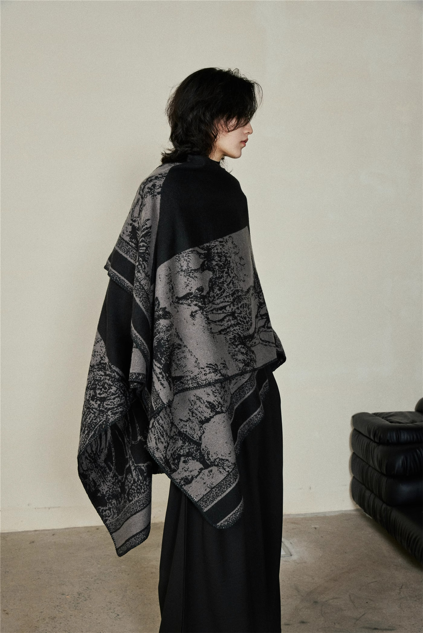 Jiaolingzi Fashionable Niche Design Split Cape Large Shawl Autumn and Winter Warm Double-Sided Knitted Cape for Outerwear in Winter