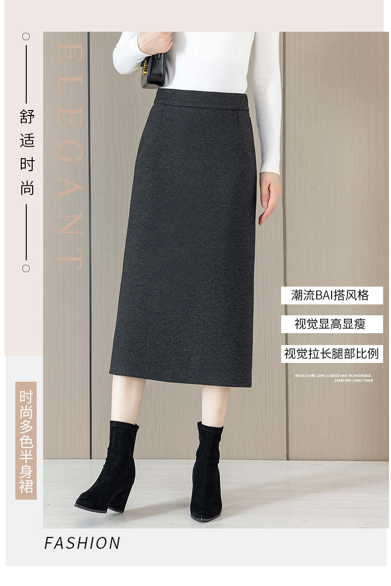 Woolen Skirt for Women, Slit Pencil Skirt, 2025 Autumn and Winter New Style, Elastic High Waist, Slimming, Mid-Length, Bodycon Skirt