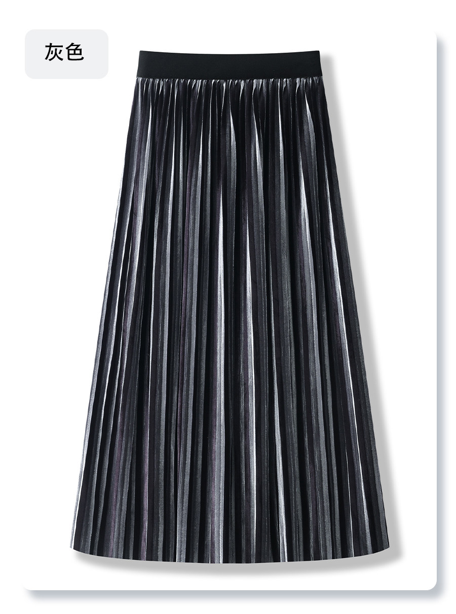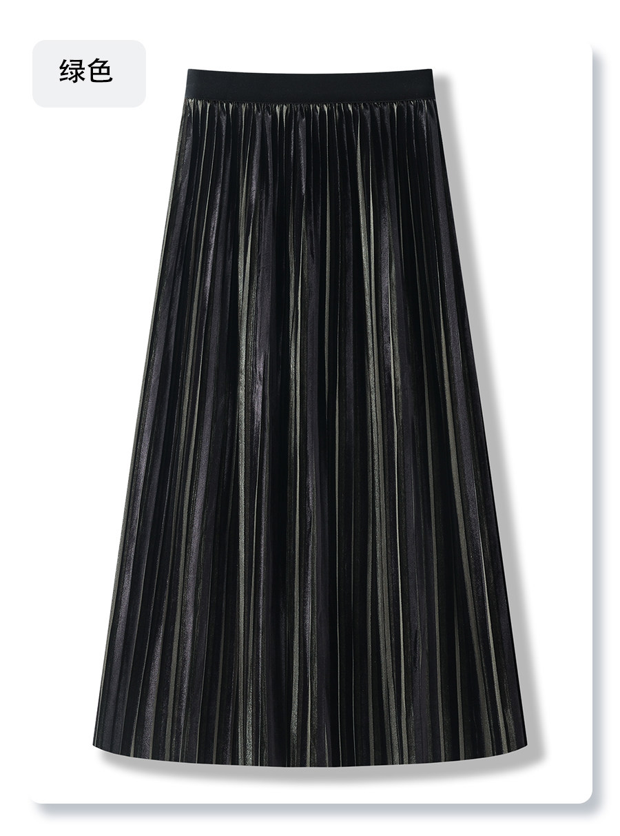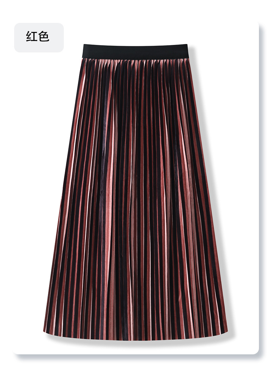 Red gold velvet skirt for women 2025 new autumn long skirt pleated skirt high waist slim a-line skirt half skirt