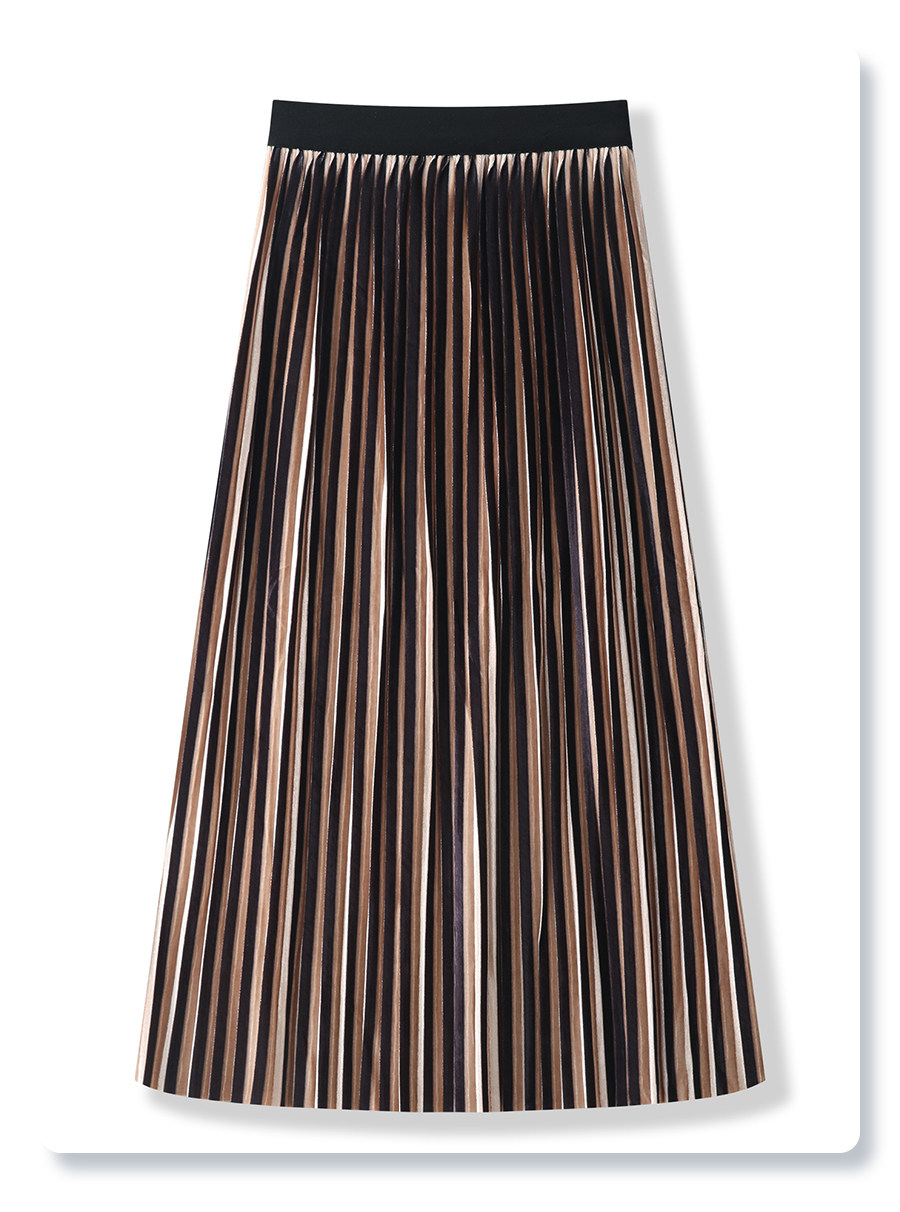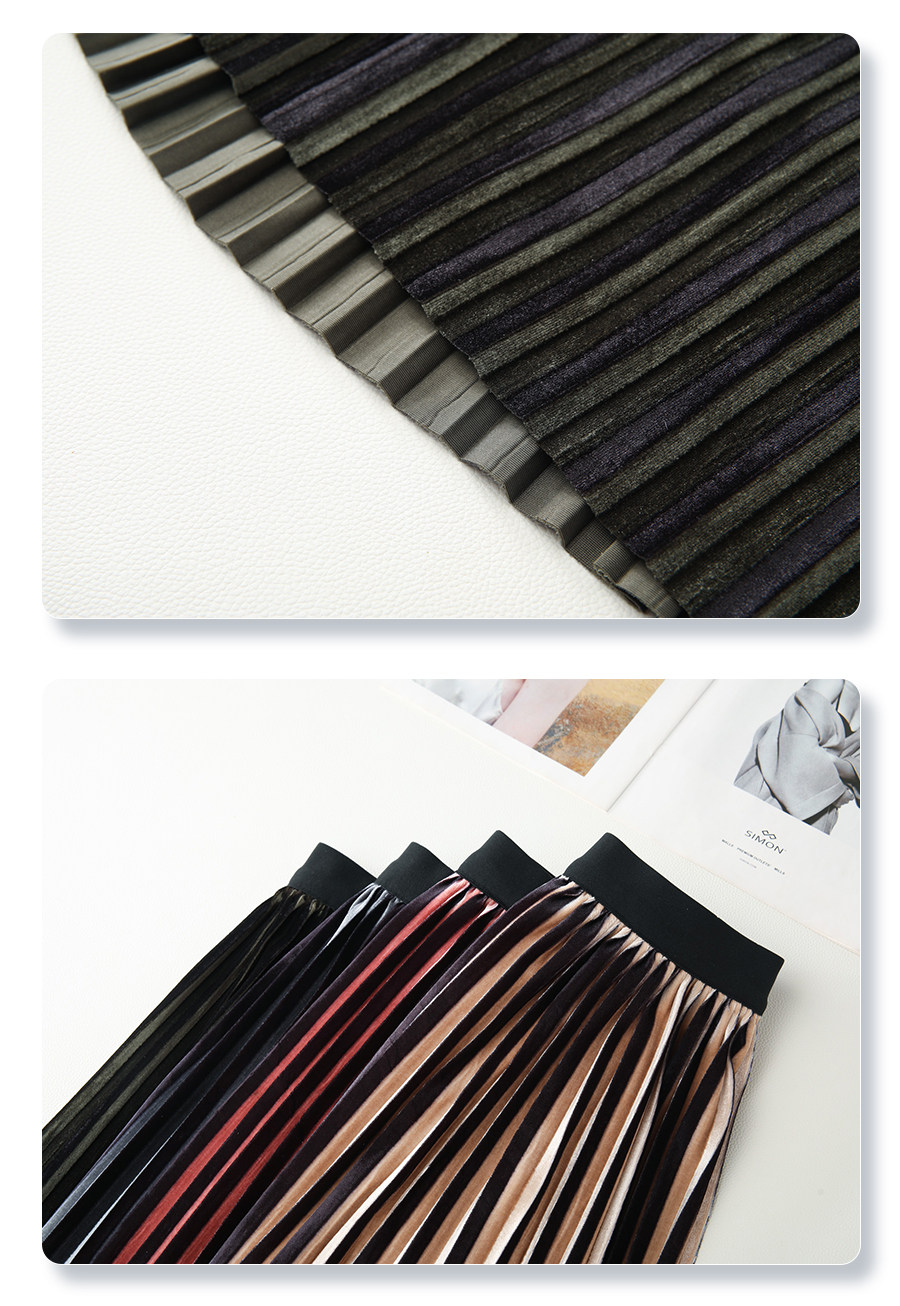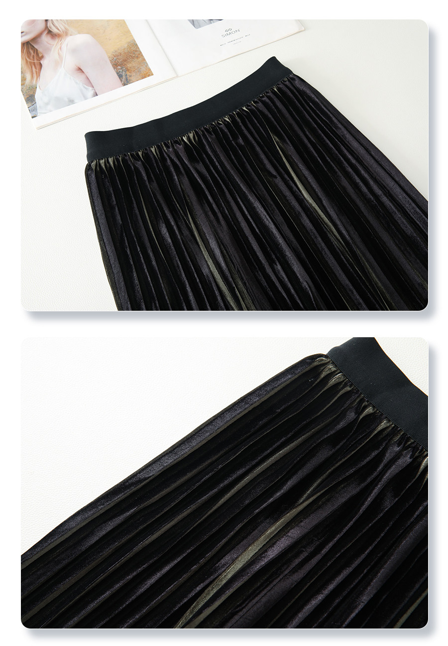 Red gold velvet skirt for women 2025 new autumn long skirt pleated skirt high waist slim a-line skirt half skirt