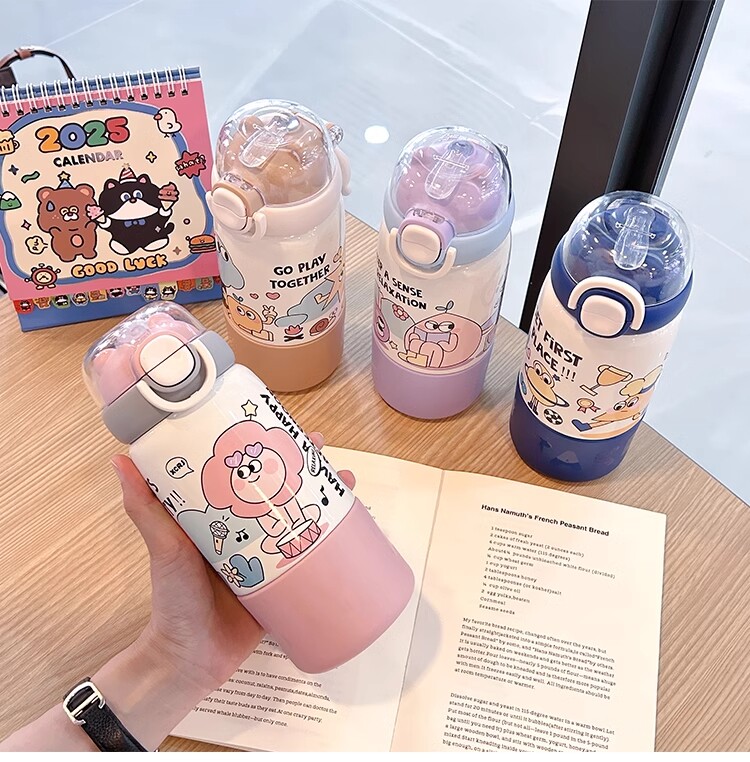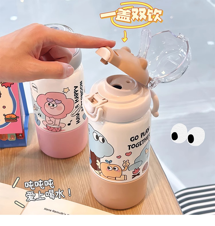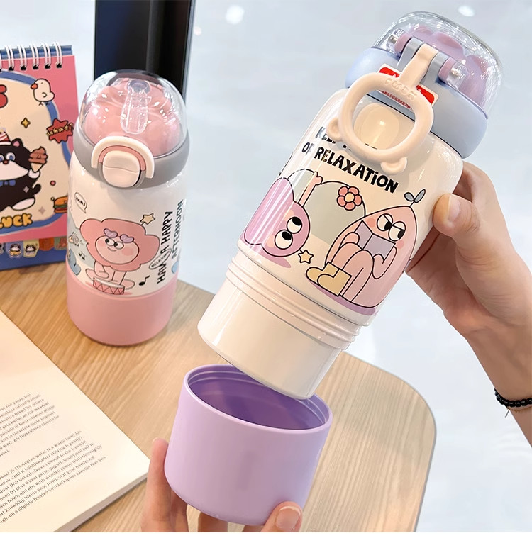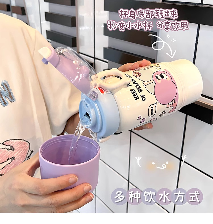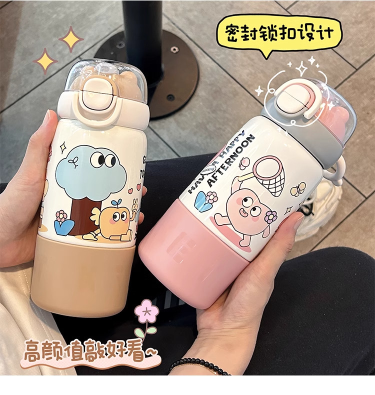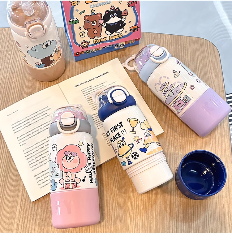 Small Tea Diary Three-In-One Insulated Cup Large Capacity Cute Water Bottle for Girls Children Students Straw Cup Gift