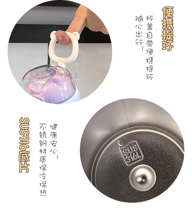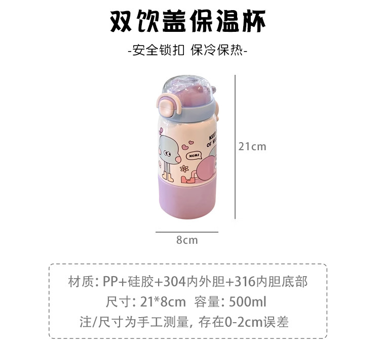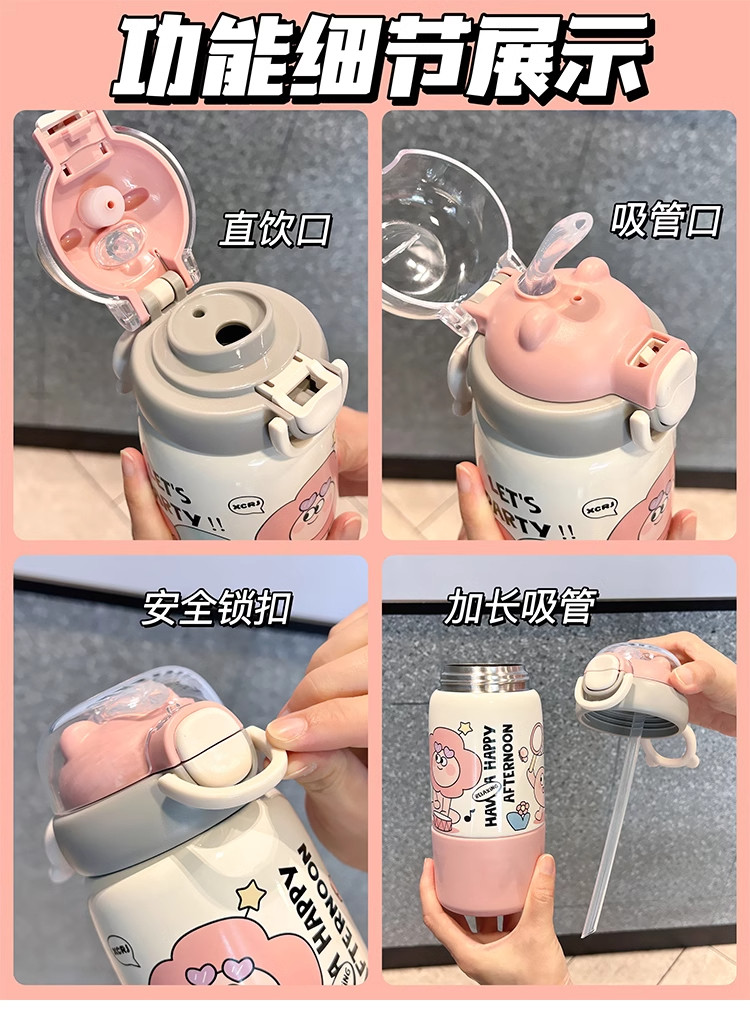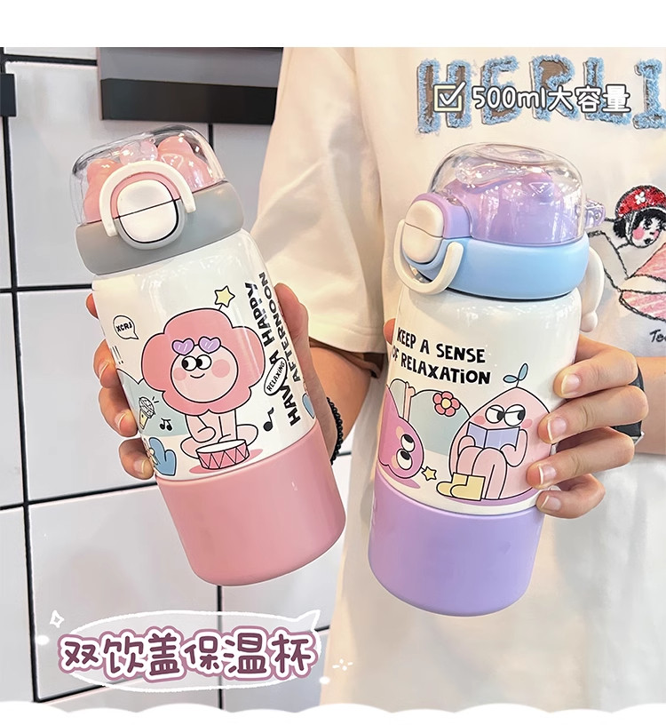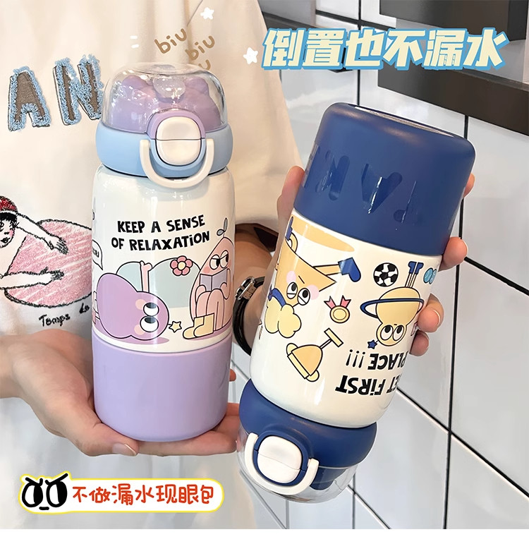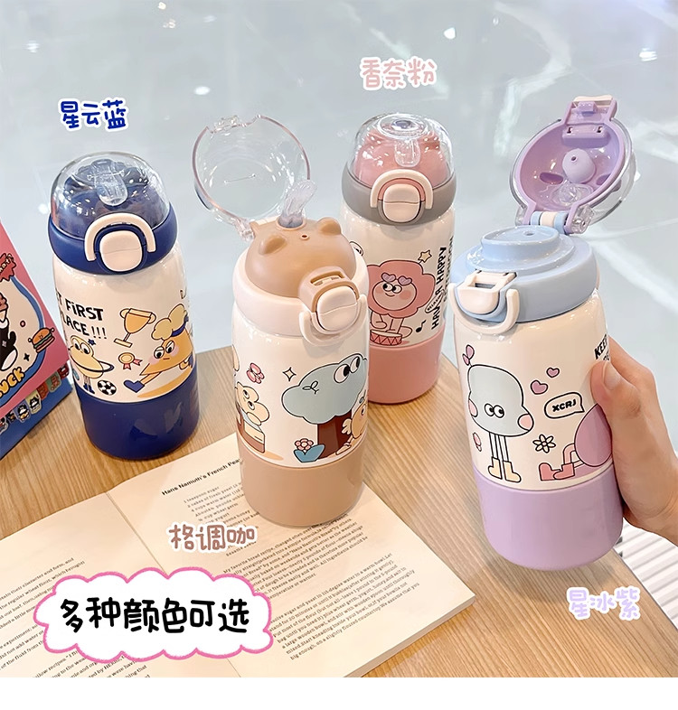 Small Tea Diary Three-In-One Insulated Cup Large Capacity Cute Water Bottle for Girls Children Students Straw Cup Gift