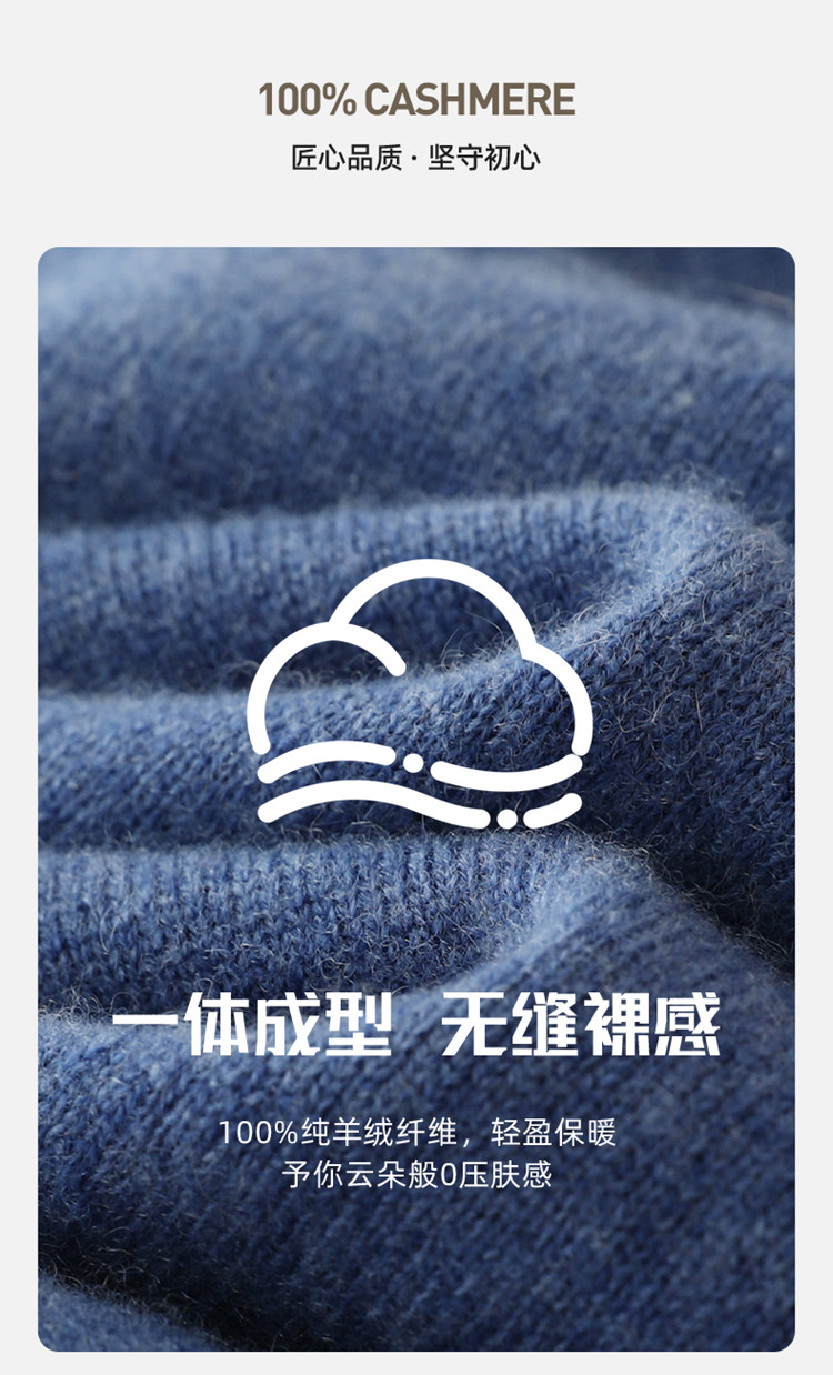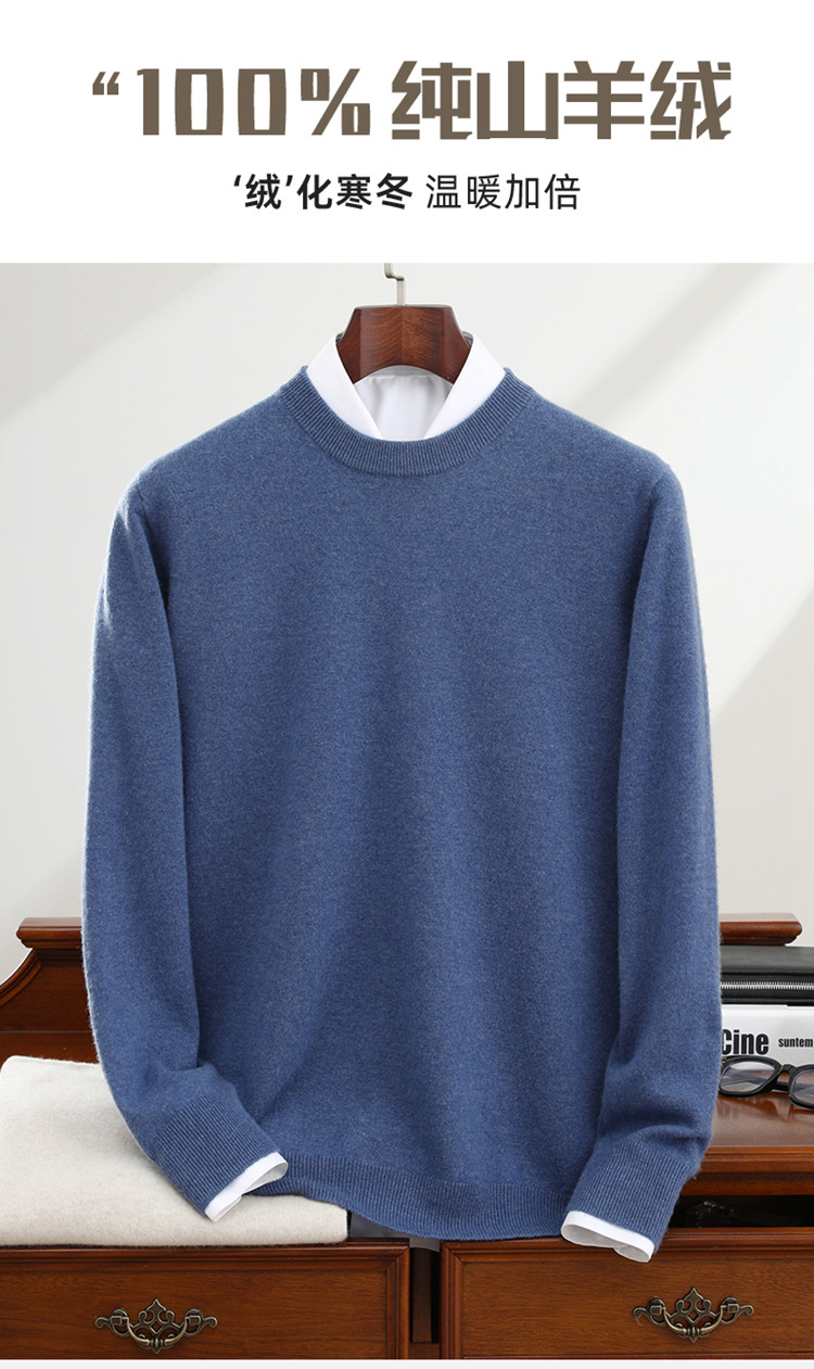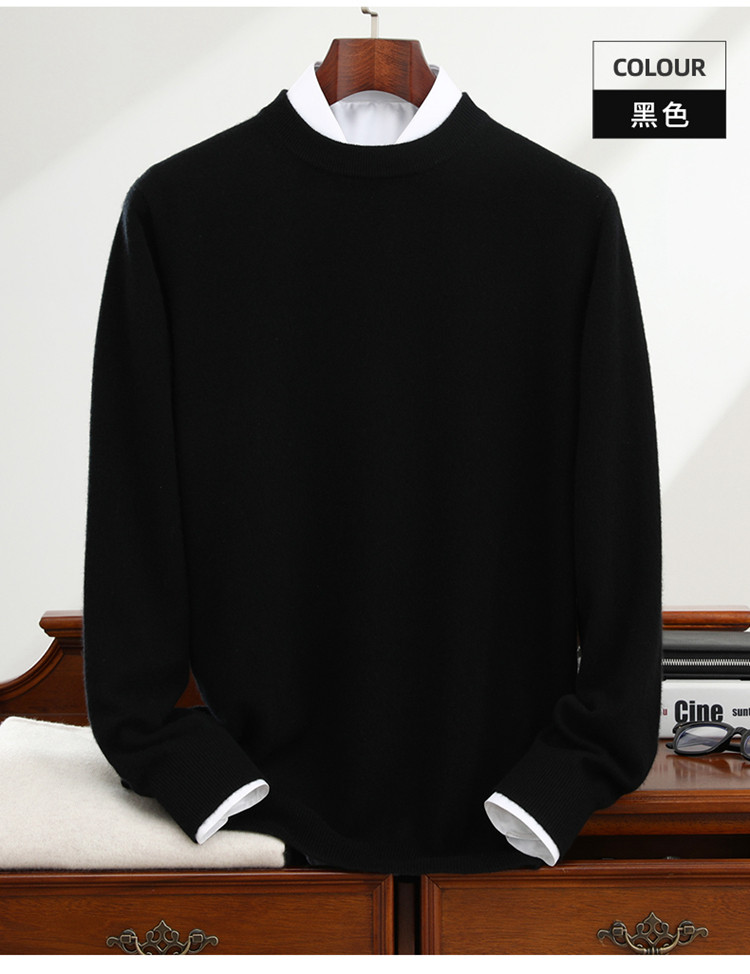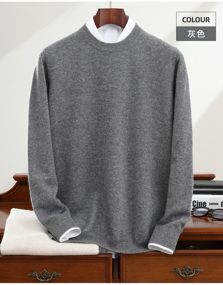 Men's seamless one-piece 100% pure cashmere sweater men's round neck autumn and winter loose large size sweater for middle-aged and elderly people