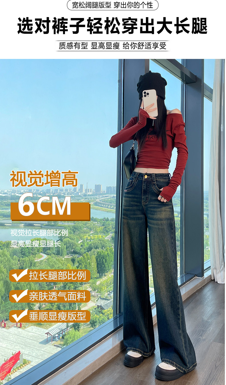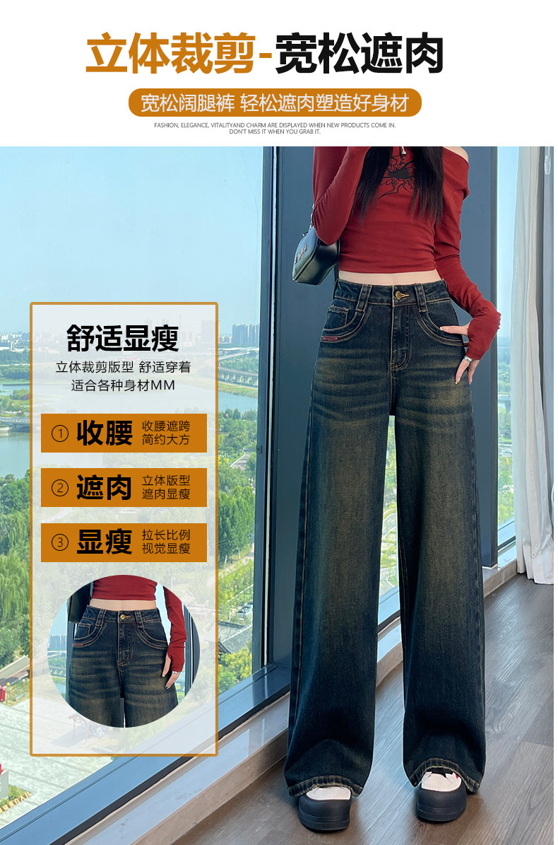 Wide-Leg Jeans for Women 2026 New Style This Year's Popular Spring and Autumn High-Waisted Stretchy Drapey Loose Straight Wide-Leg Pants