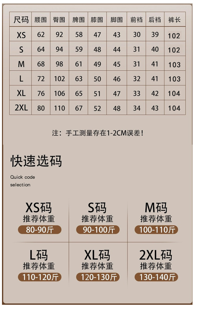 Outseam (cm) 99 cm 101.5 cm 104 cm 106.5 cm 109 cm