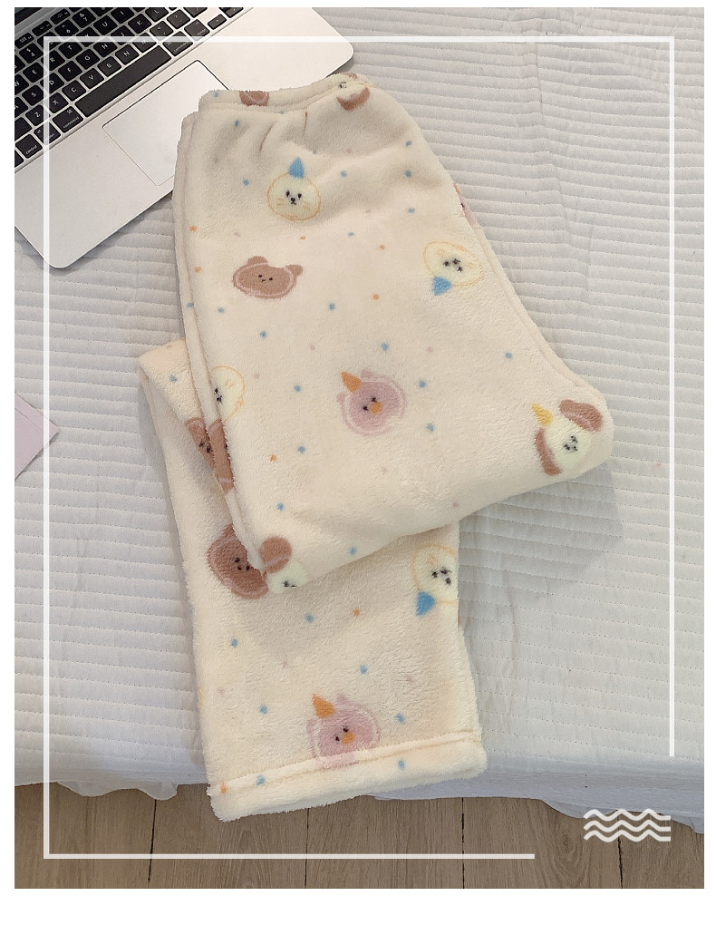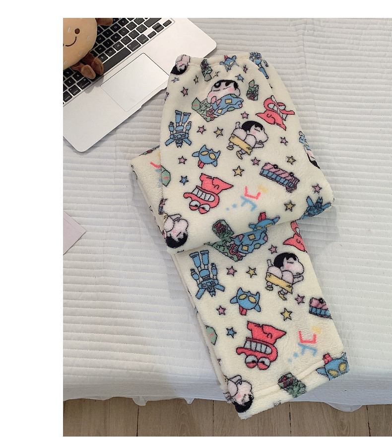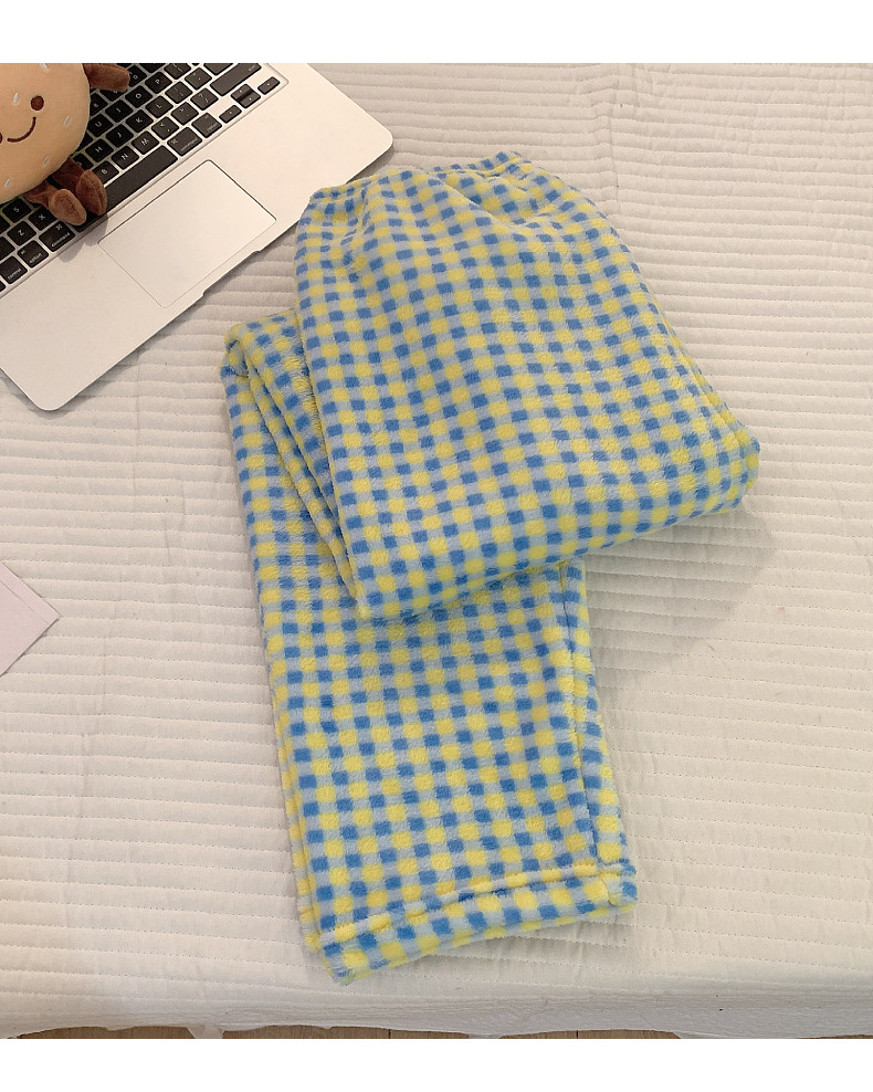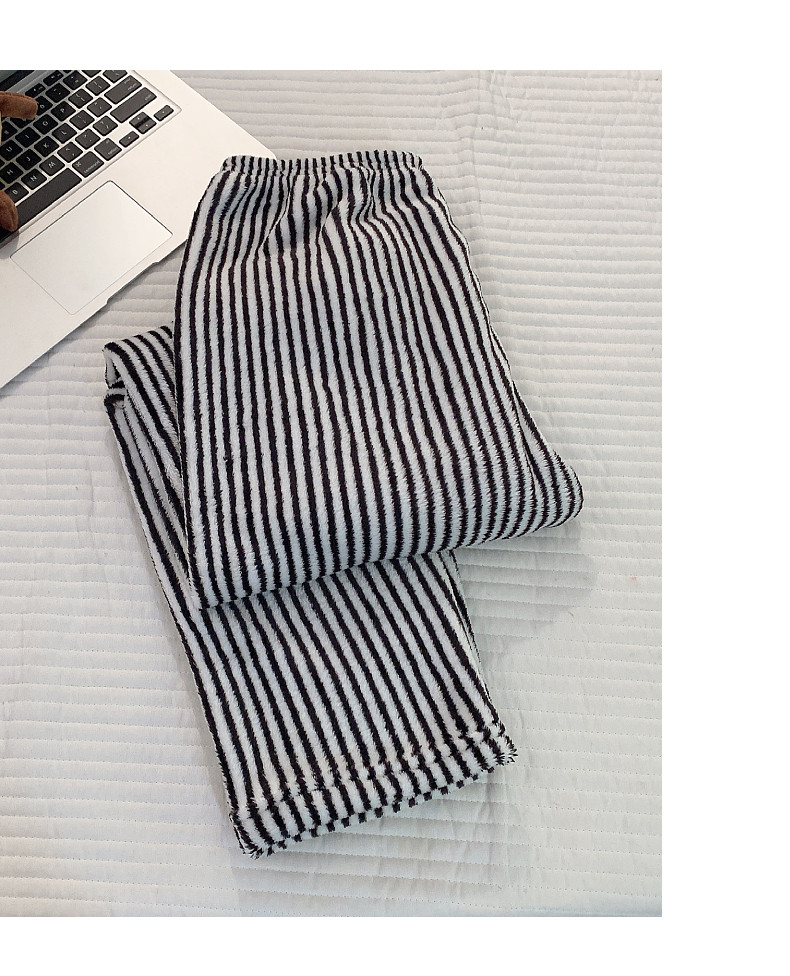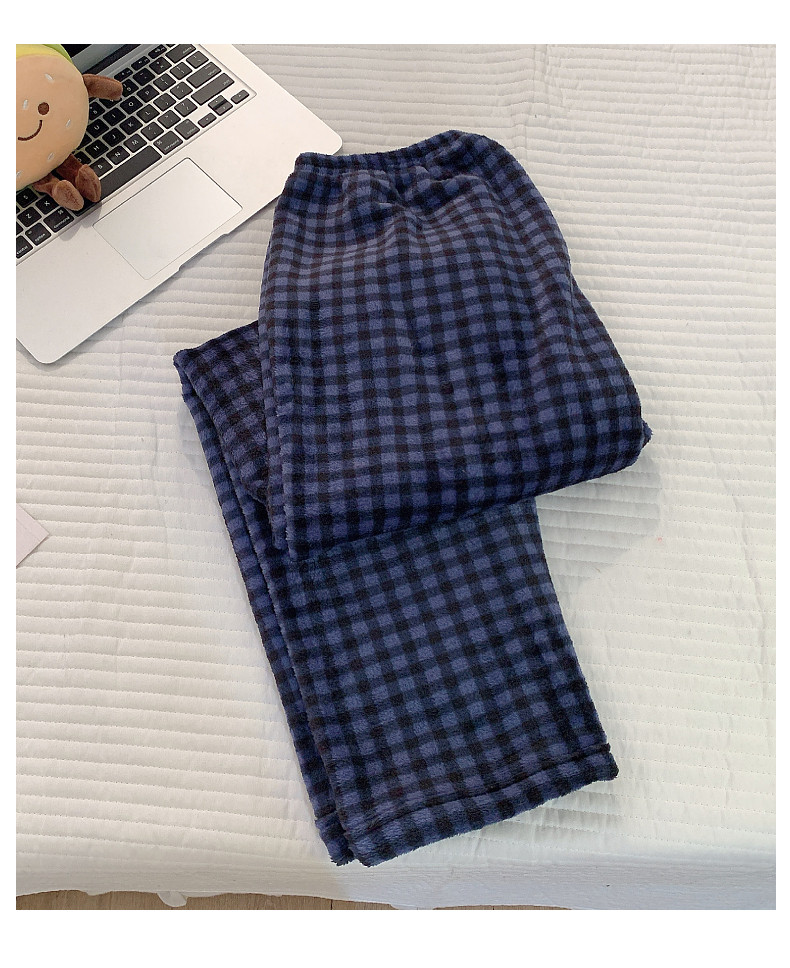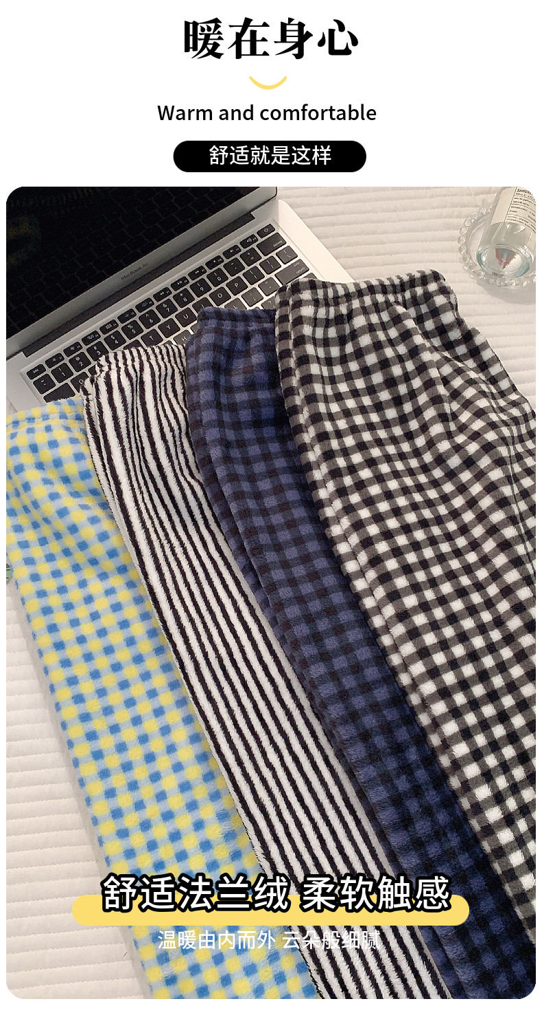 Flannel Pajamas for Men and Women in Autumn and Winter Fleece-Lined to Heattech Coral Velvet Loose Plus Size Boys' Home Pants