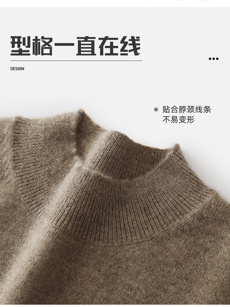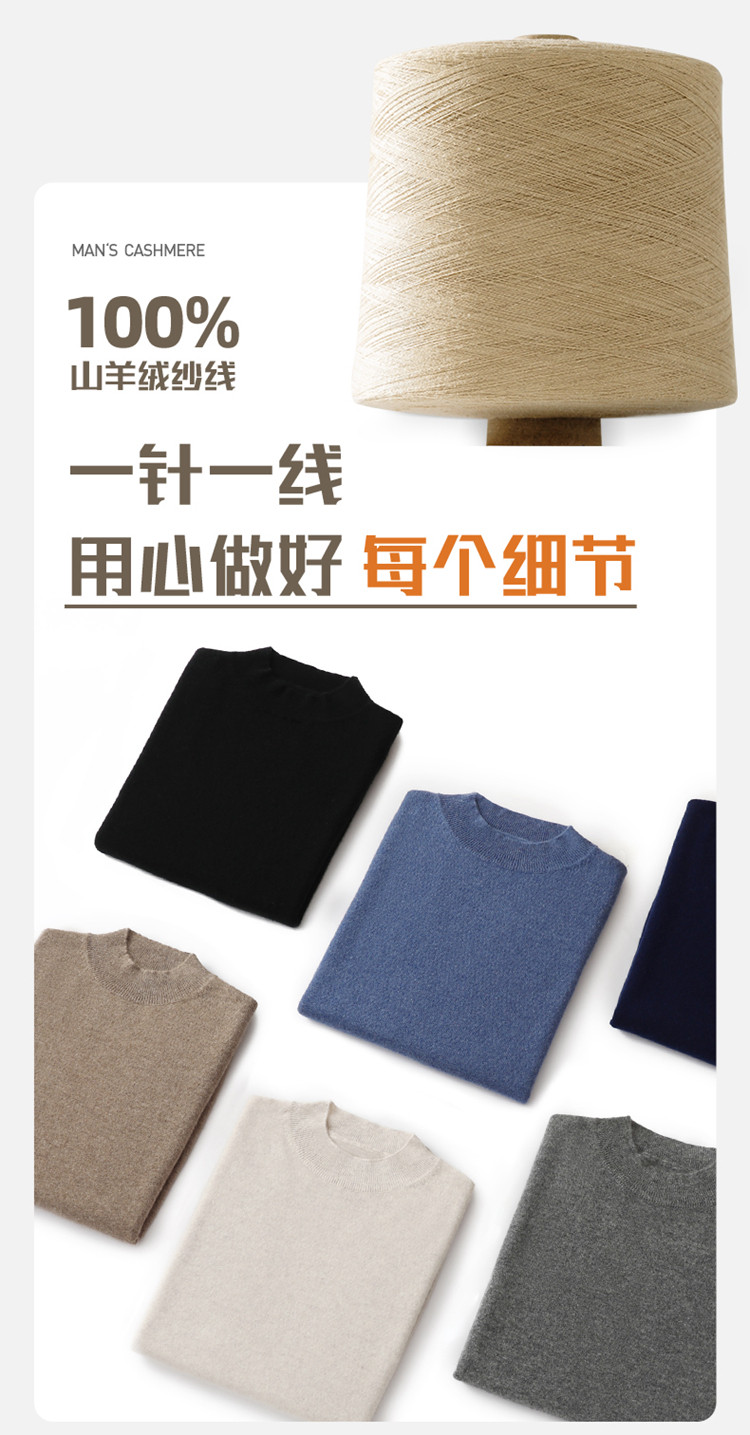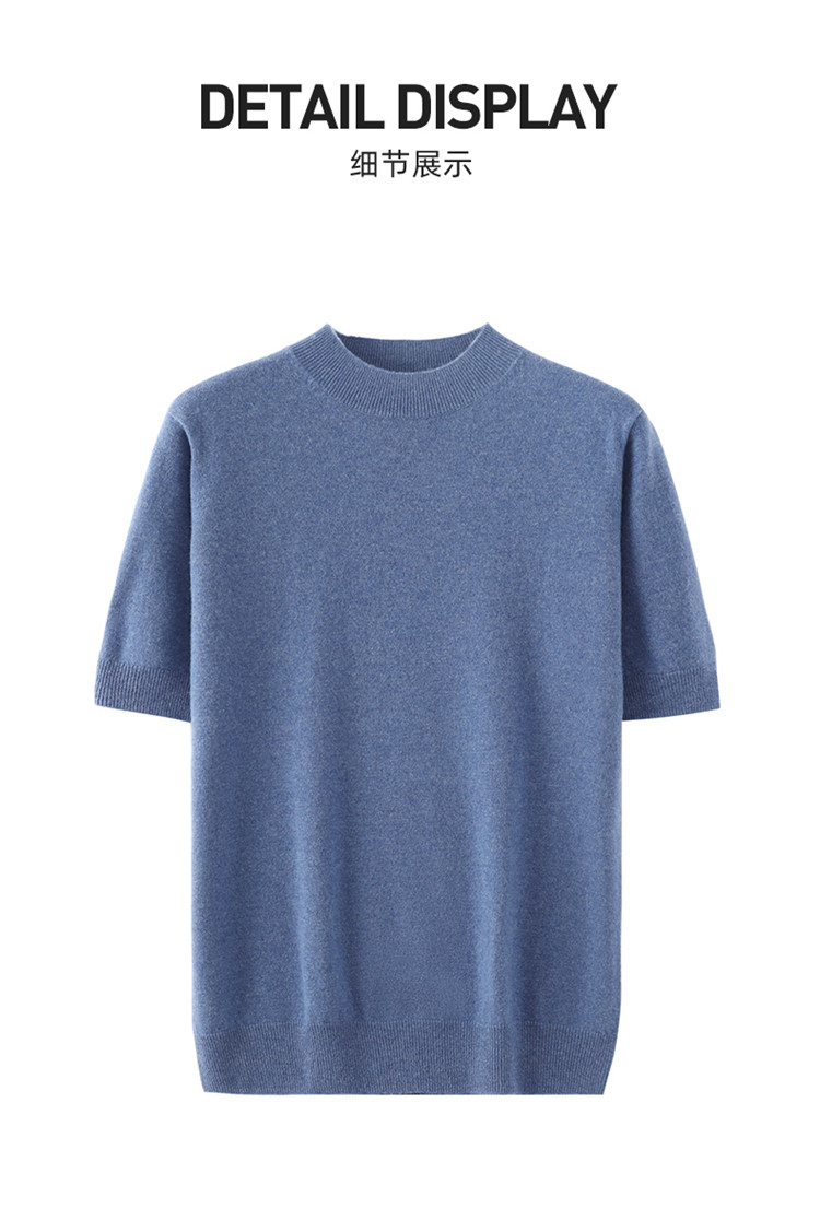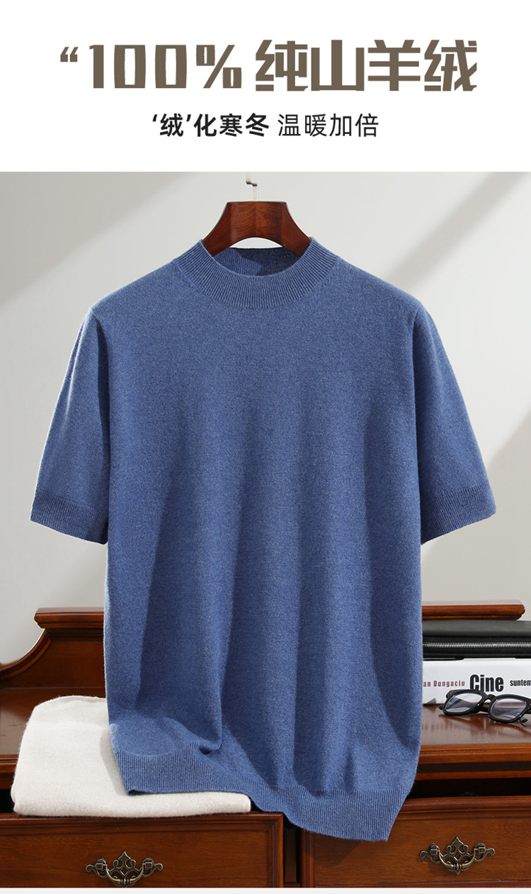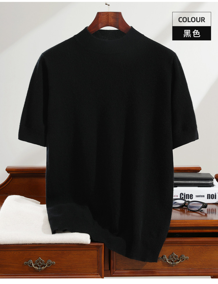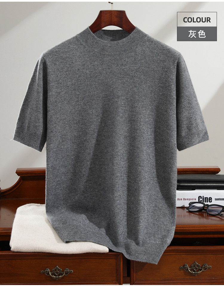 Men's seamless one-piece 100% pure cashmere sweater men's half turtleneck short-sleeved spring, autumn and winter mid-sleeve sweater bottoming shirt