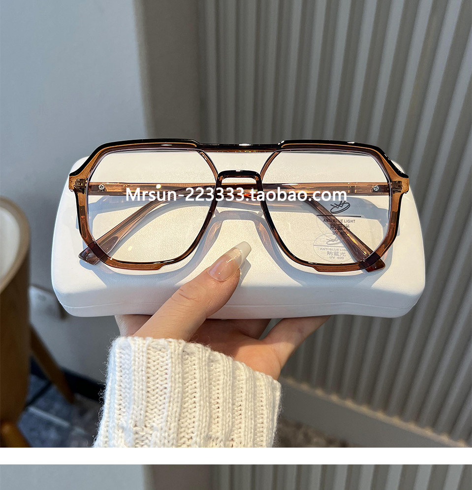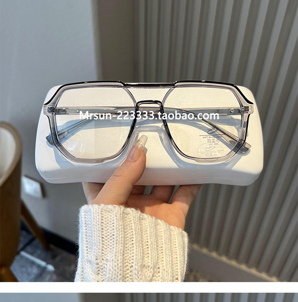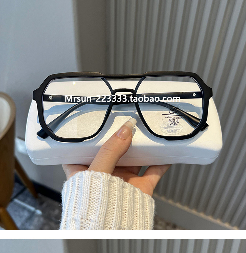 Trendy Double-Bridge Myopia Glasses for Men, Stylish and Cool, Ultra-Light, Large Frame, Blue Light Blocking, Prescription-Compatible