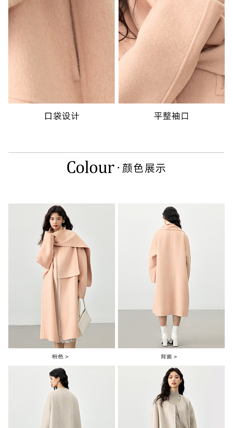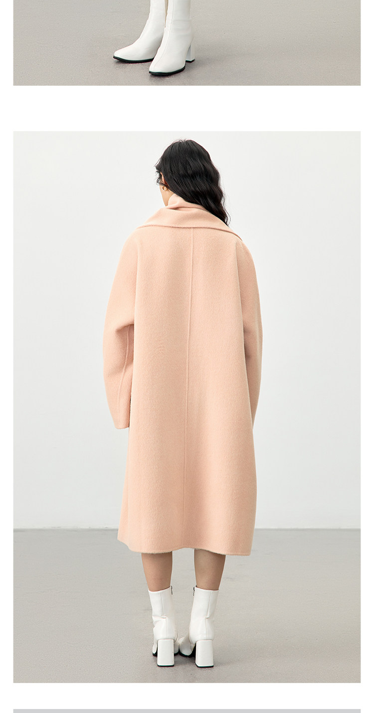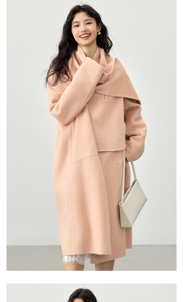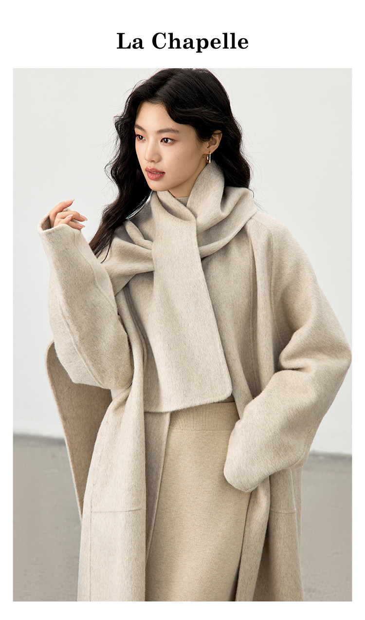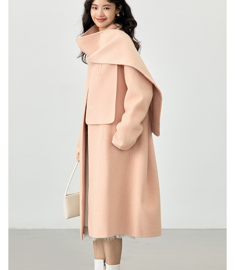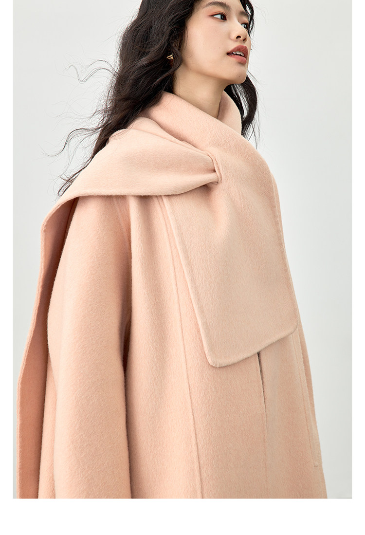 La Chapelle pink scarf collar double-sided woolen coat for women autumn and winter new style high-end temperament woolen coat