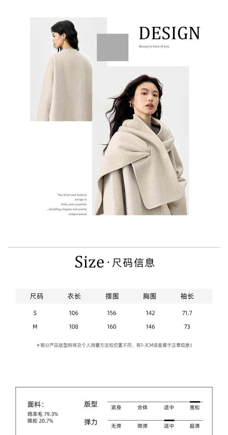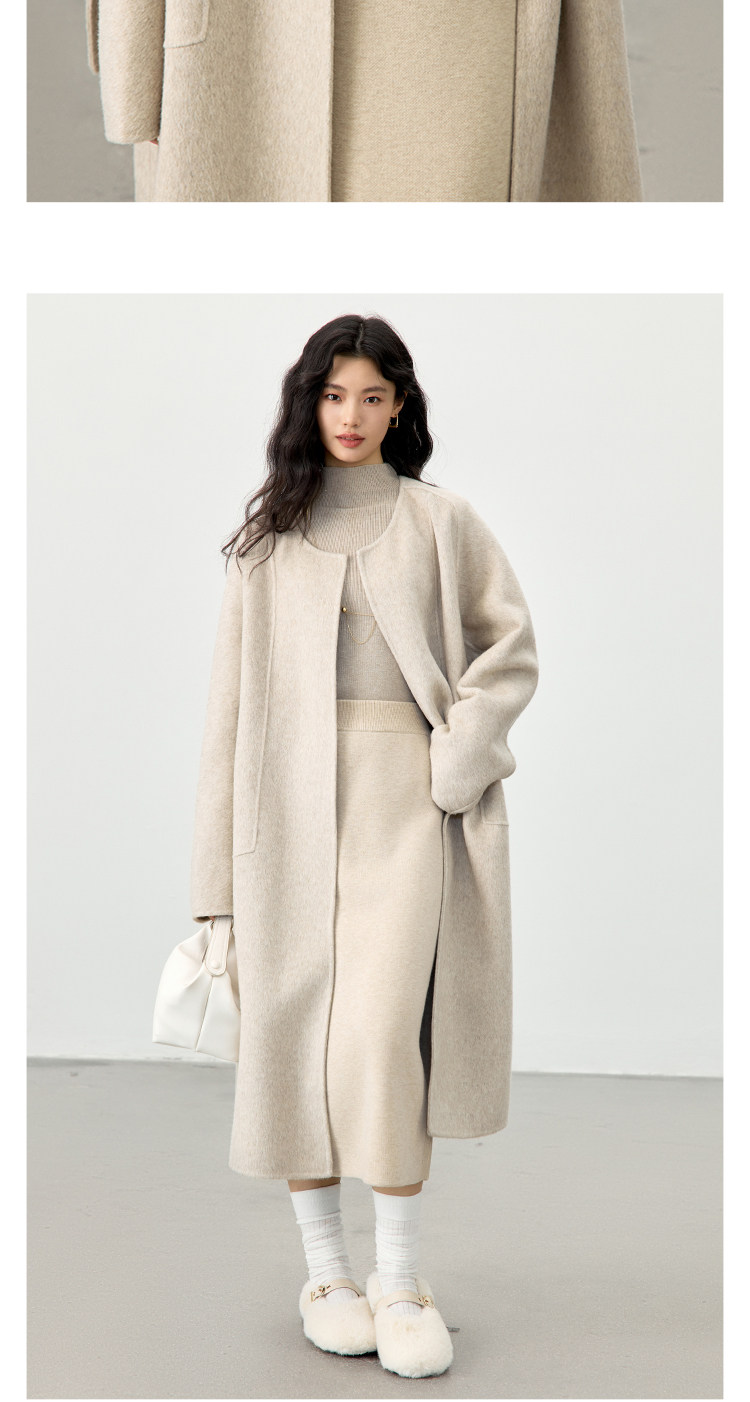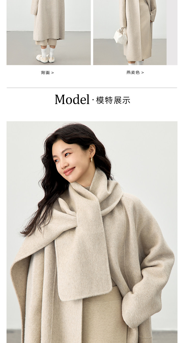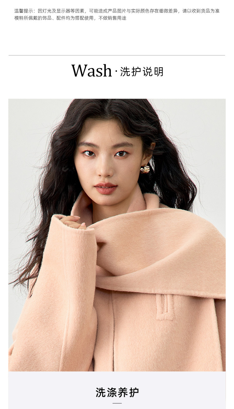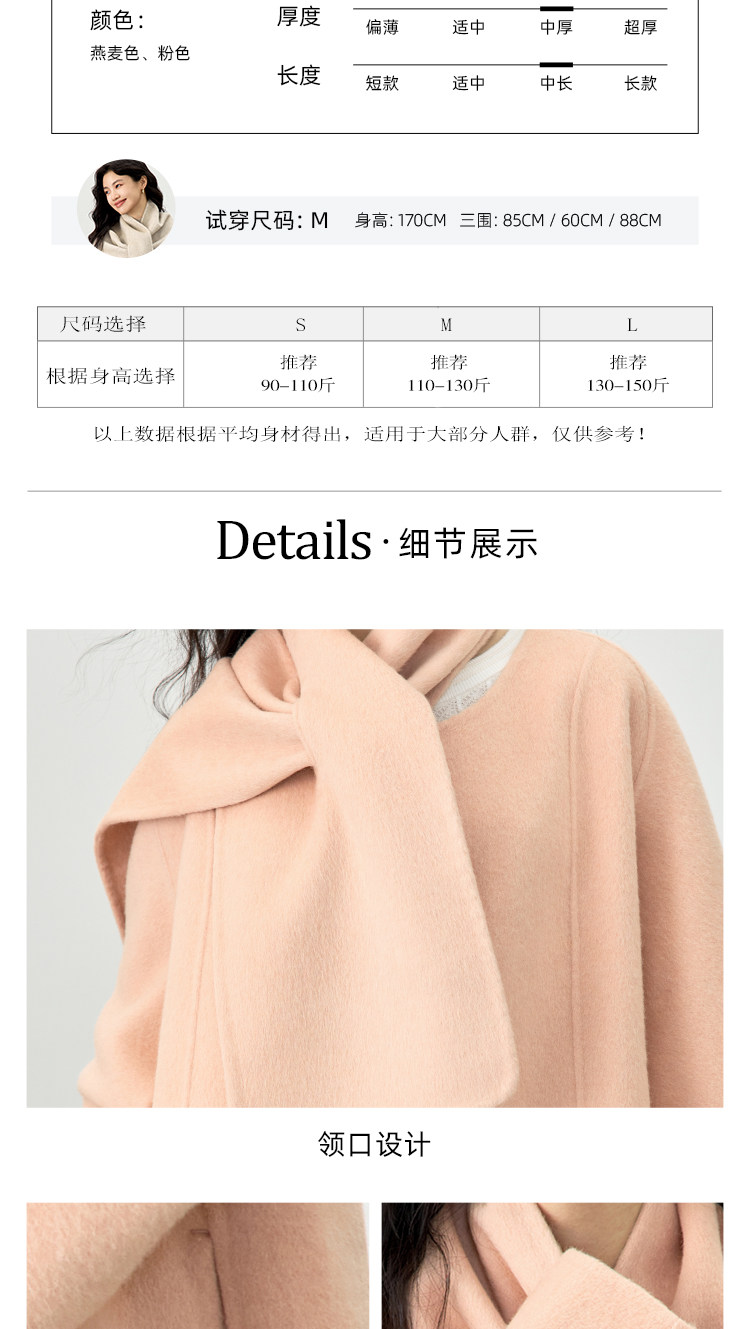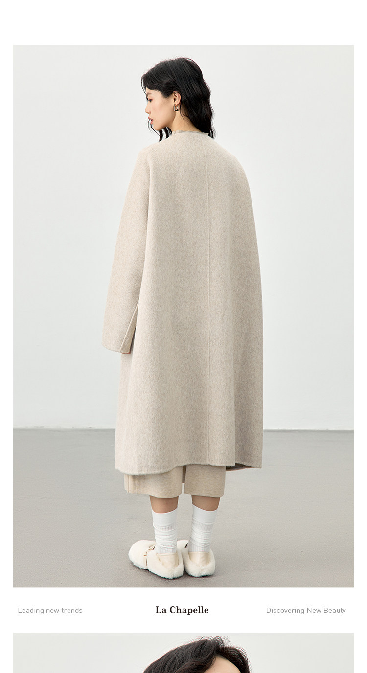 La Chapelle pink scarf collar double-sided woolen coat for women autumn and winter new style high-end temperament woolen coat