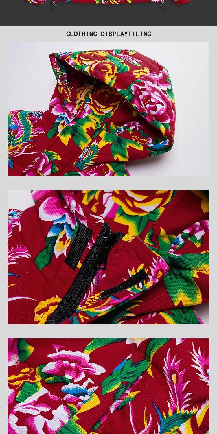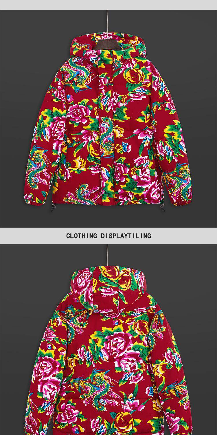 Northeast large flower print thickened down jacket winter warm jacket men's youth classic pattern hooded cold jacket