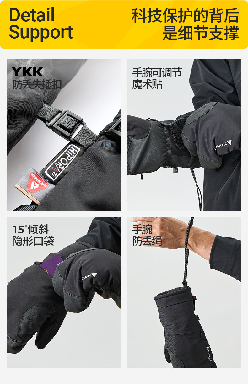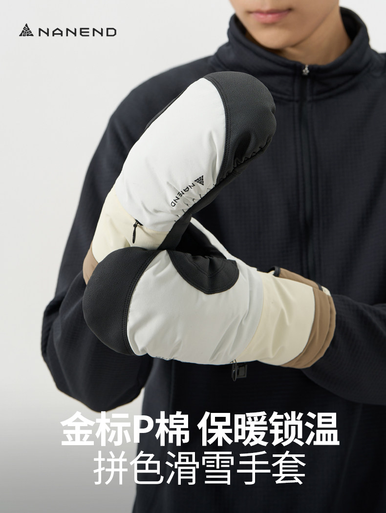 Nanend Nanen New Color-Blocked Ski Gloves for Women and Men, Professional Warm and Waterproof, Gold Label P Cotton Ns5016