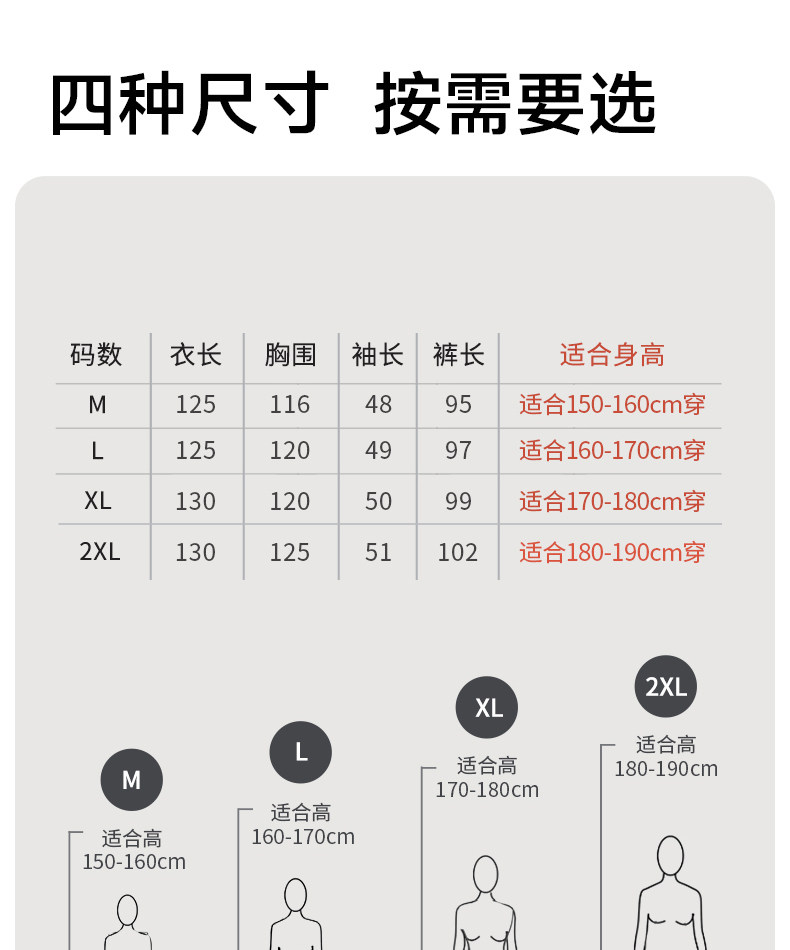 Size M Size [Suitable for 150-160cm],L Size [Suitable for 160-170cm],XL Size [Suitable for 170-180cm],2XL Size [Suitable for 180-190cm]