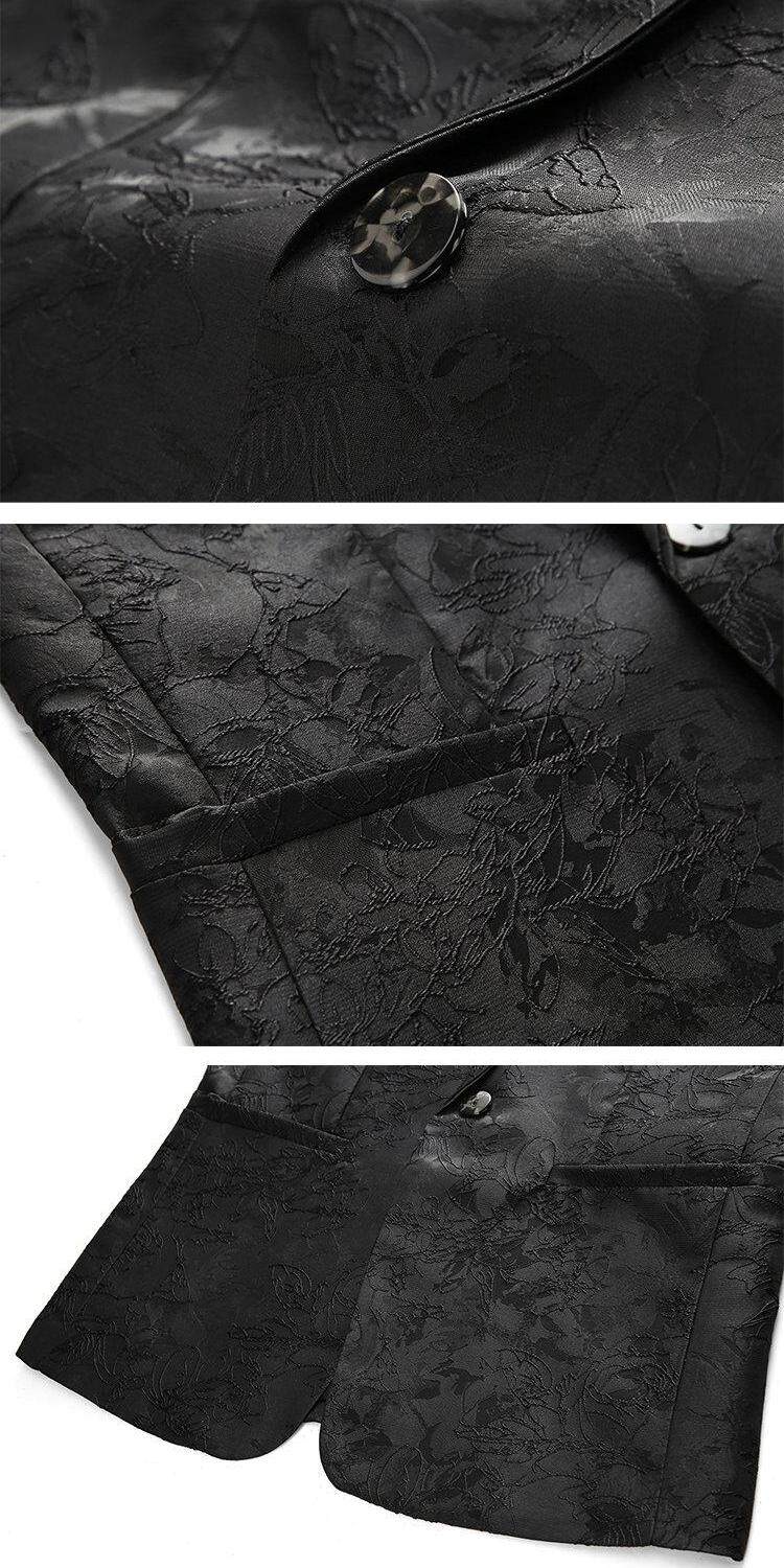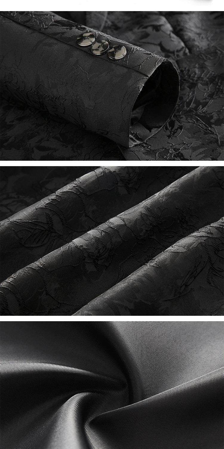 British retro small blazer men's casual fashion single suit black bottom floral pattern print suit for young and middle-aged people