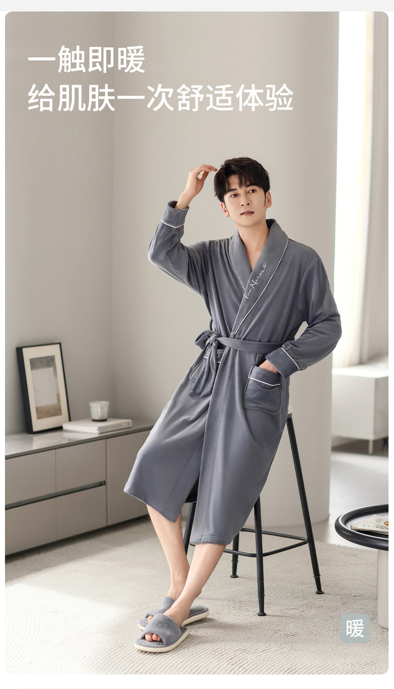 Catman Nightgown Men's Winter Island Velvet Plus Velvet Thickened Bathrobe Autumn and Winter 2025 New Xuanyun Pajamas Men's Style