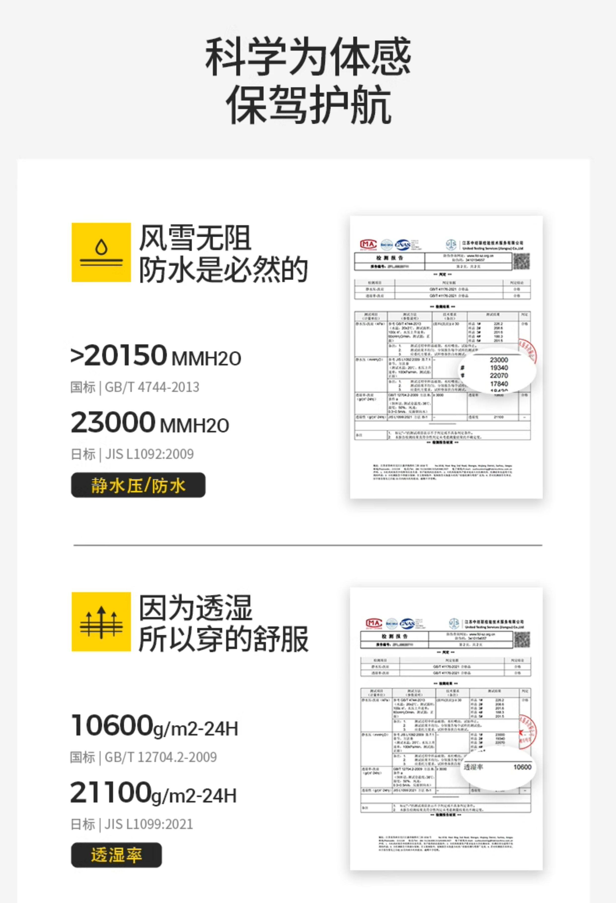Waterproof Hydrostatic Pressure> 20000Mmh₂O,Surface Moisture Resistance: ≥4-5 Levels before Washing, ≥3-4 Levels after Washing