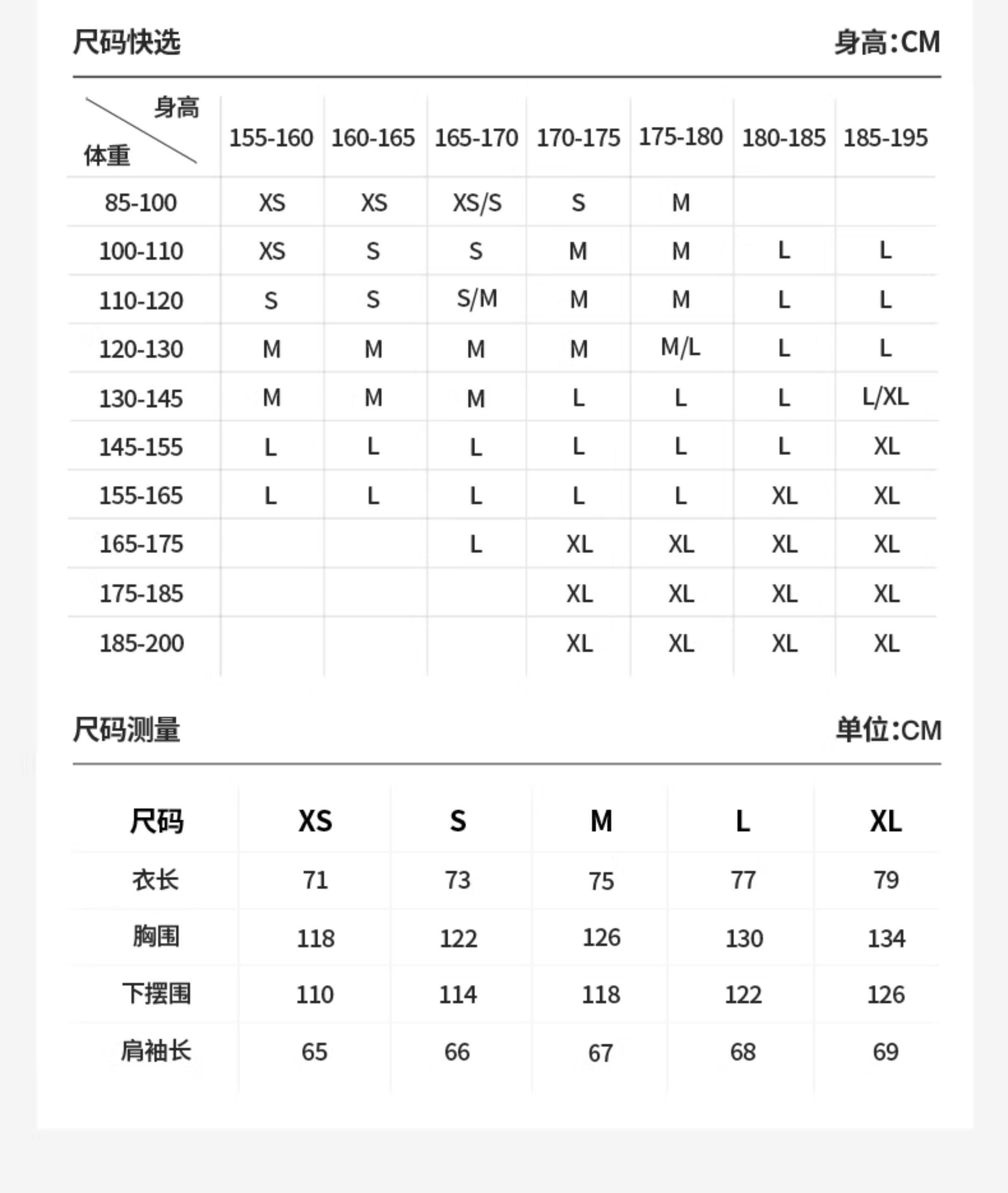 China (cm) 160-165/84-86 165-170 / 88-90 167-172 / 92-96 168-173 / 98-102 170-176 / 106-110