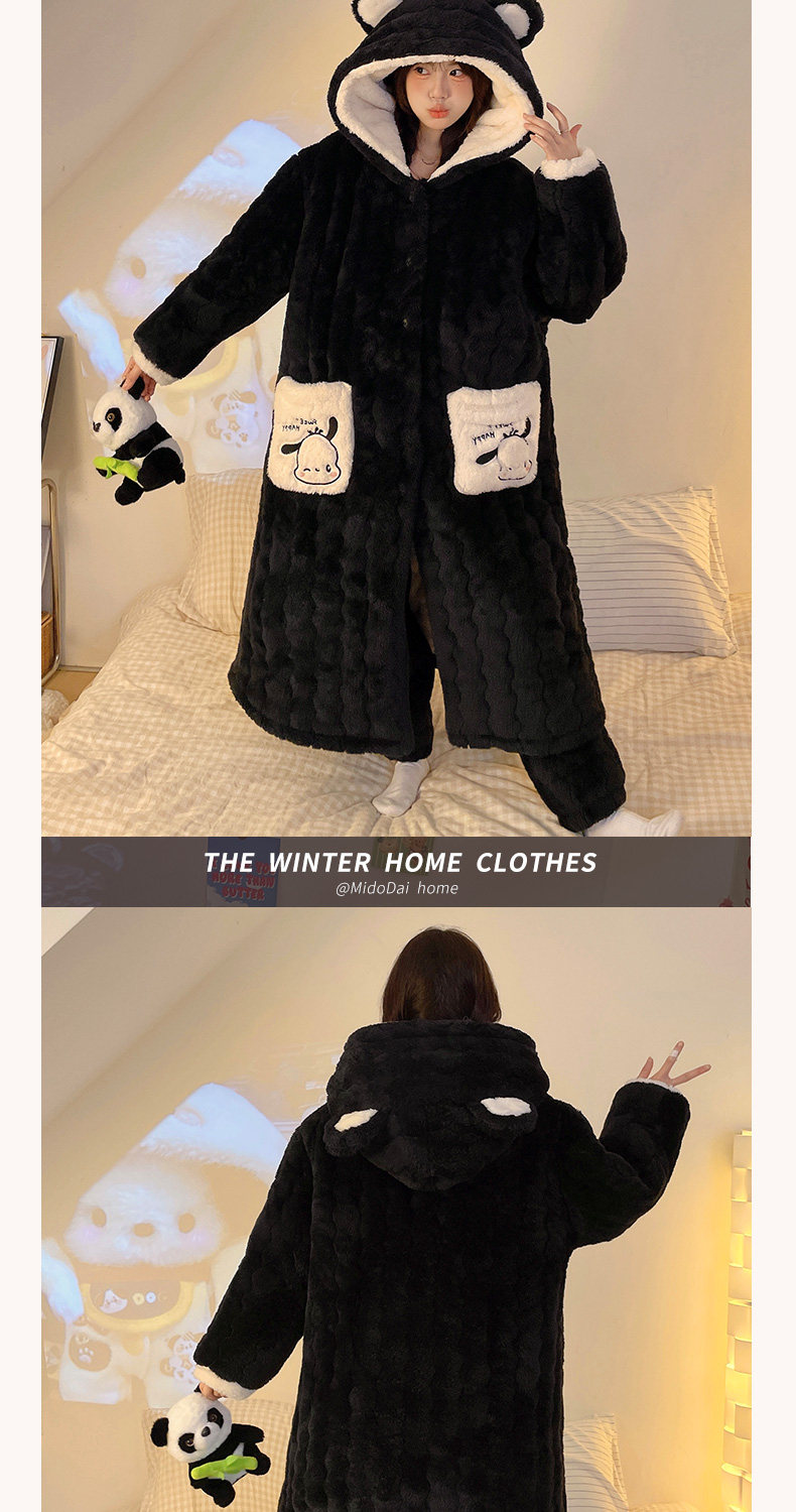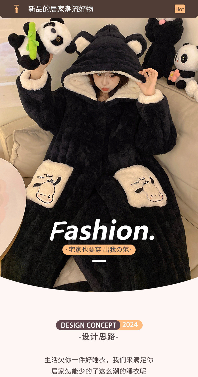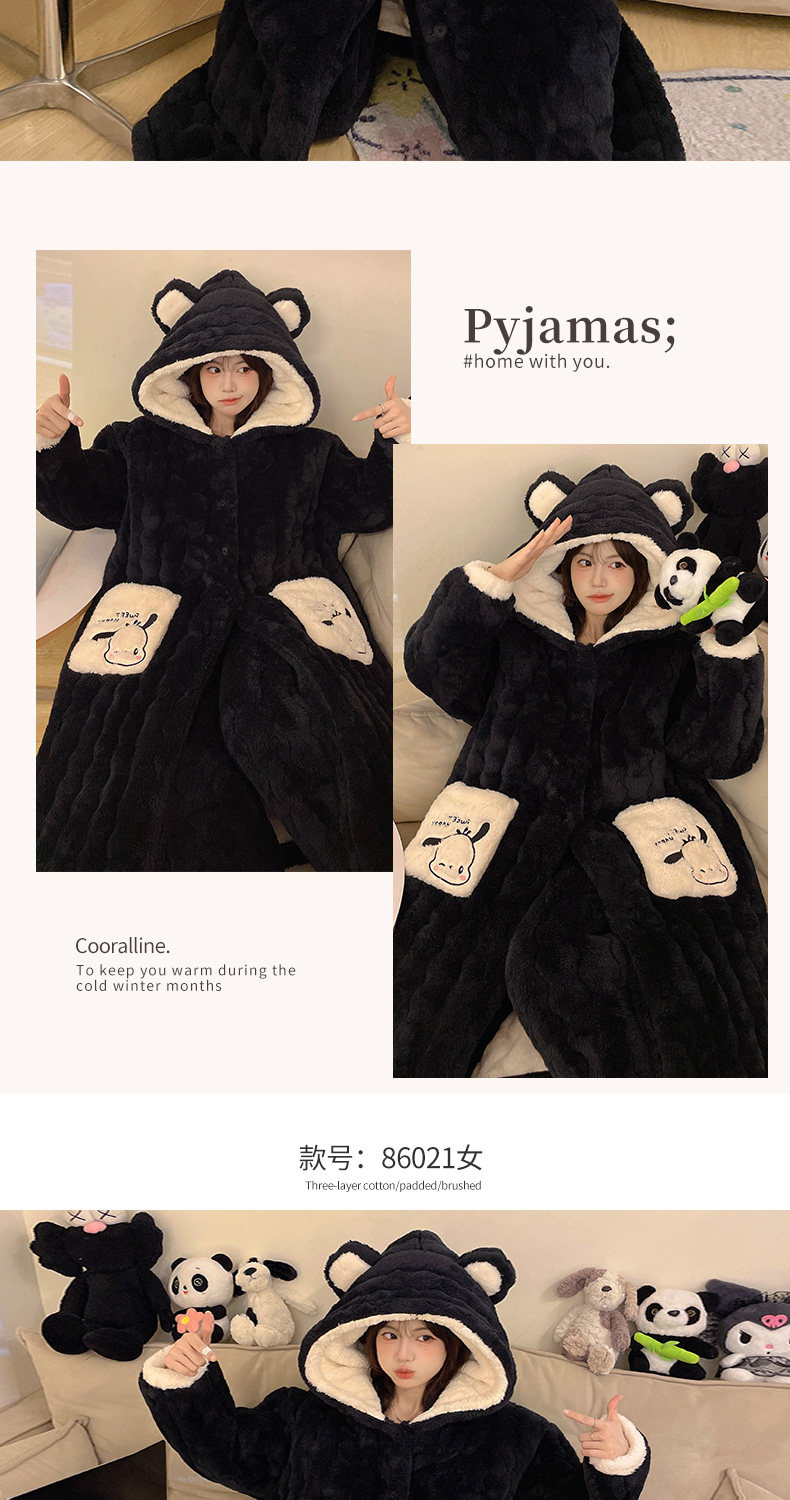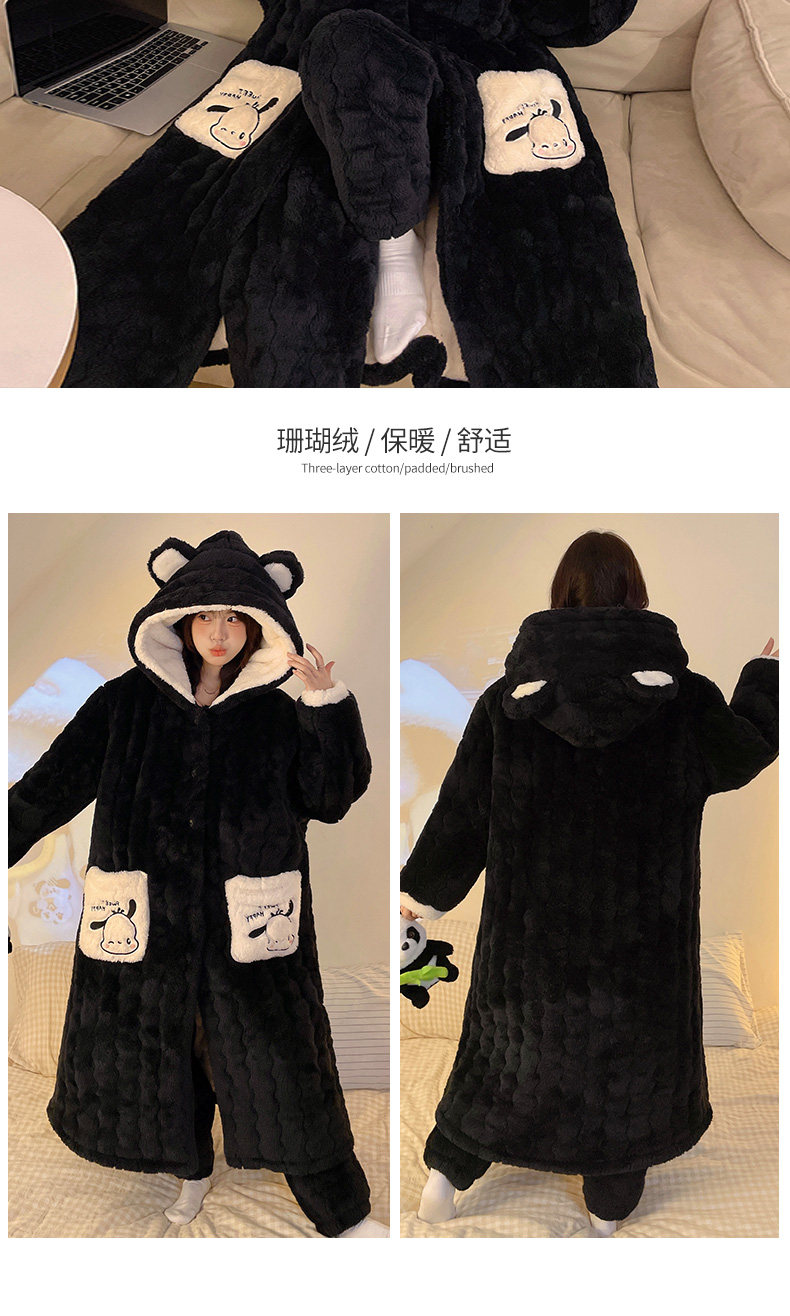 Three-Layer Quilted 2026 New Style Pajamas Women's Robe Loungewear Autumn and Winter Coral Fleece Thickened Set