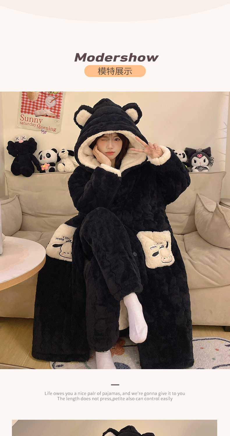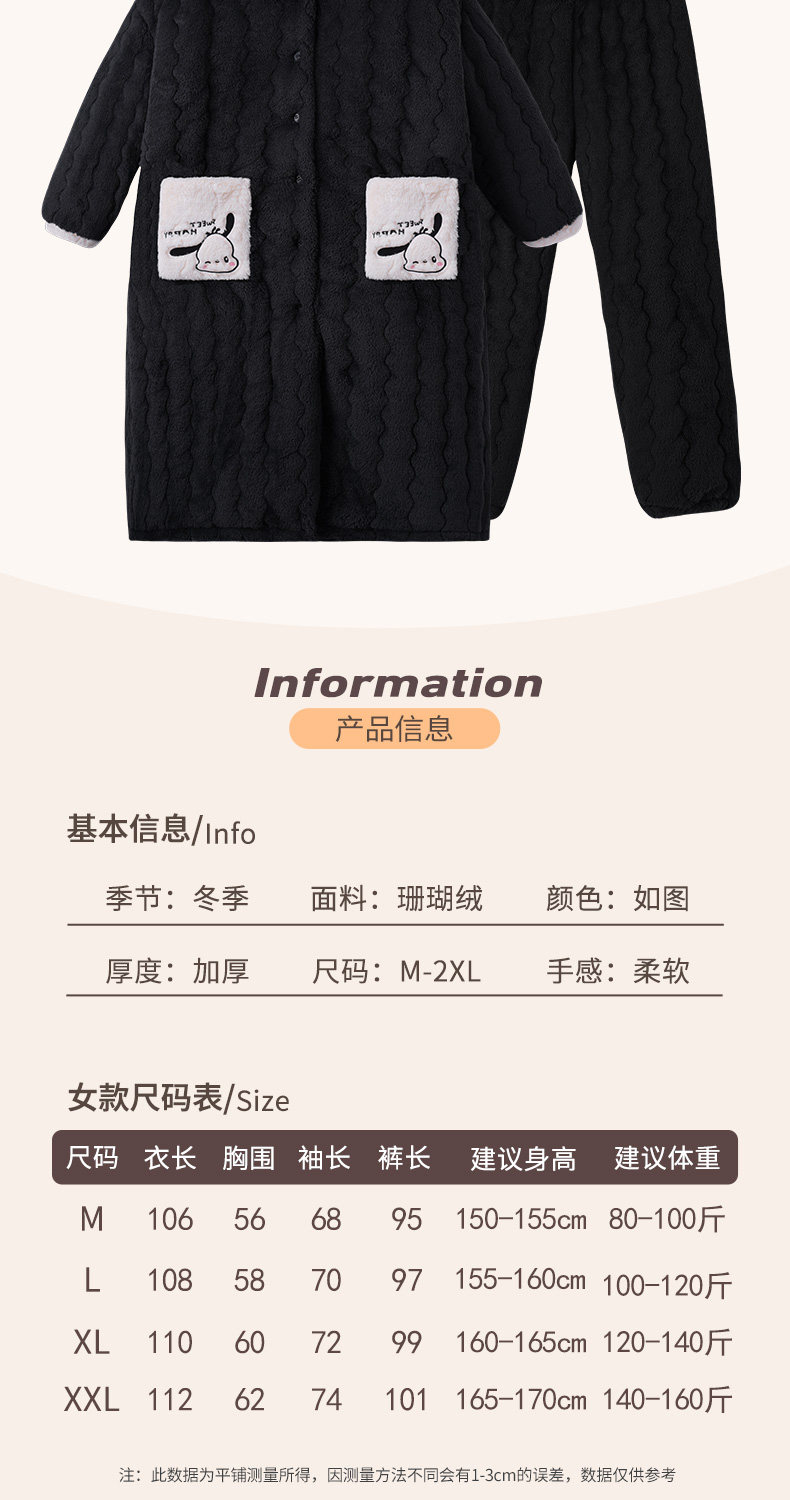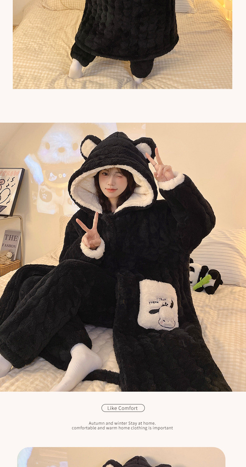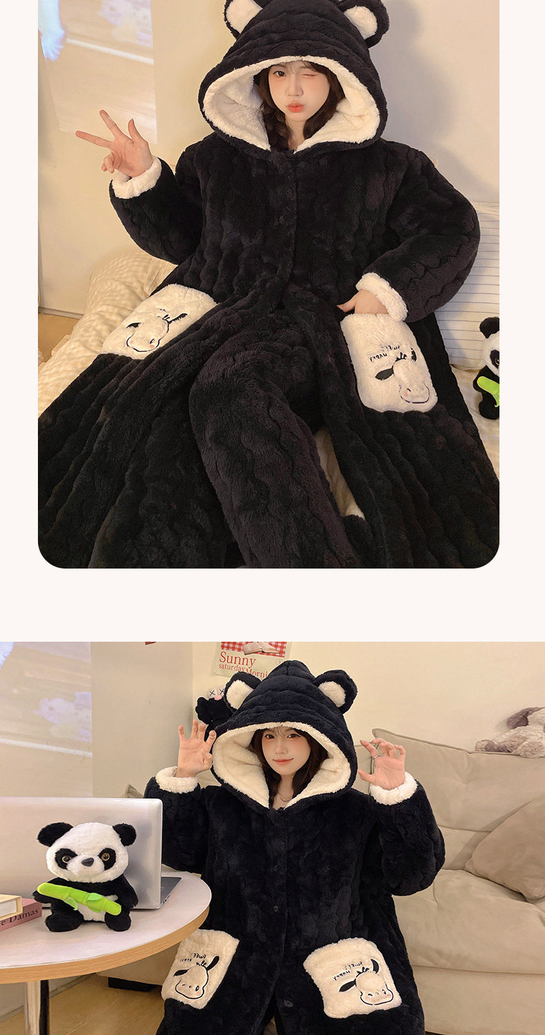 Three-Layer Quilted 2026 New Style Pajamas Women's Robe Loungewear Autumn and Winter Coral Fleece Thickened Set