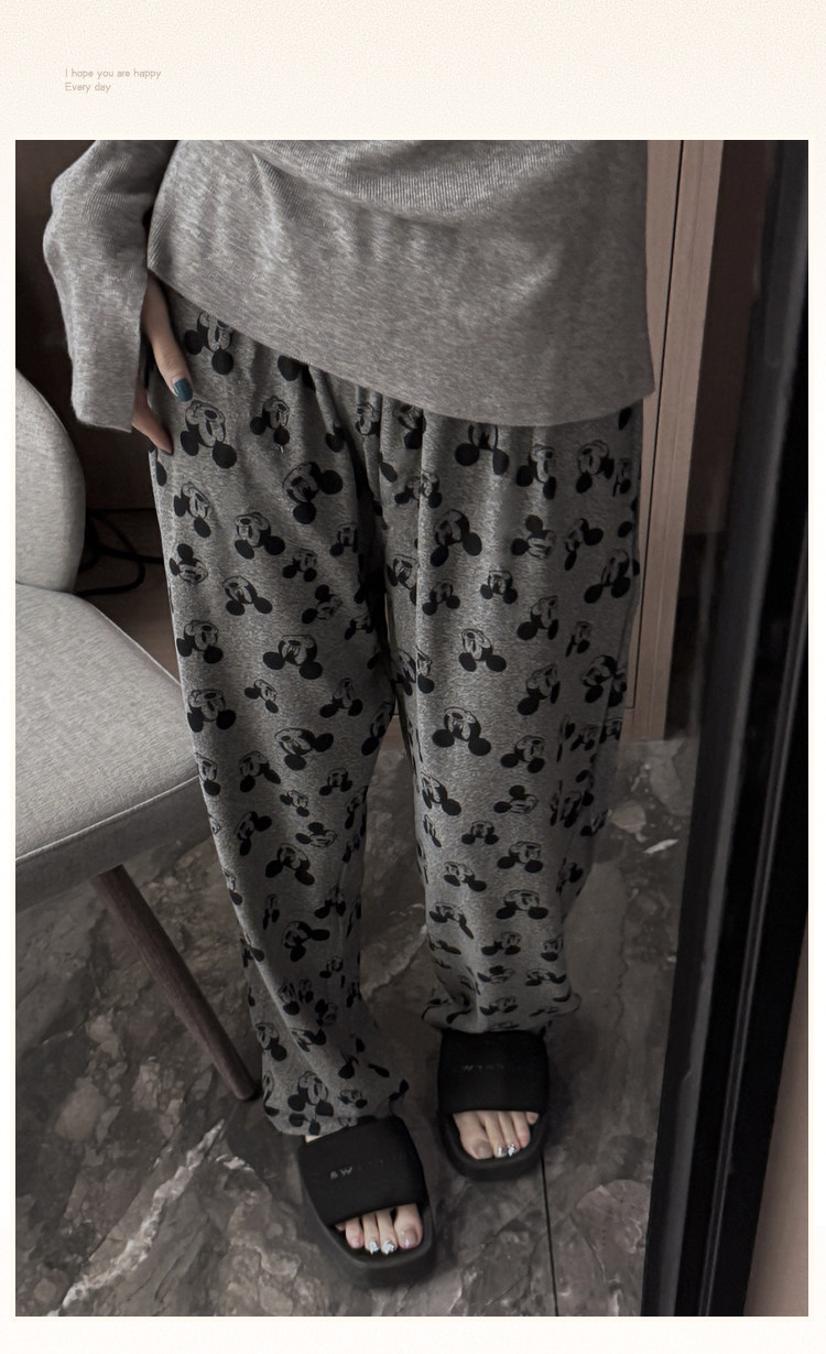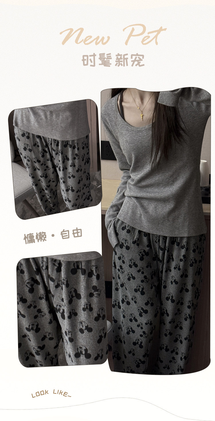 Pajama Pants Women's Pants Autumn and Winter German Velvet Warm Cartoon Soft and Waxy Flap Pocket Pants Home Pants Loose Casual Home Pants Winter