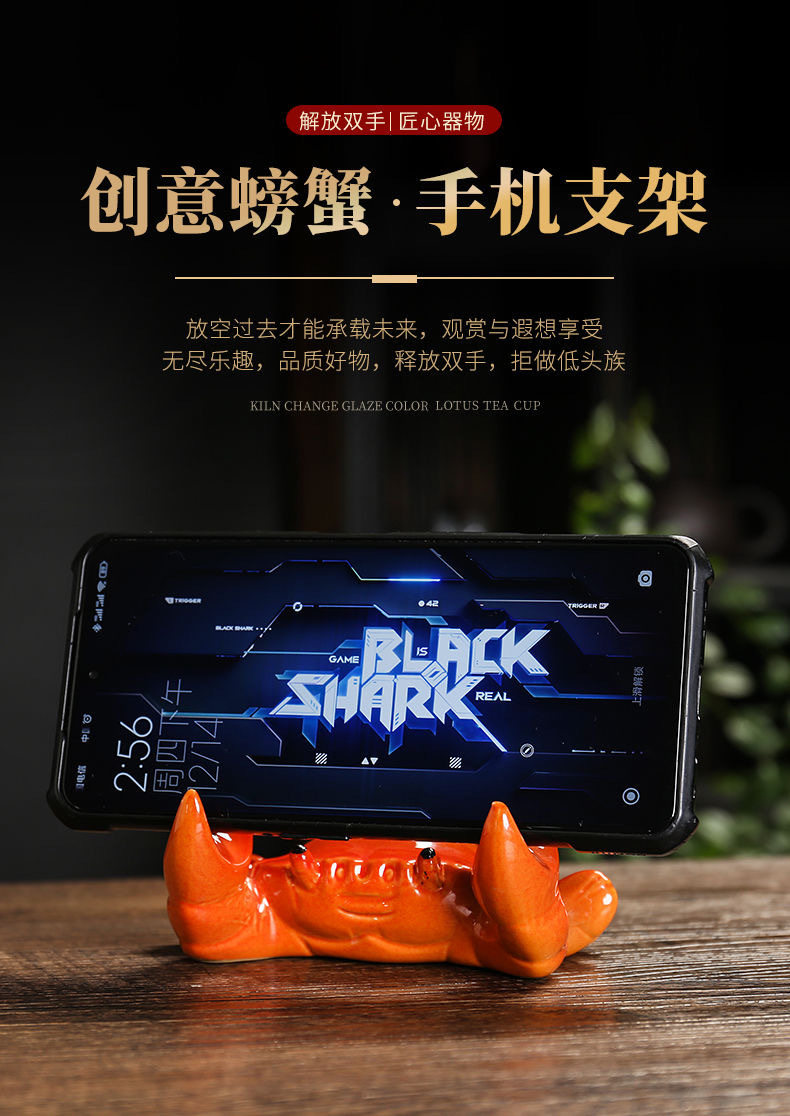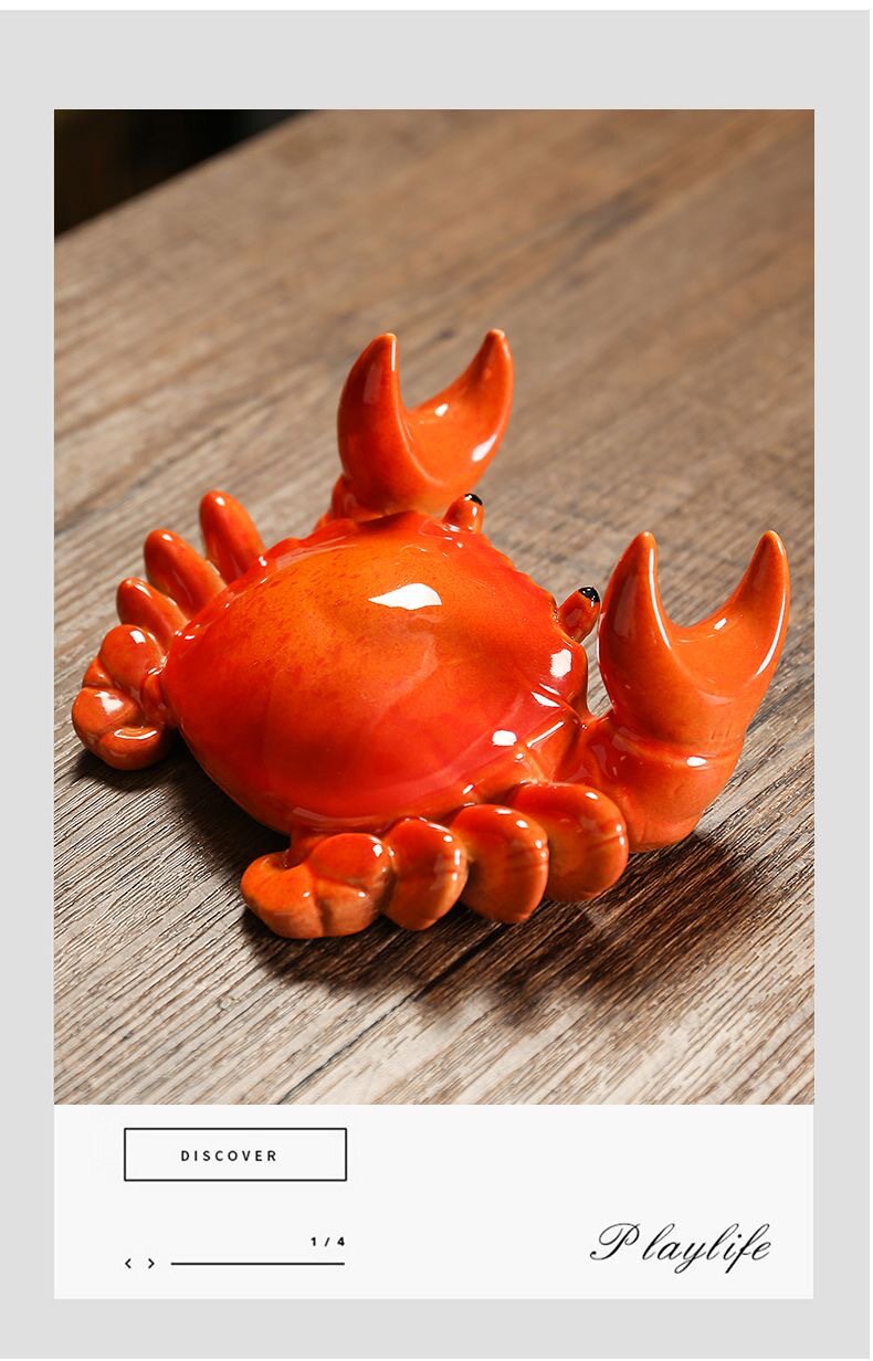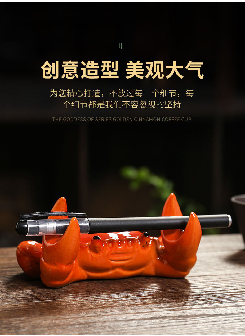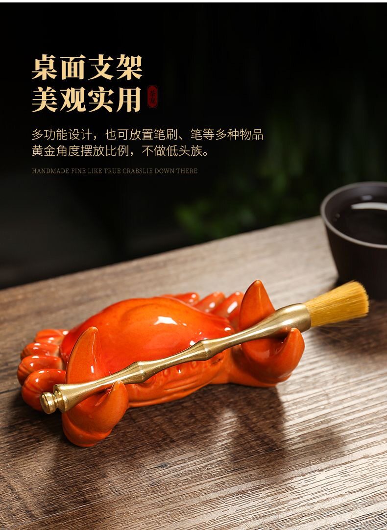 Ceramic crab mobile phone holder tea brush holder pen holder cover desktop tea pet ornaments all directions creative small ornaments