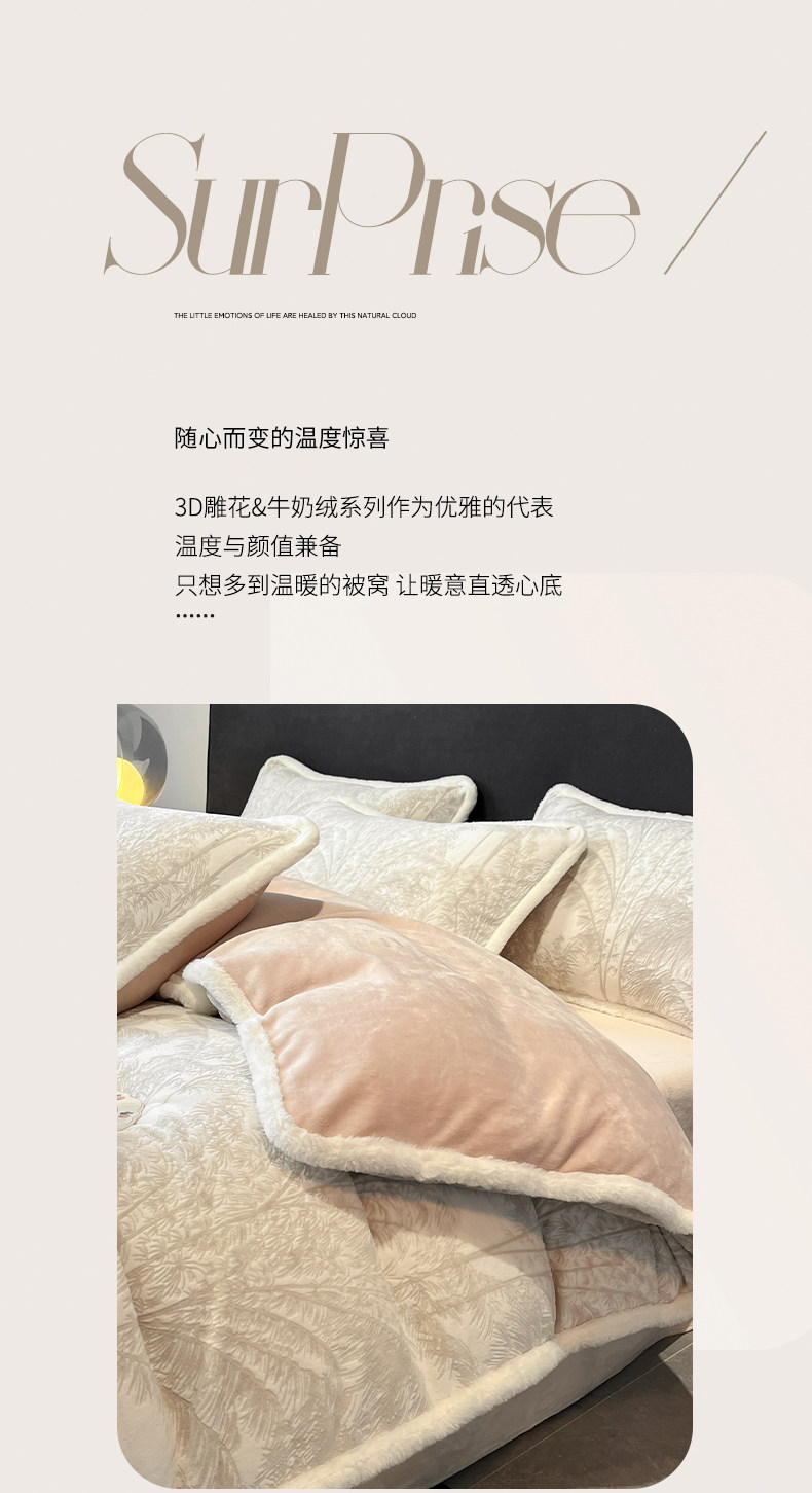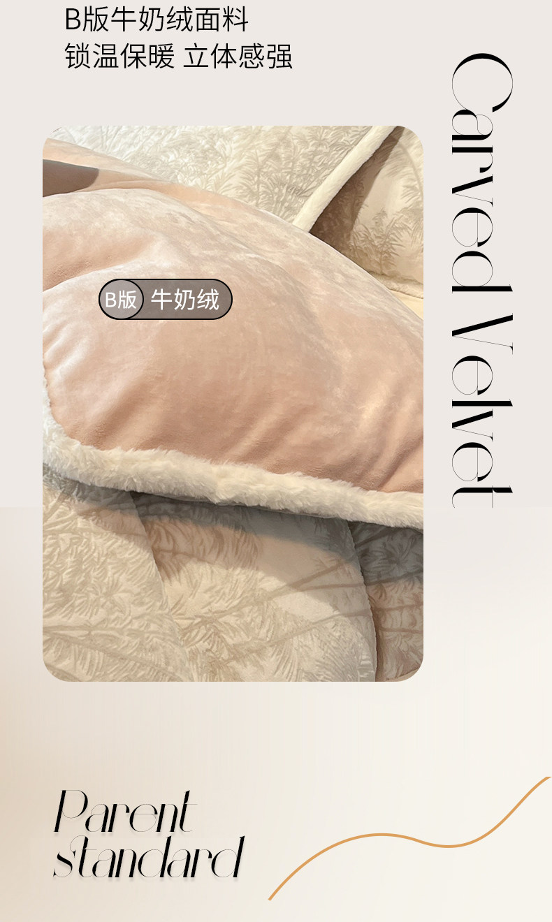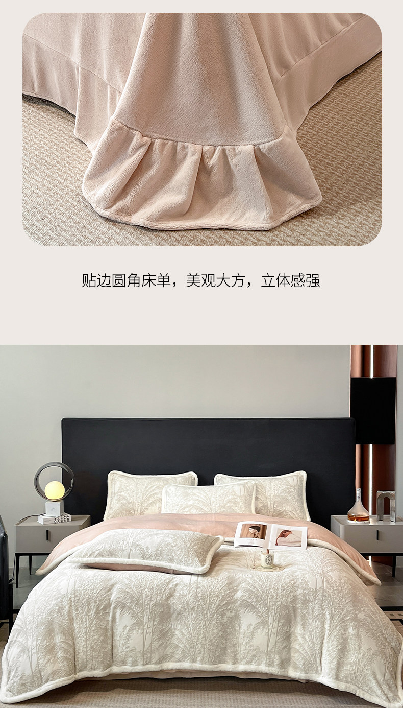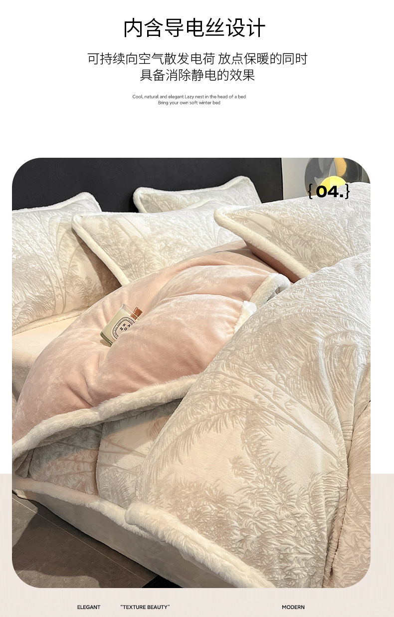High-end light luxury carved milk velvet bed four-piece set winter high-end bedding thickened coral velvet bed sheet and quilt cover