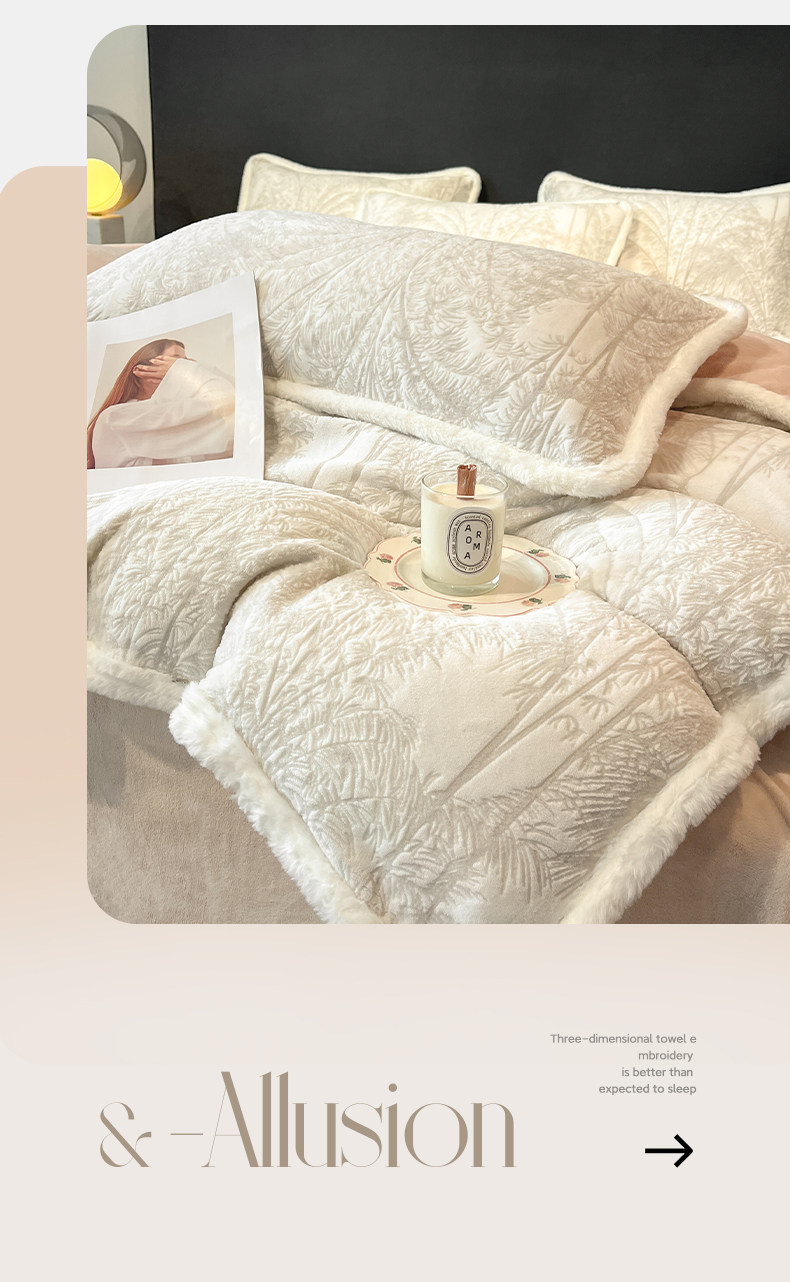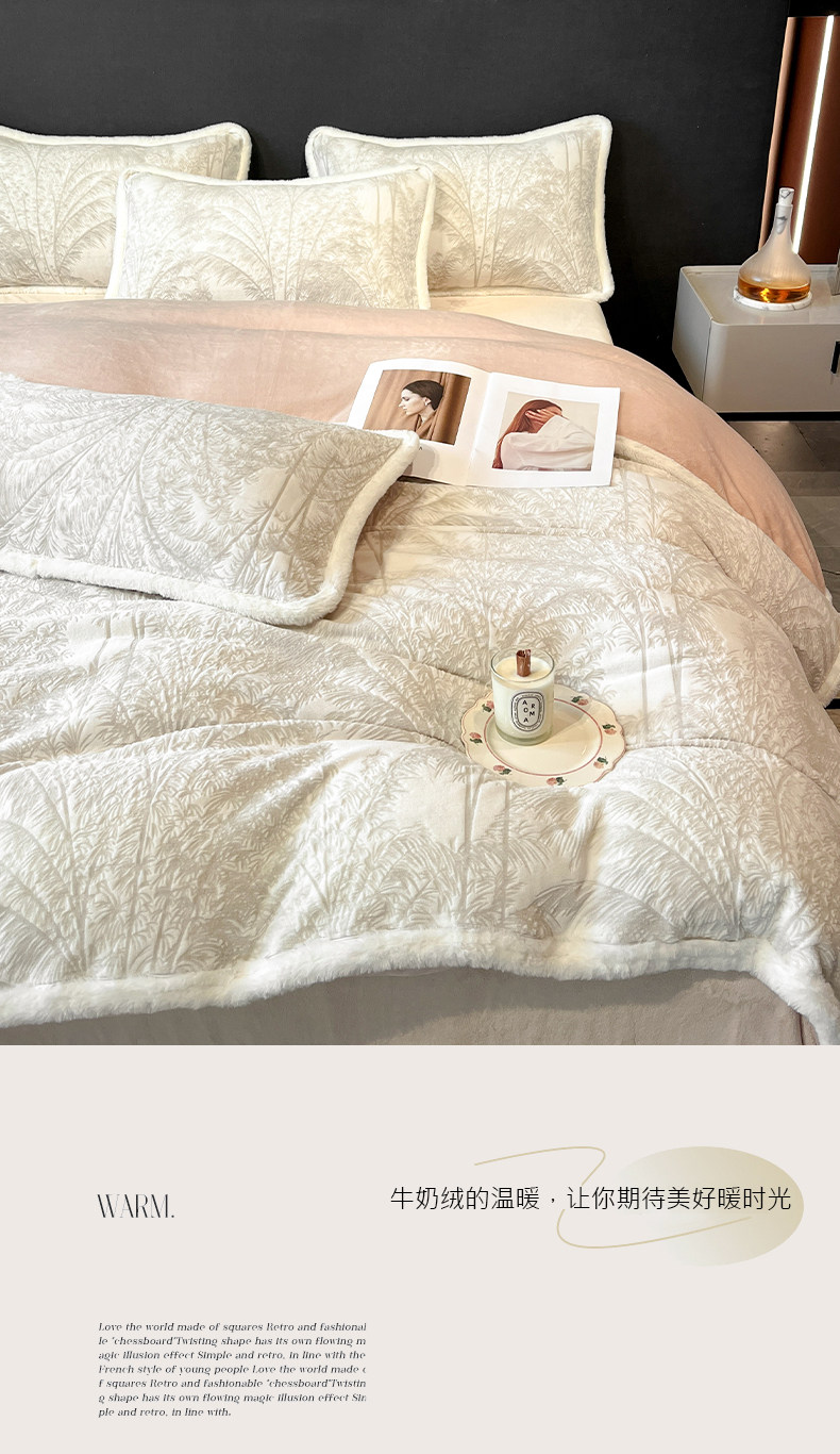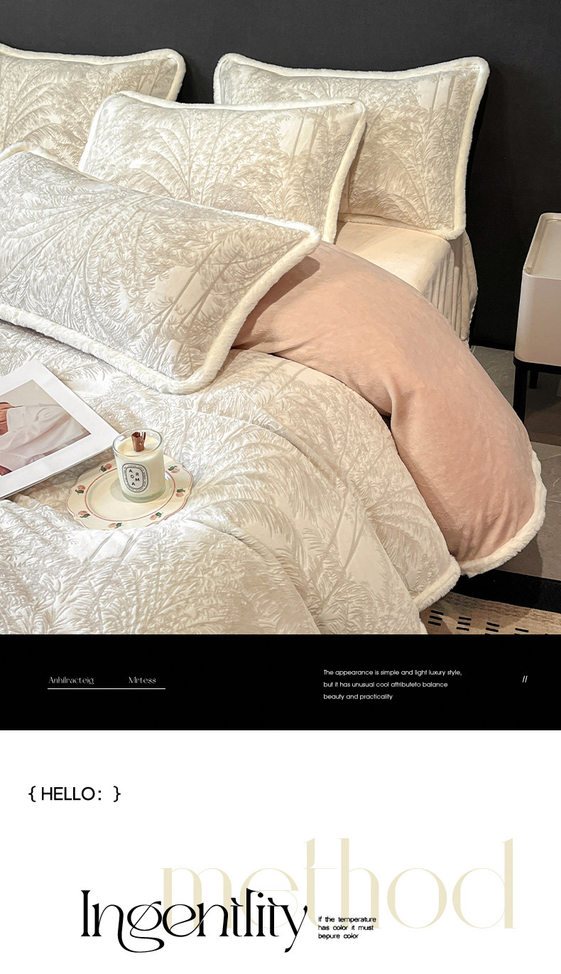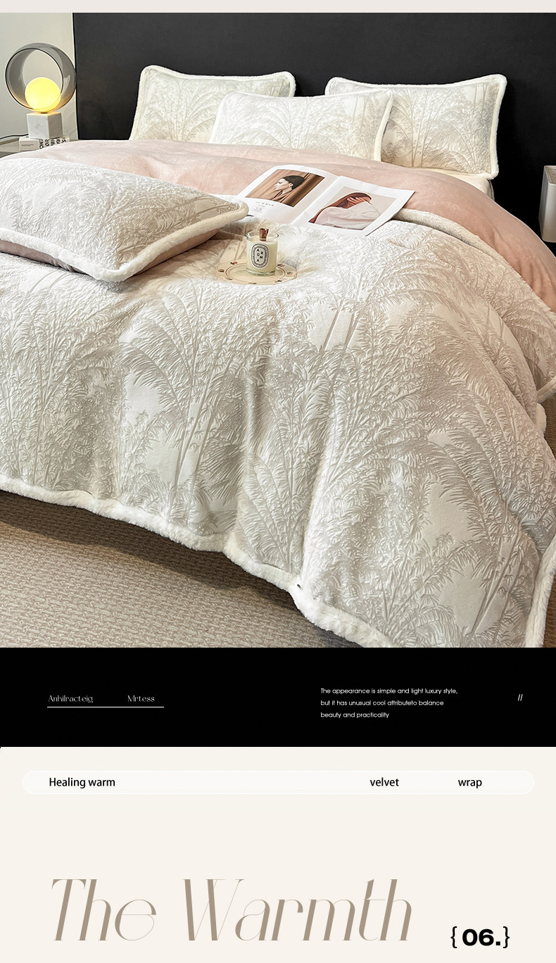 High-end light luxury carved milk velvet bed four-piece set winter high-end bedding thickened coral velvet bed sheet and quilt cover