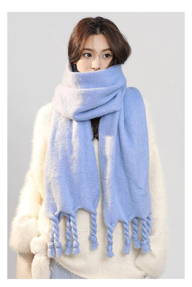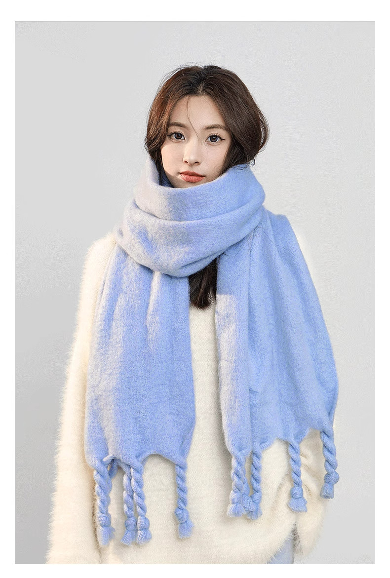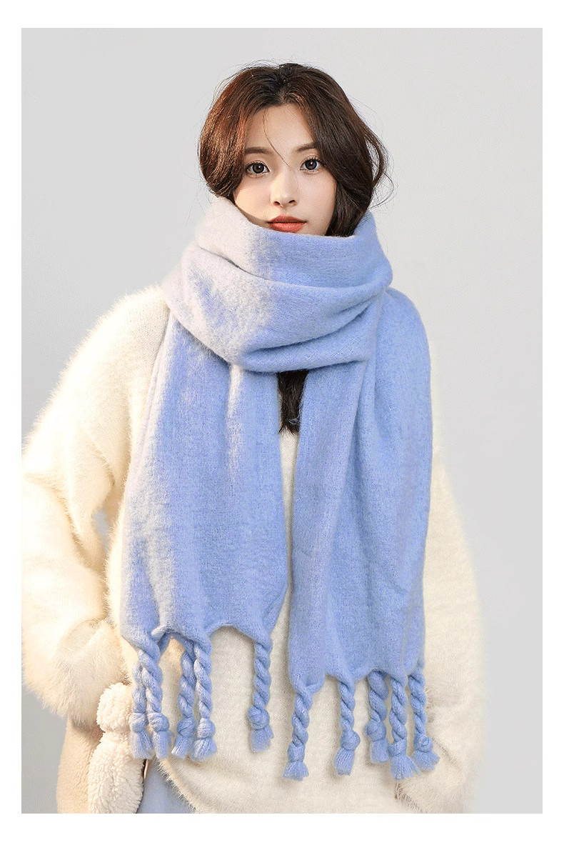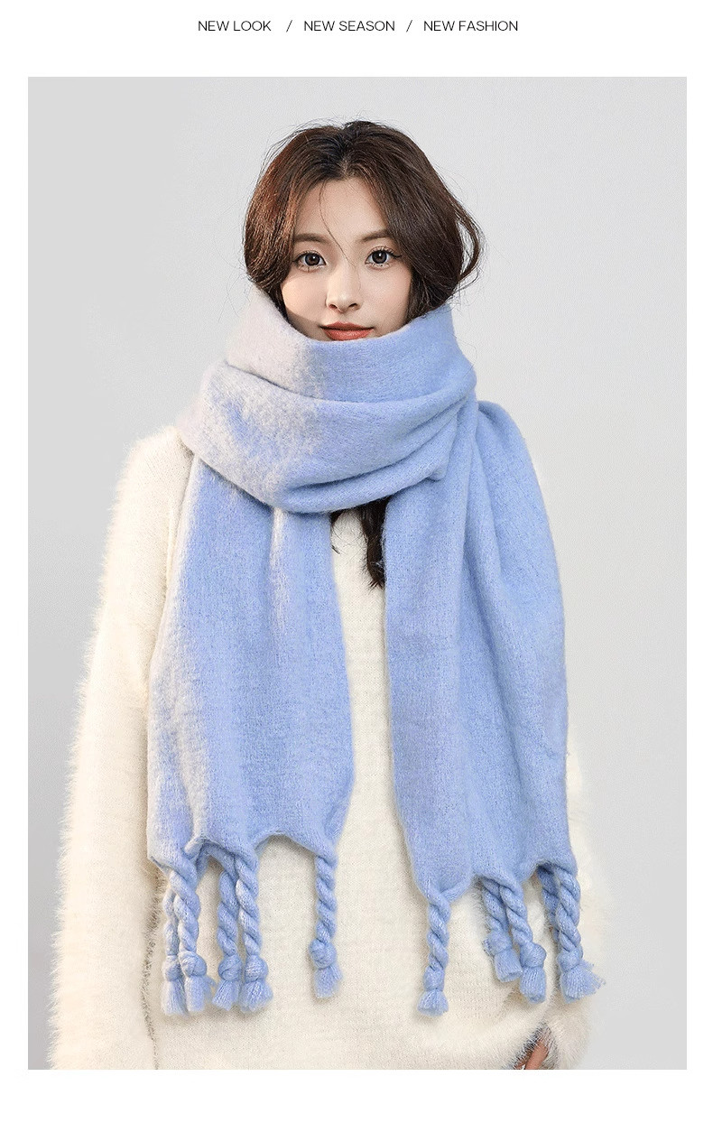 Blue Plush Scarf for Women, Winter 2024 New Style, Thickened, Versatile, Warm, Korean Style, Atmospheric Shawl, Dual-Use Neck Warmer