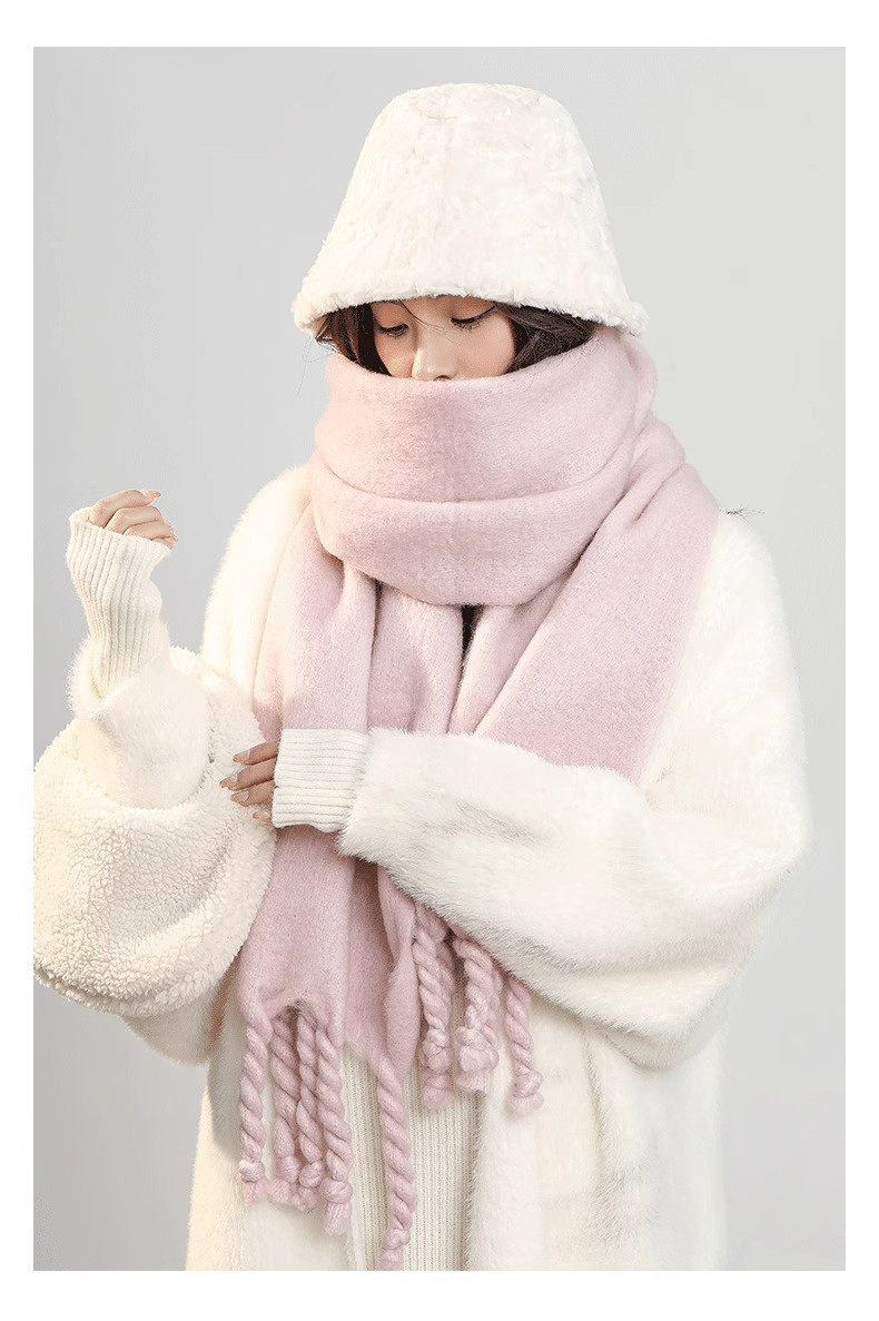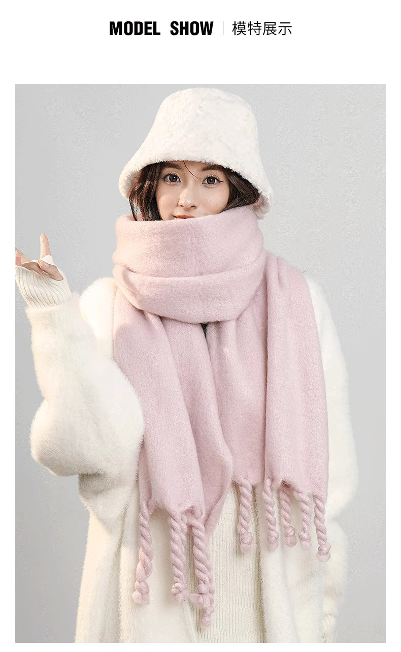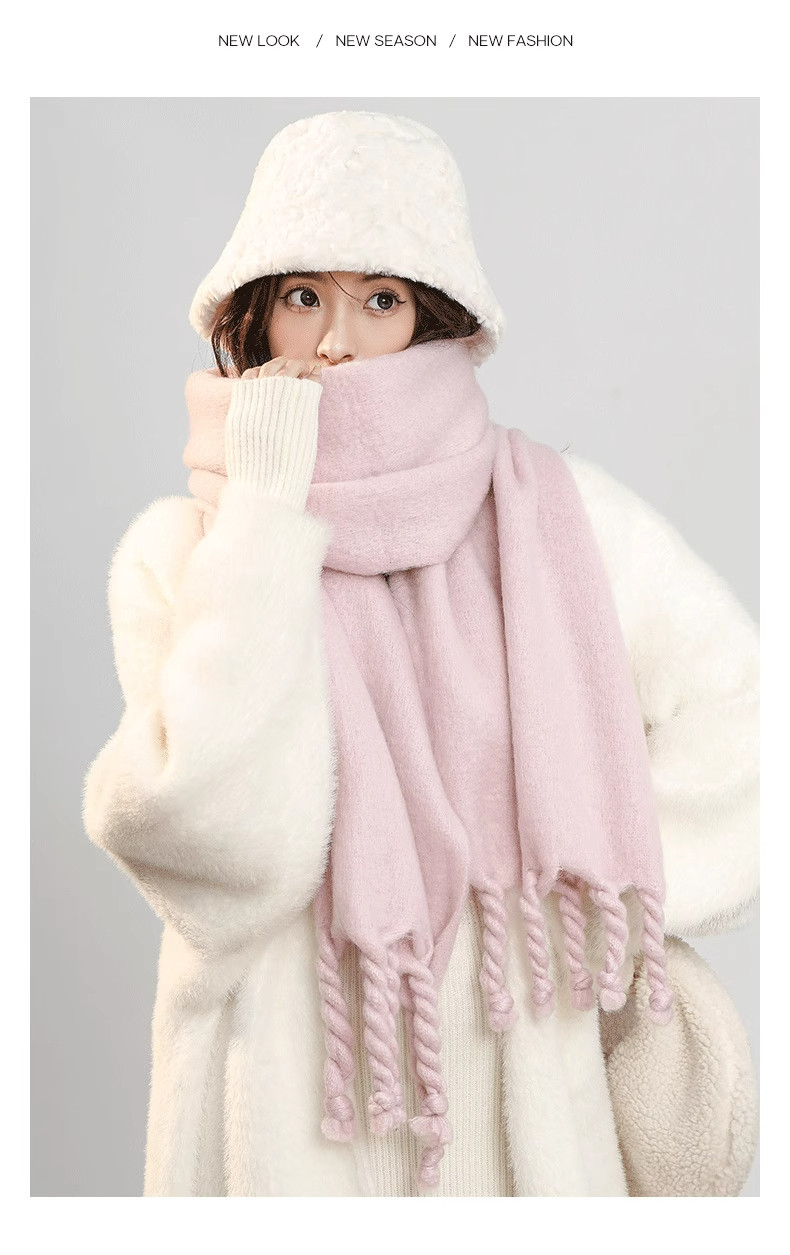 Blue Plush Scarf for Women, Winter 2024 New Style, Thickened, Versatile, Warm, Korean Style, Atmospheric Shawl, Dual-Use Neck Warmer