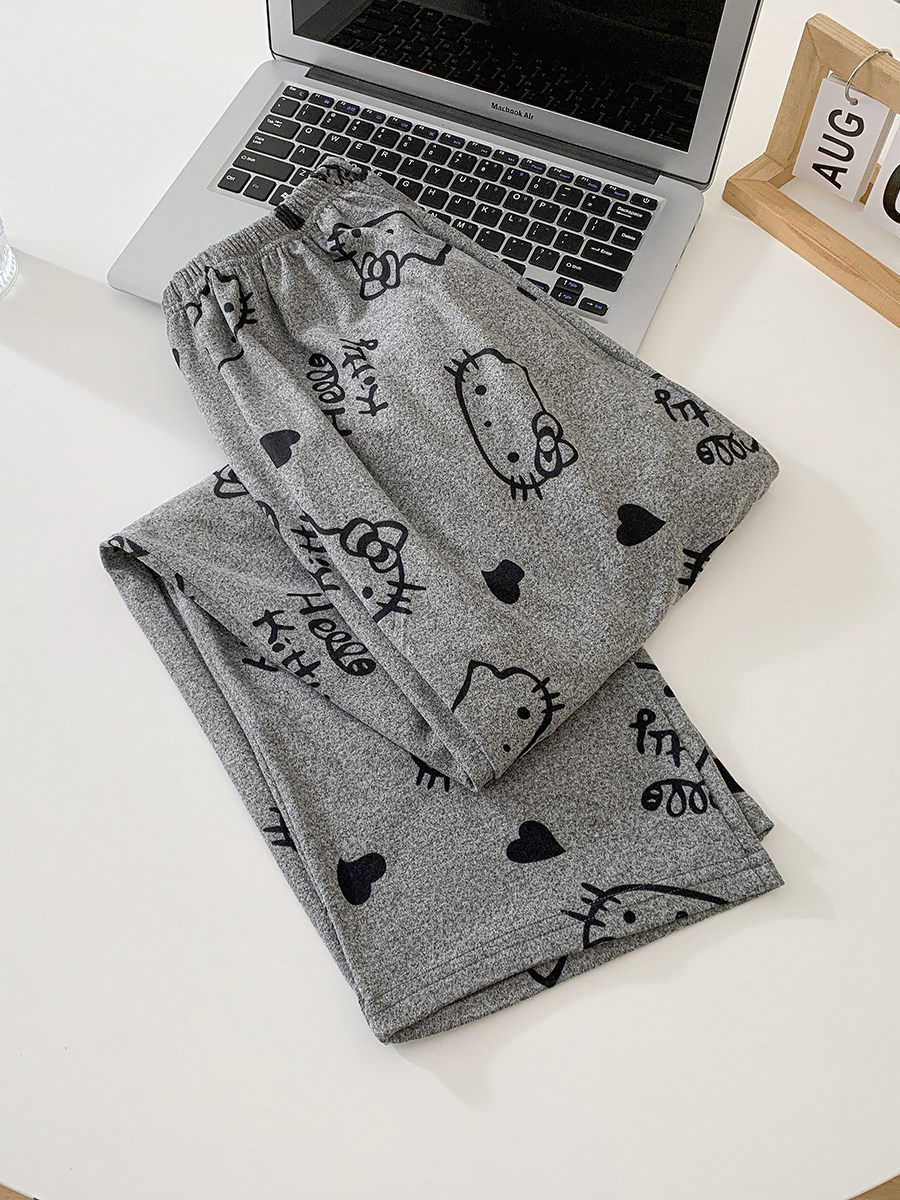 Women's pajama pants German velvet trousers winter warm brushed straight warm pants loose casual autumn and winter pocket home pants